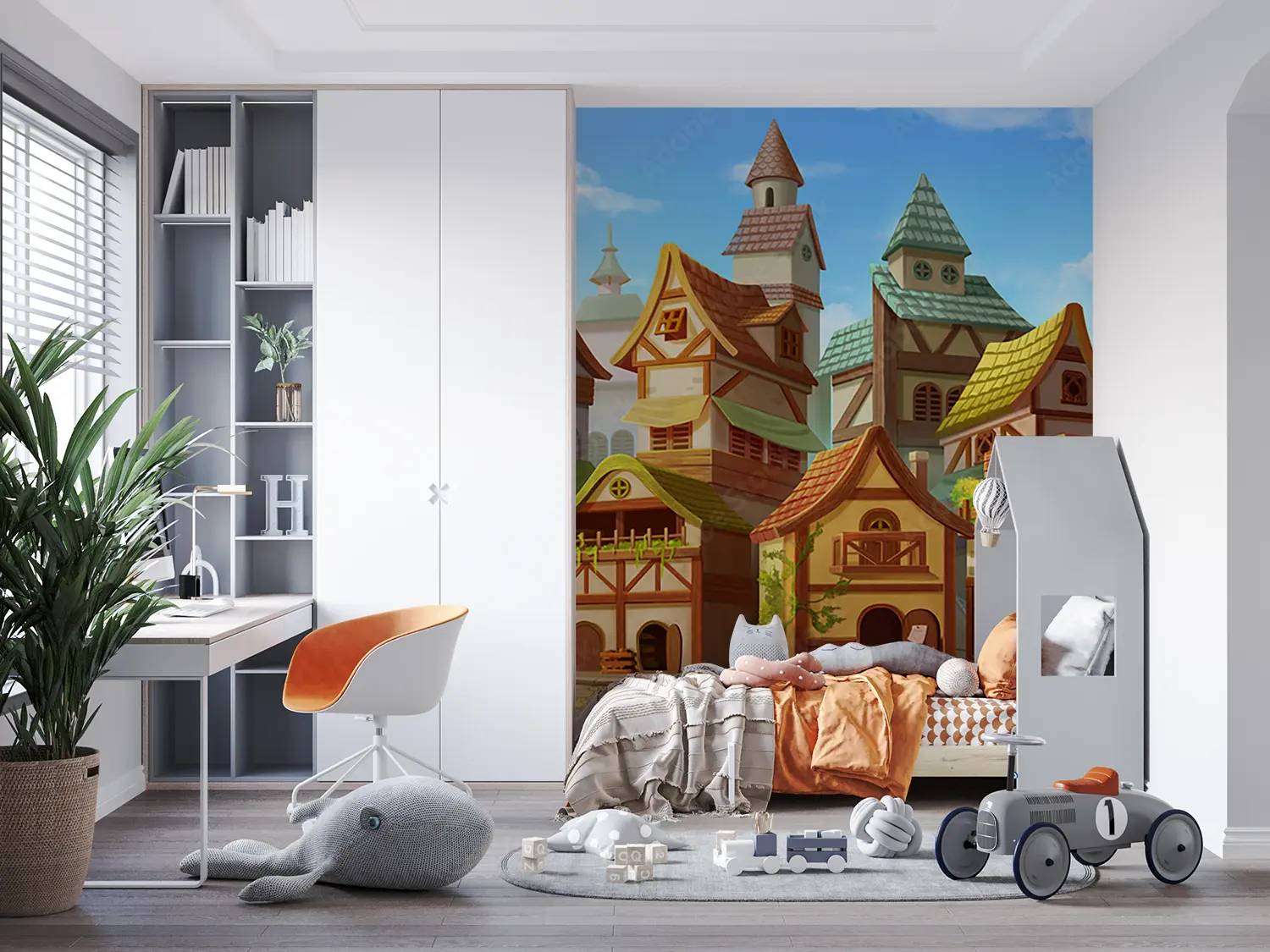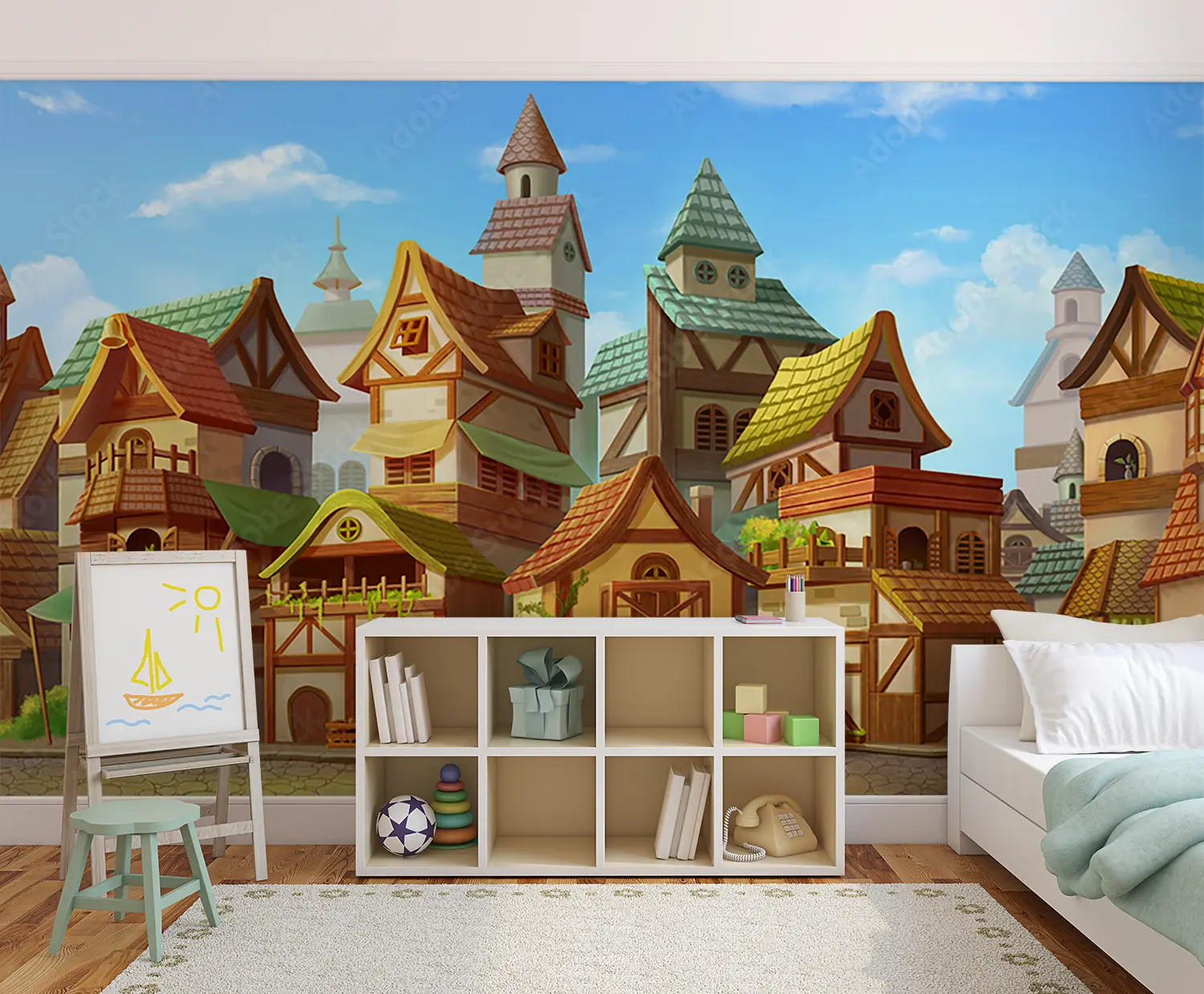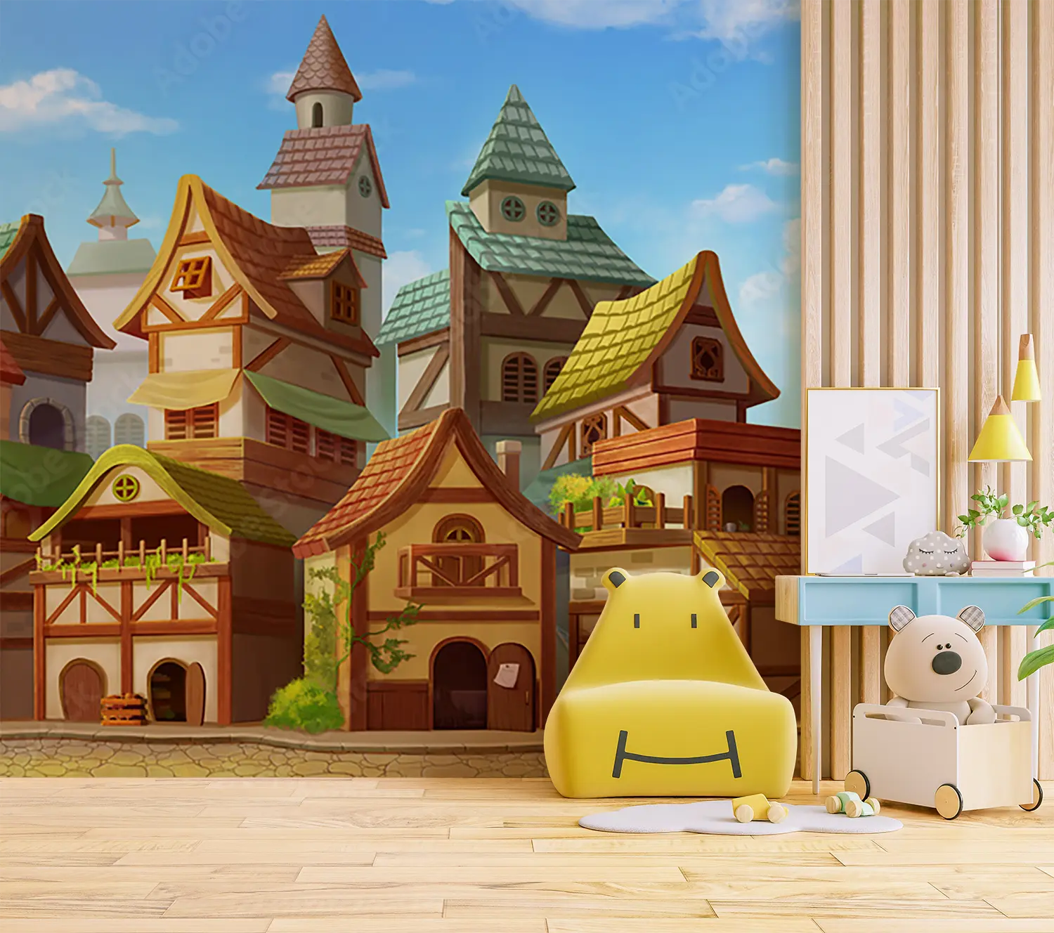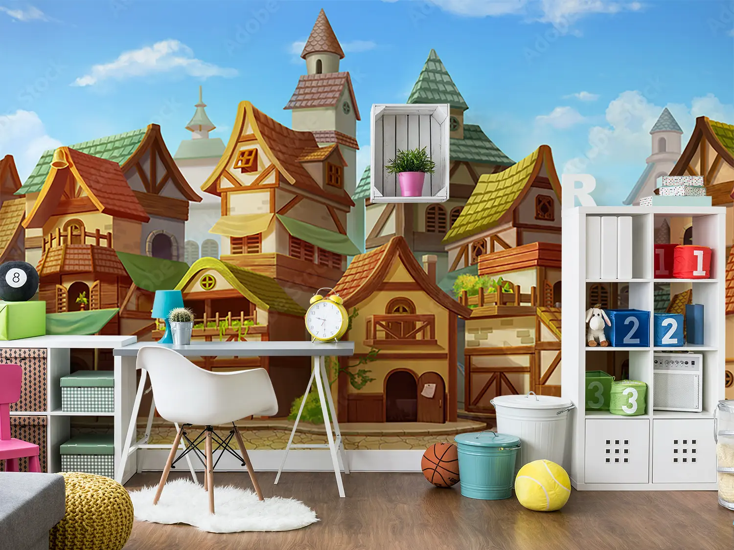 Transform your space with a captivating wall art featuring a picturesque cartoon town with a majestic clock tower. This enchanting piece adds a touch of whimsy and sophistication to your home decor, creating a focal point that sparks joy and conversation. Complementary colors include sky blue, earthy brown, and warm beige tones for a harmonious and inviting atmosphere.