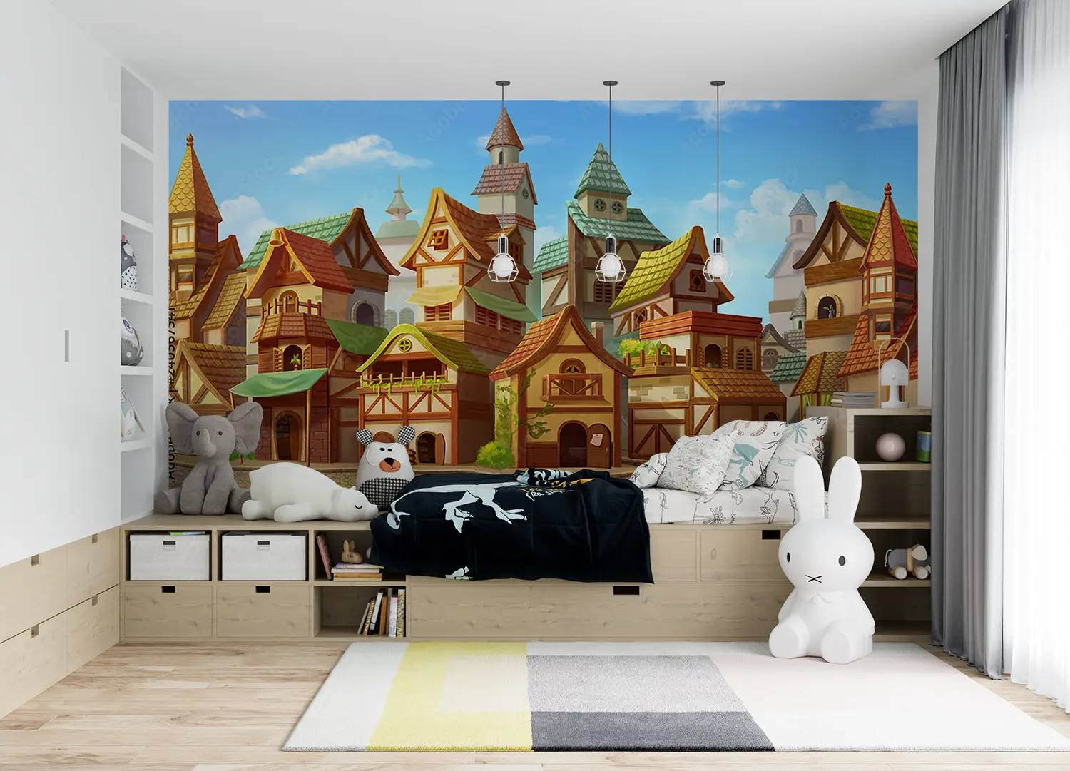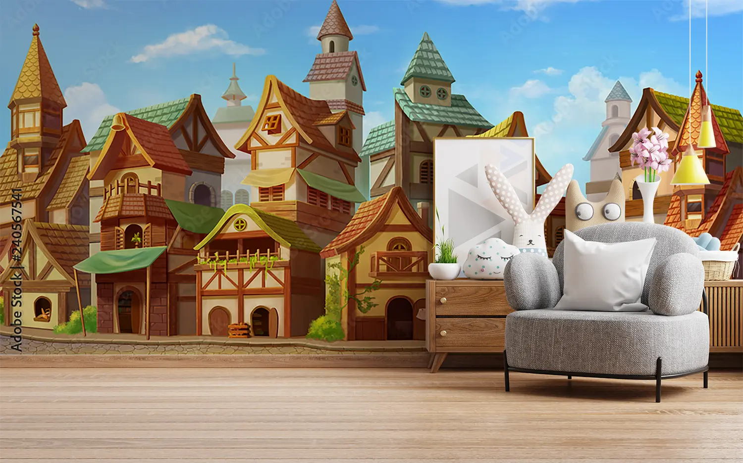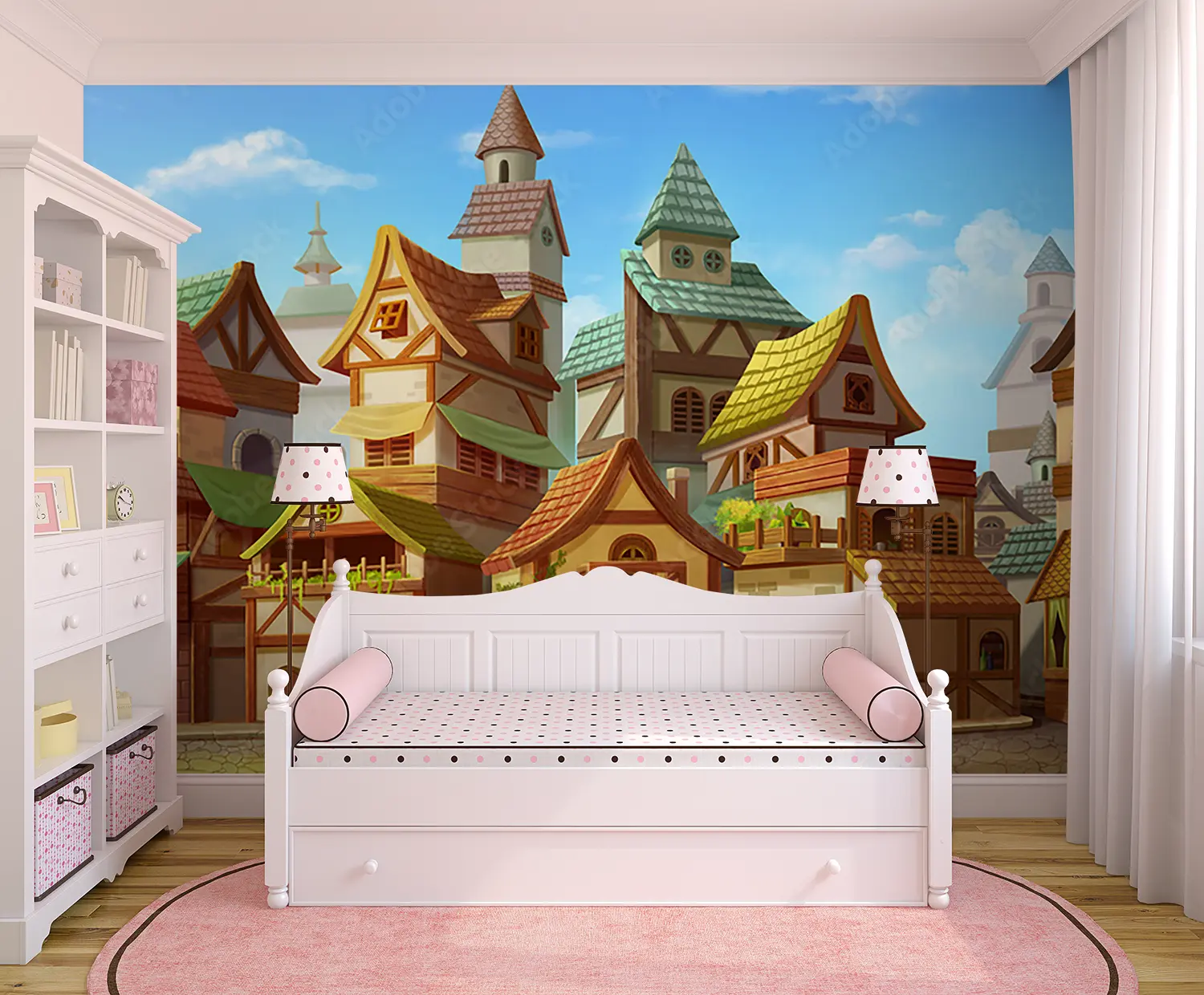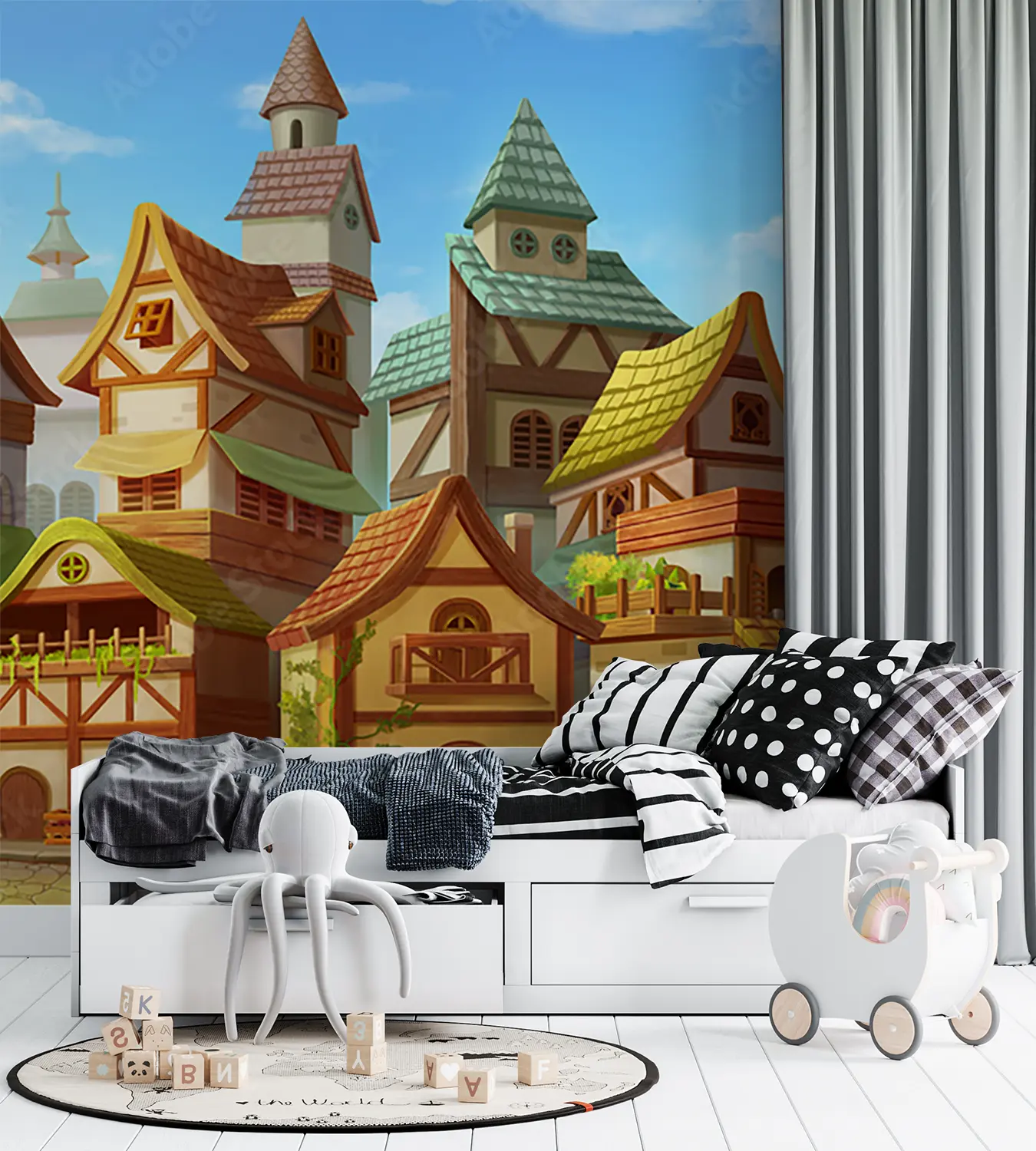 Transform your space with a captivating wall art featuring a picturesque cartoon town with a majestic clock tower. This enchanting piece adds a touch of whimsy and sophistication to your home decor, creating a focal point that sparks joy and conversation. Complementary colors include sky blue, earthy brown, and warm beige tones for a harmonious and inviting atmosphere.