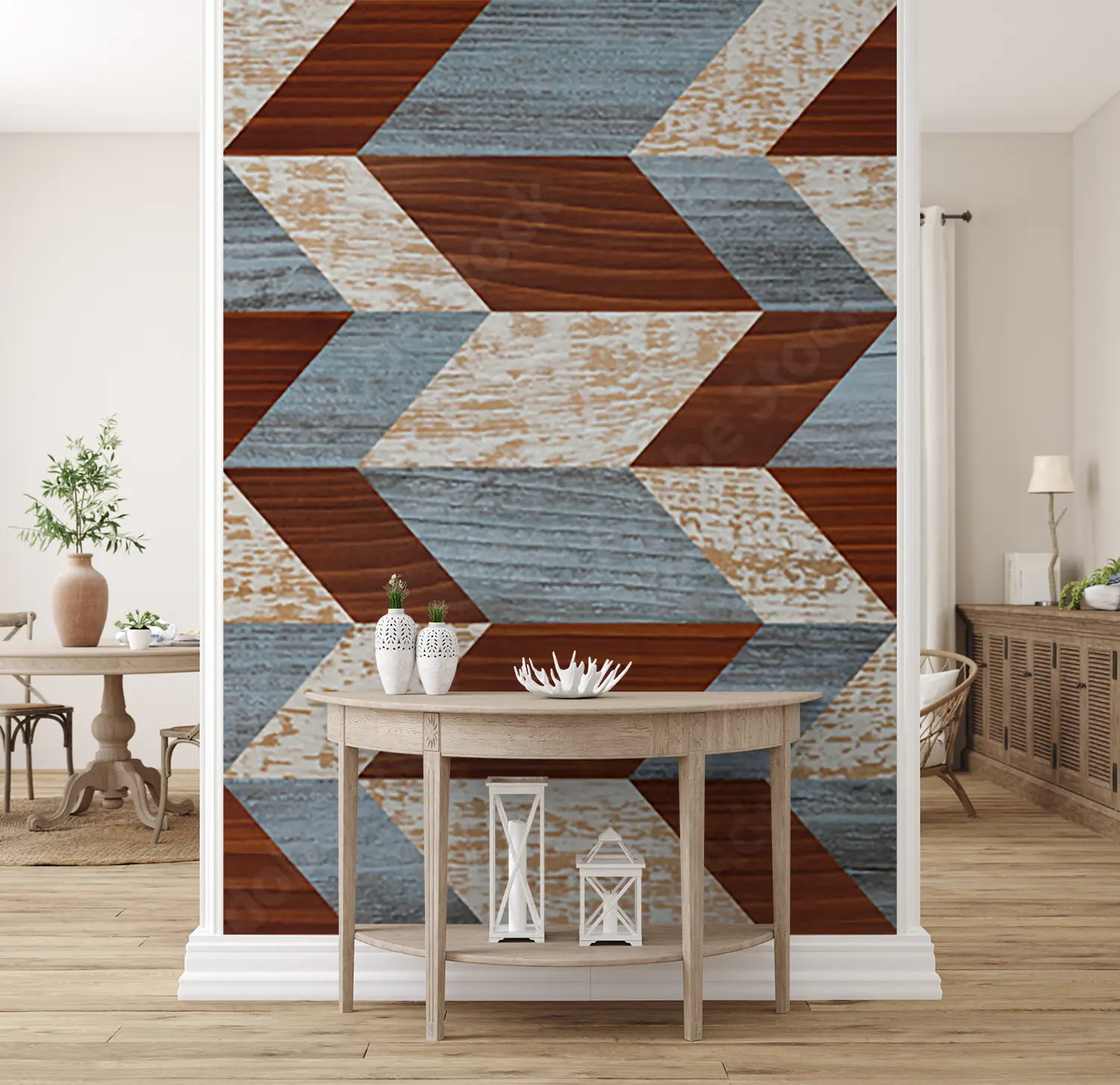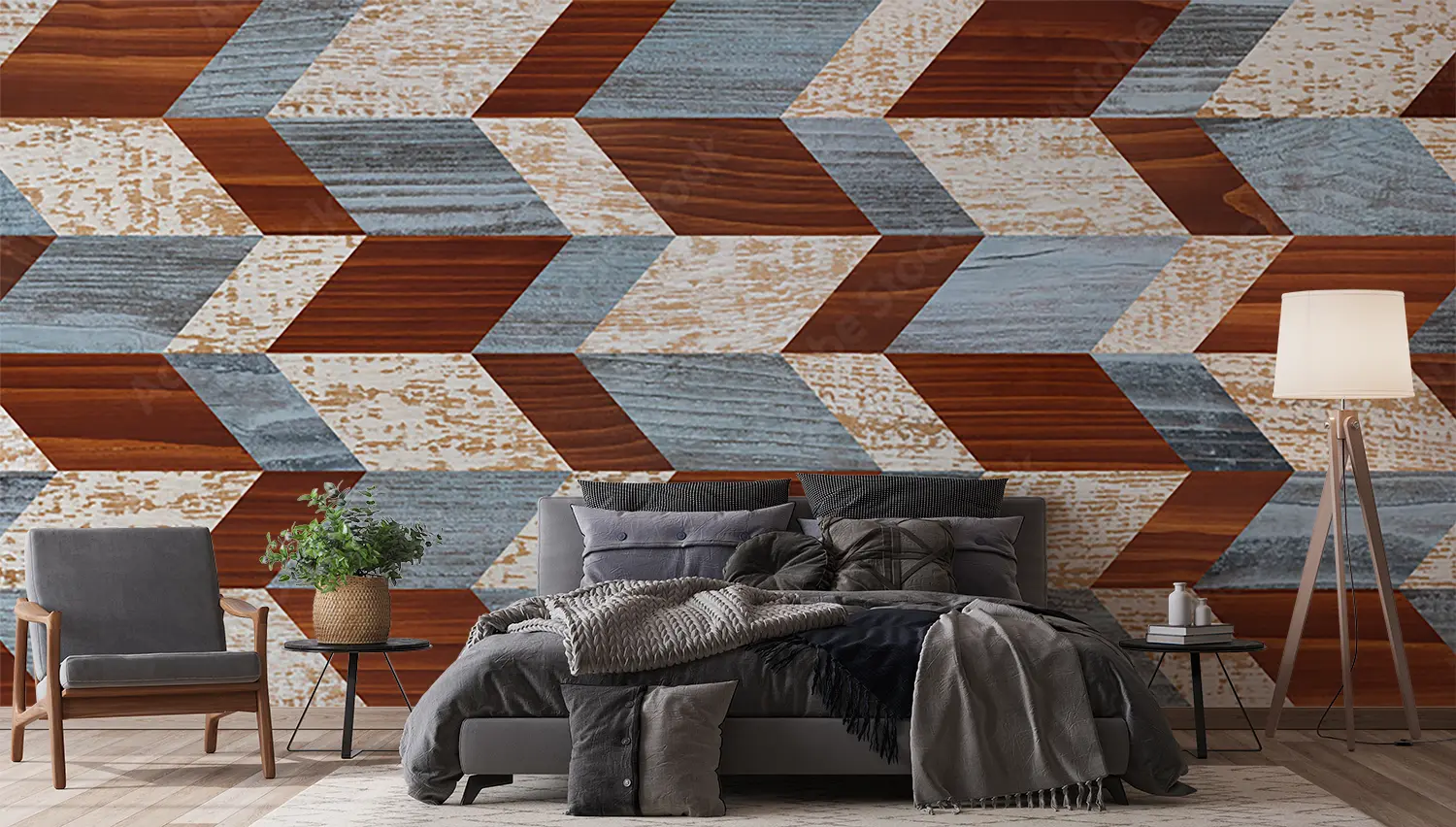 Elevate your home decor with a chic chevron pattern inspired by this captivating image. The warm tones and intricate design create a cozy yet modern aesthetic, perfect for adding a touch of sophistication to any room. Complementary colors to consider include soft browns, muted grays, and creamy whites to enhance the overall ambiance.