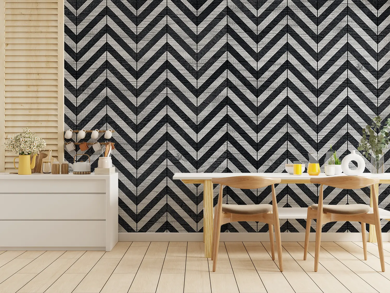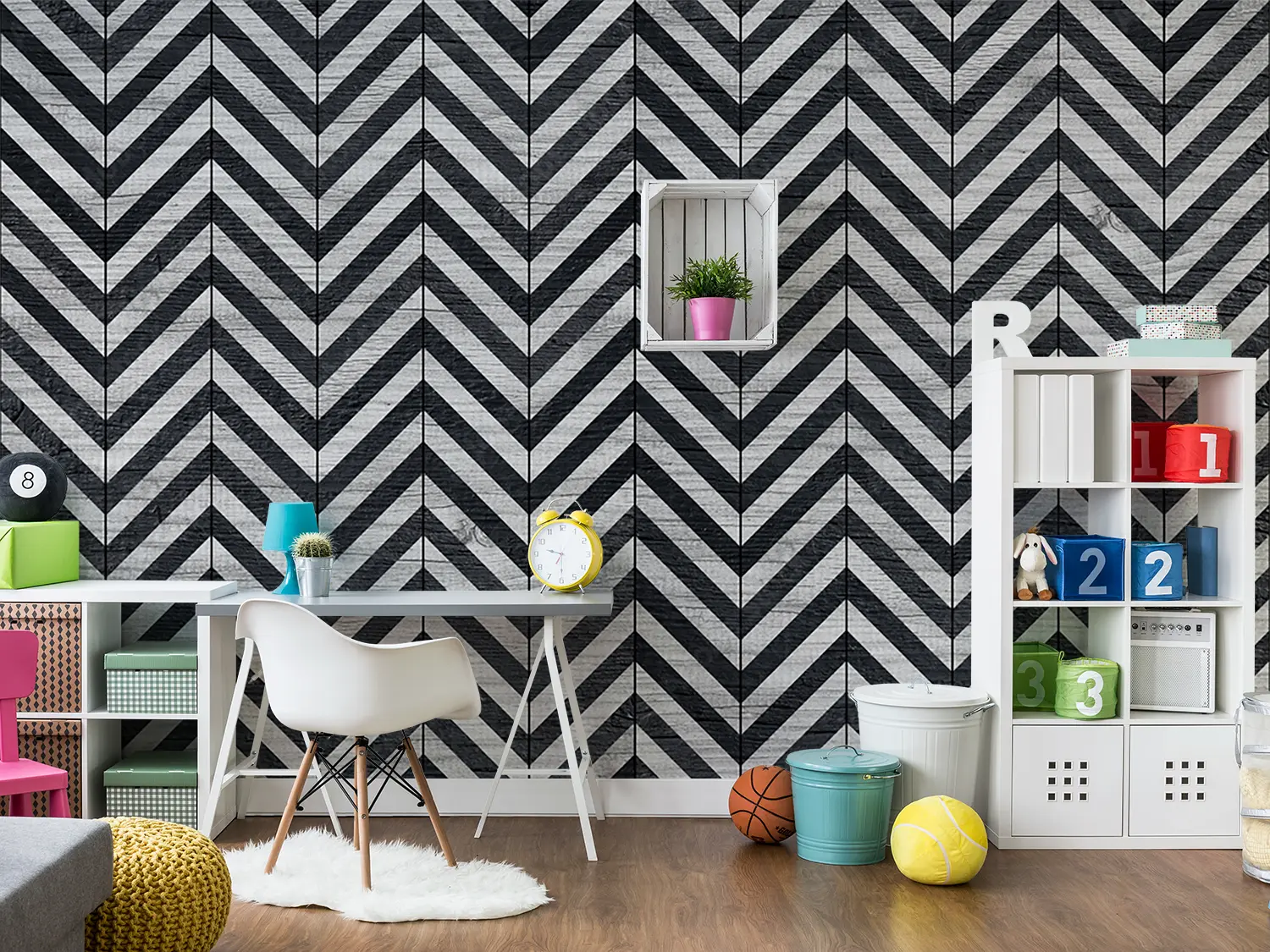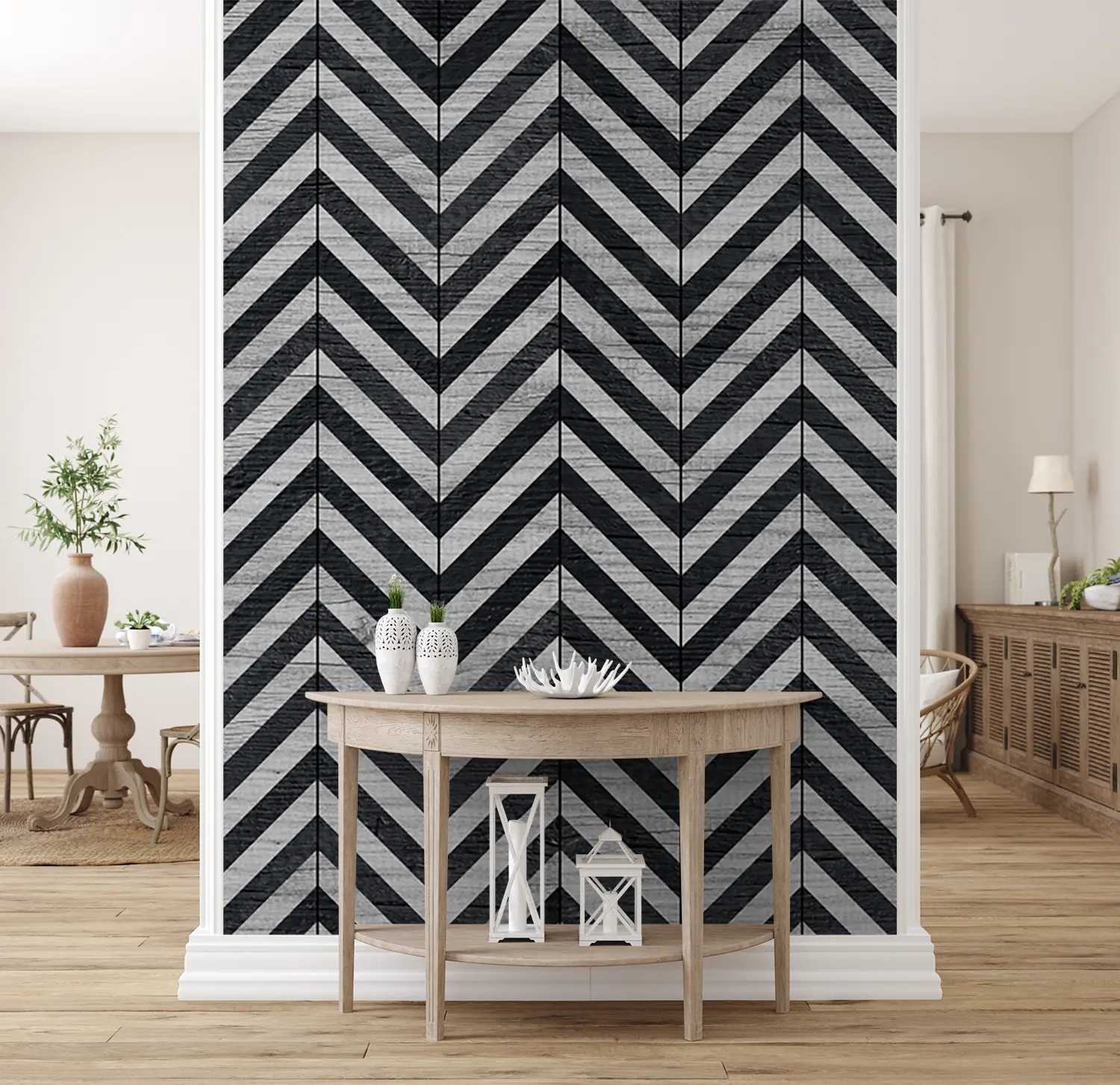Elevate your home decor with this stylish black and white chevron pattern. The sophisticated design adds a modern touch to any room, creating a sleek and timeless aesthetic. Complement this wall art with accents in shades of grey, silver, and charcoal for a cohesive and elegant look that will impress any guest. (Word count: 54)