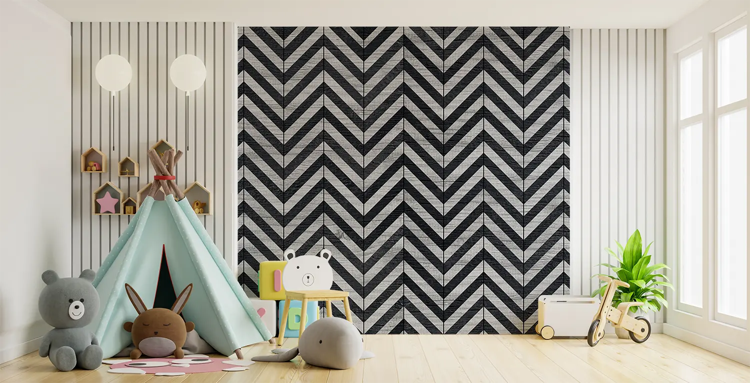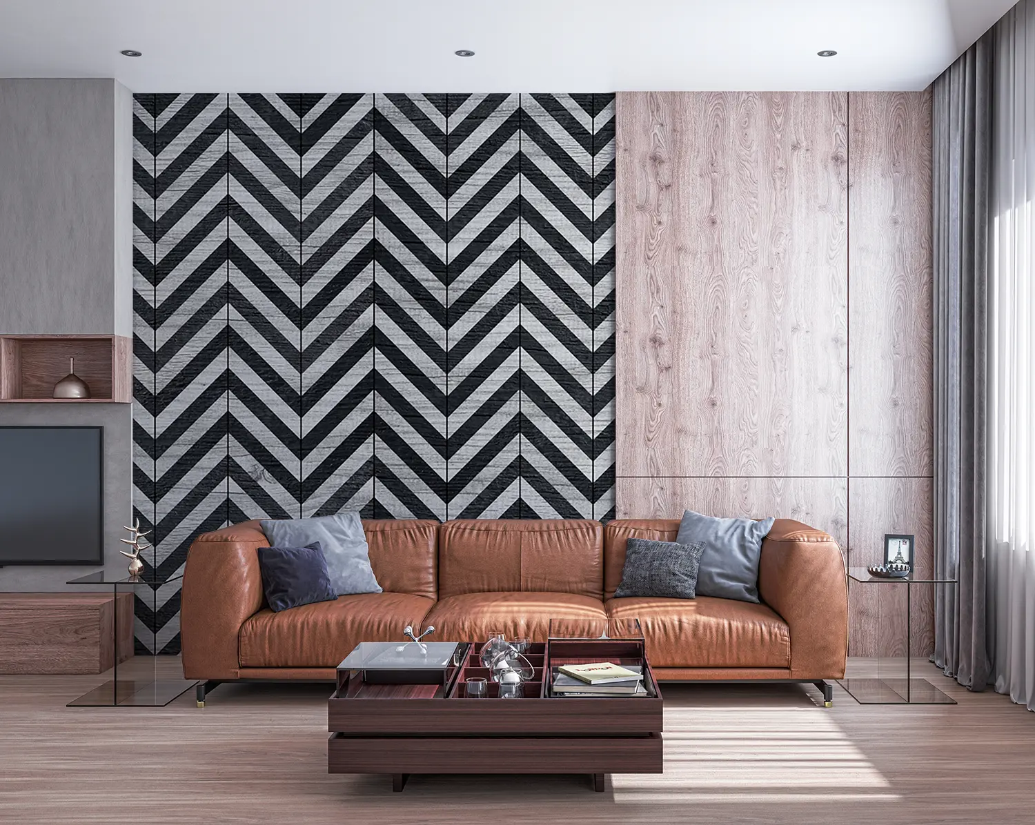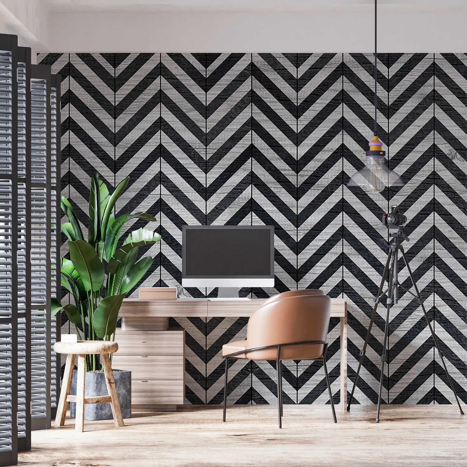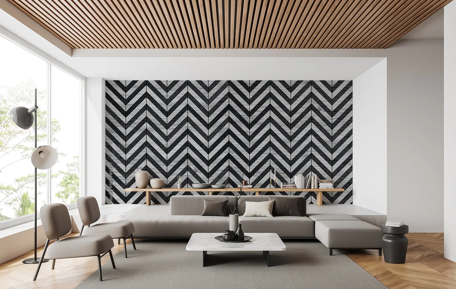 Elevate your home decor with this stylish black and white chevron pattern. The sophisticated design adds a modern touch to any room, creating a sleek and timeless aesthetic. Complement this wall art with accents in shades of grey, silver, and charcoal for a cohesive and elegant look that will impress any guest. (Word count: 54)