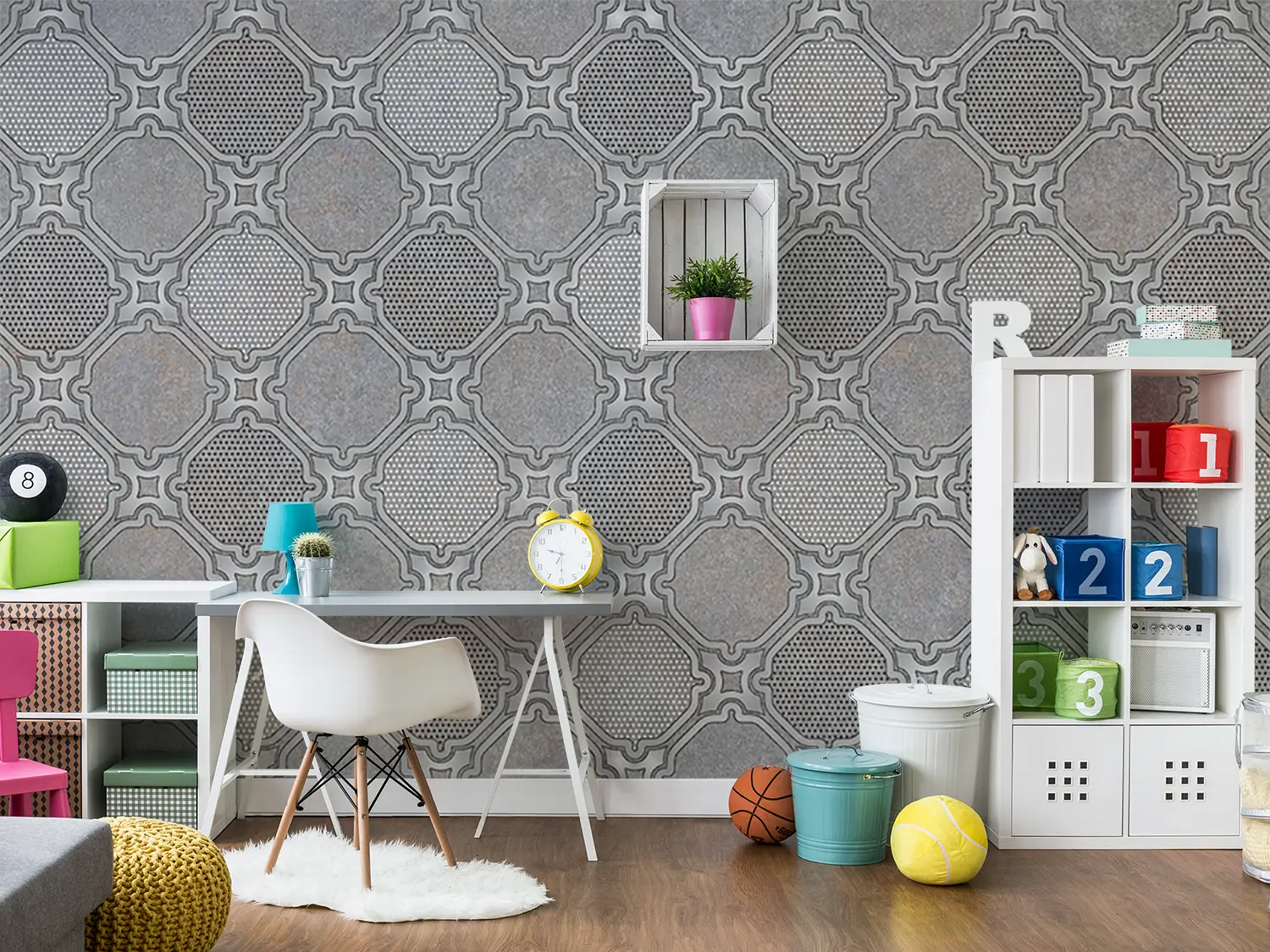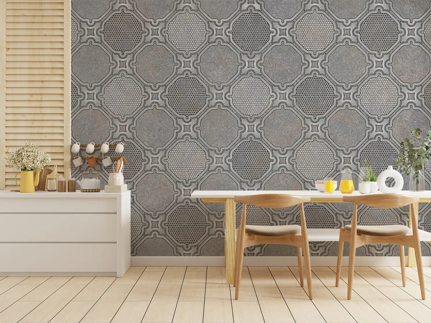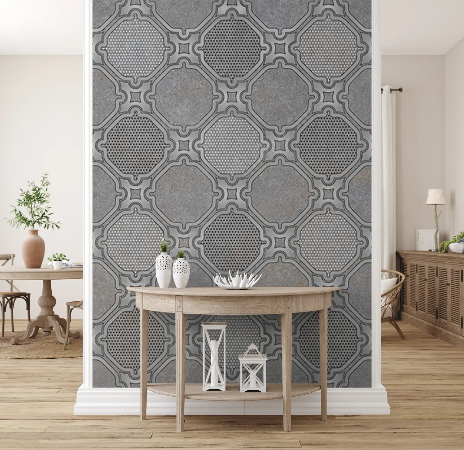 Elevate your space with a captivating wall art featuring a stylish pattern of circles and dots on a sleek gray background. This modern design adds a touch of sophistication and visual interest to any room, making it a perfect choice for contemporary home decor. Complementary colors include shades of silver, charcoal, and soft white for a cohesive look.