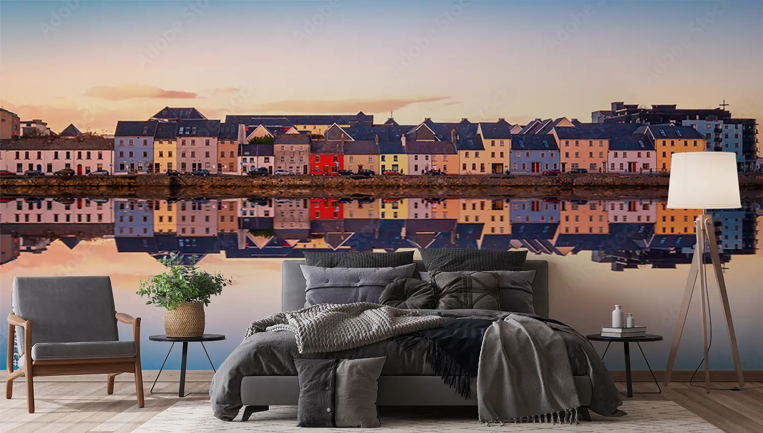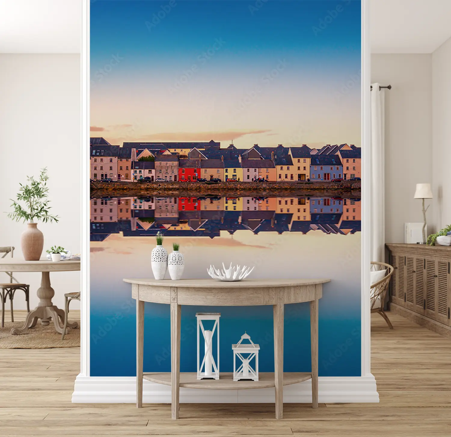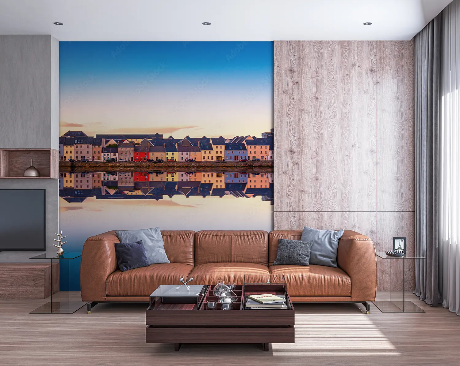 Transform your space with this captivating cityscape wall art featuring a serene lake and charming buildings. The reflective water adds depth and tranquility to any room, making it a perfect addition to your home decor. Complementary colors include soft blues, earthy browns, and warm neutrals to enhance the calming ambiance of this beautiful scene.