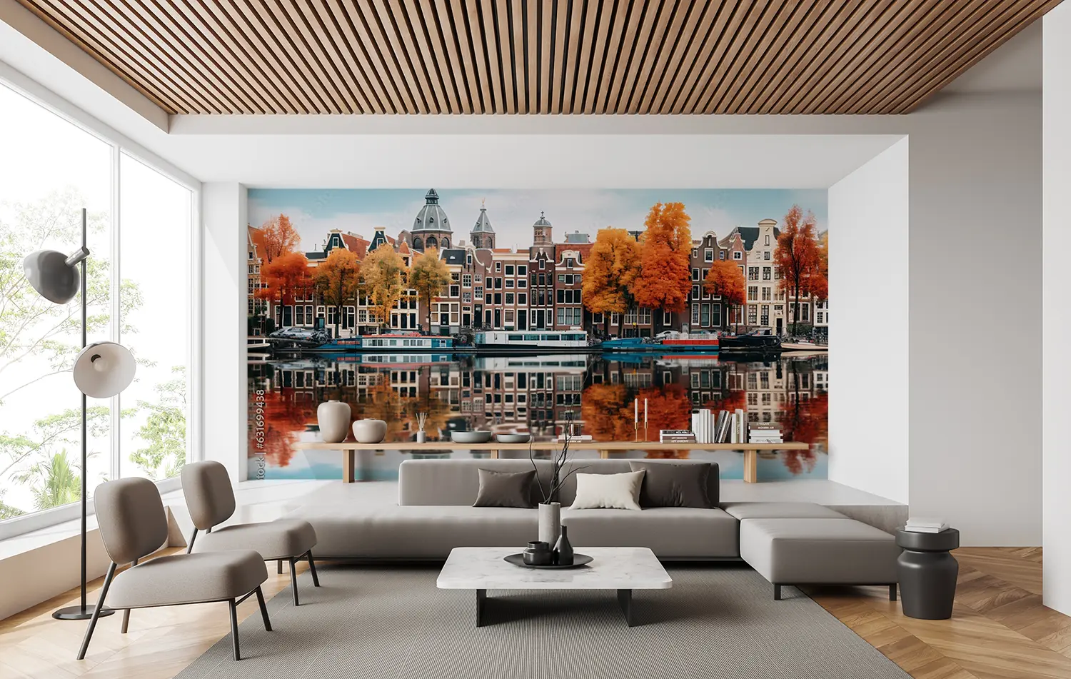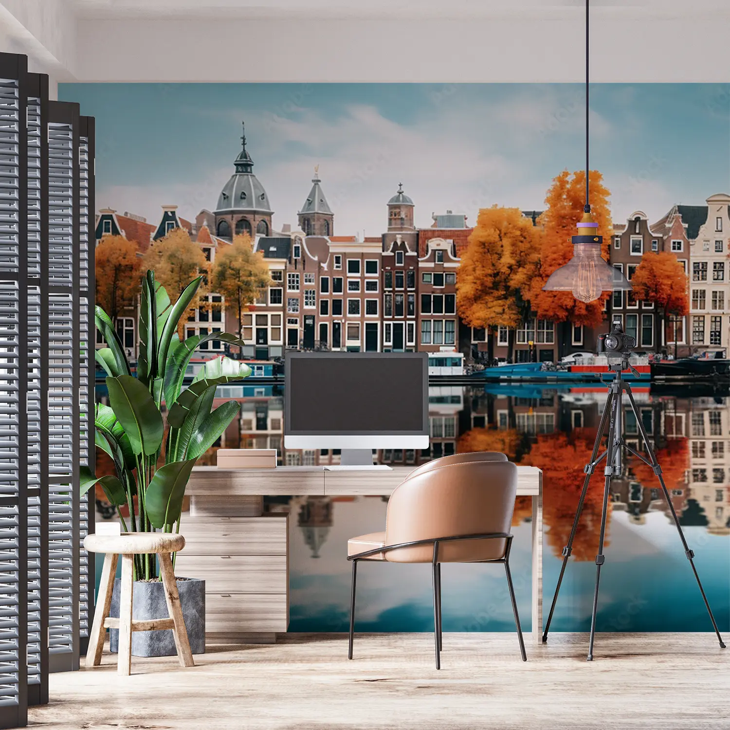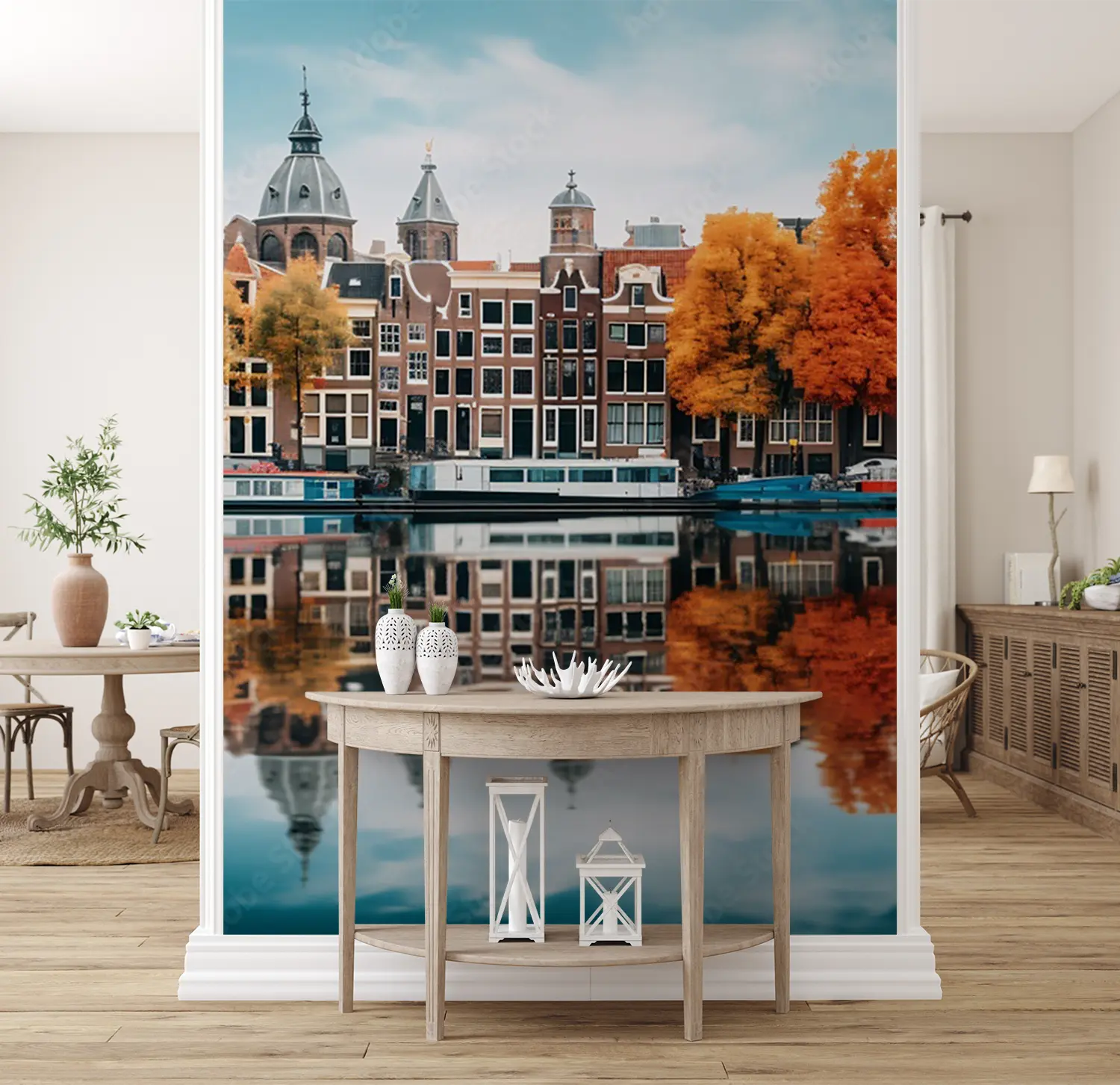 Transform your space with a stunning cityscape wall art featuring a serene river scene with a boat. This captivating piece adds a touch of sophistication to any room, perfect for home decor enthusiasts. Complementary colors include shades of blue, brown, and grey to enhance the aesthetic appeal of your living space. Elevate your home decor with this picturesque artwork.