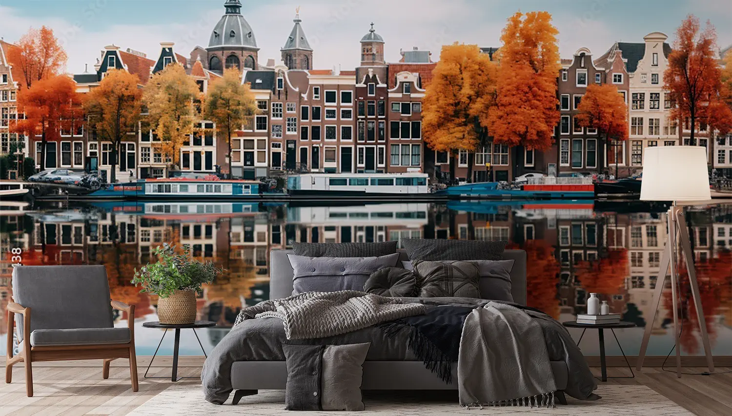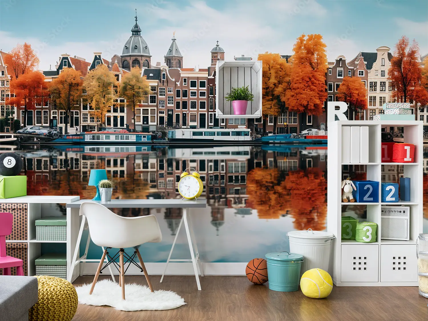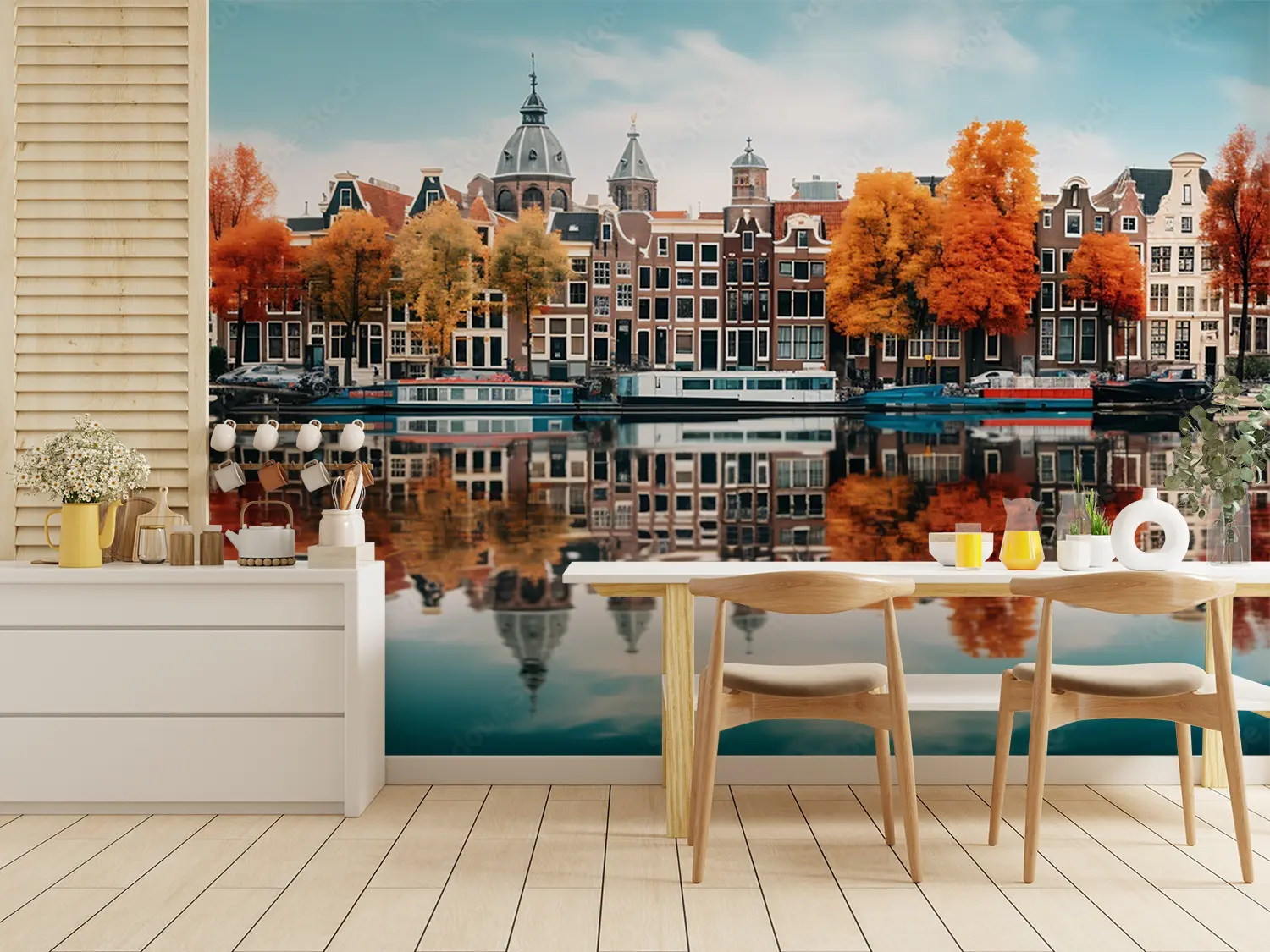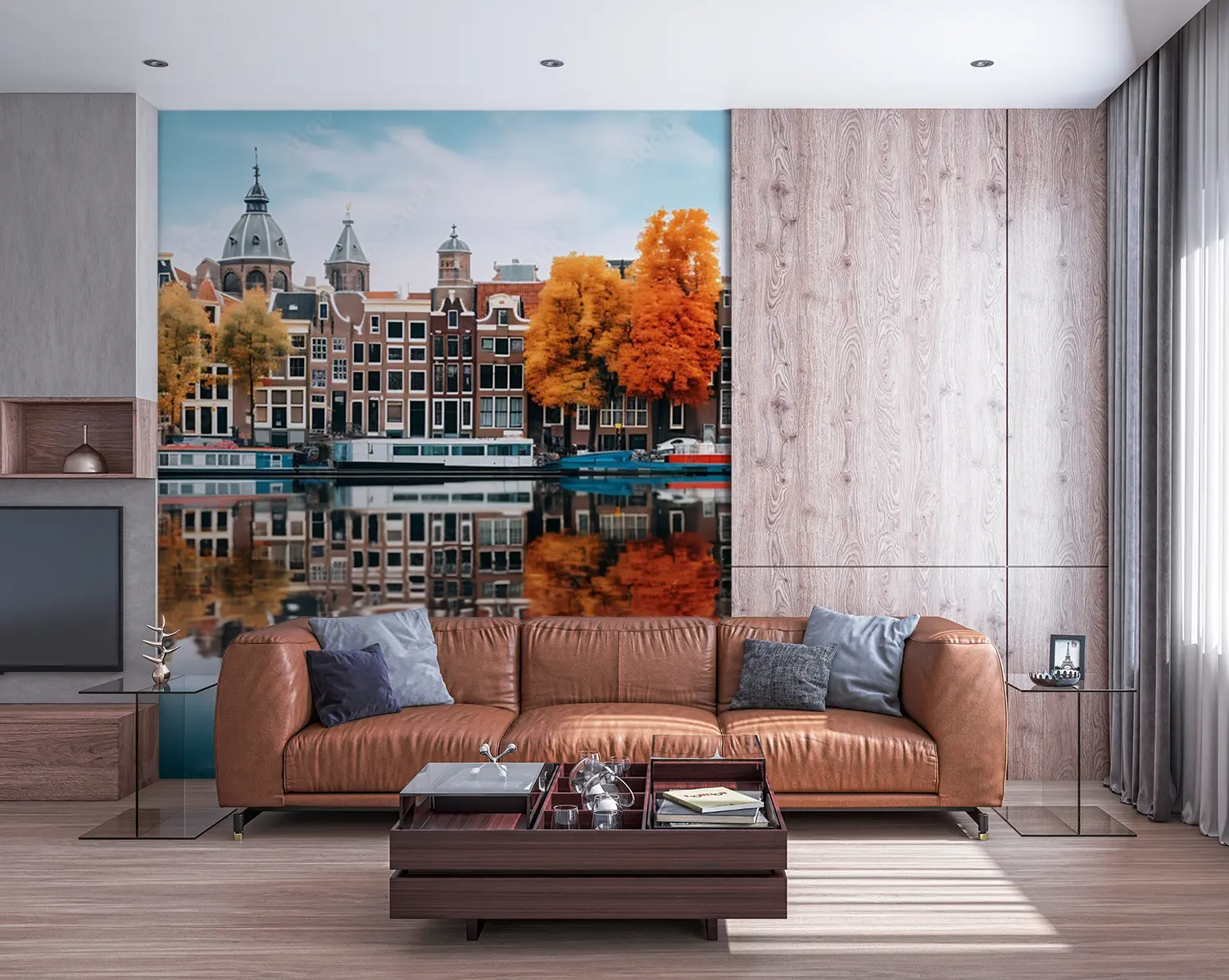 Transform your space with a stunning cityscape wall art featuring a serene river scene with a boat. This captivating piece adds a touch of sophistication to any room, perfect for home decor enthusiasts. Complementary colors include shades of blue, brown, and grey to enhance the aesthetic appeal of your living space. Elevate your home decor with this picturesque artwork.