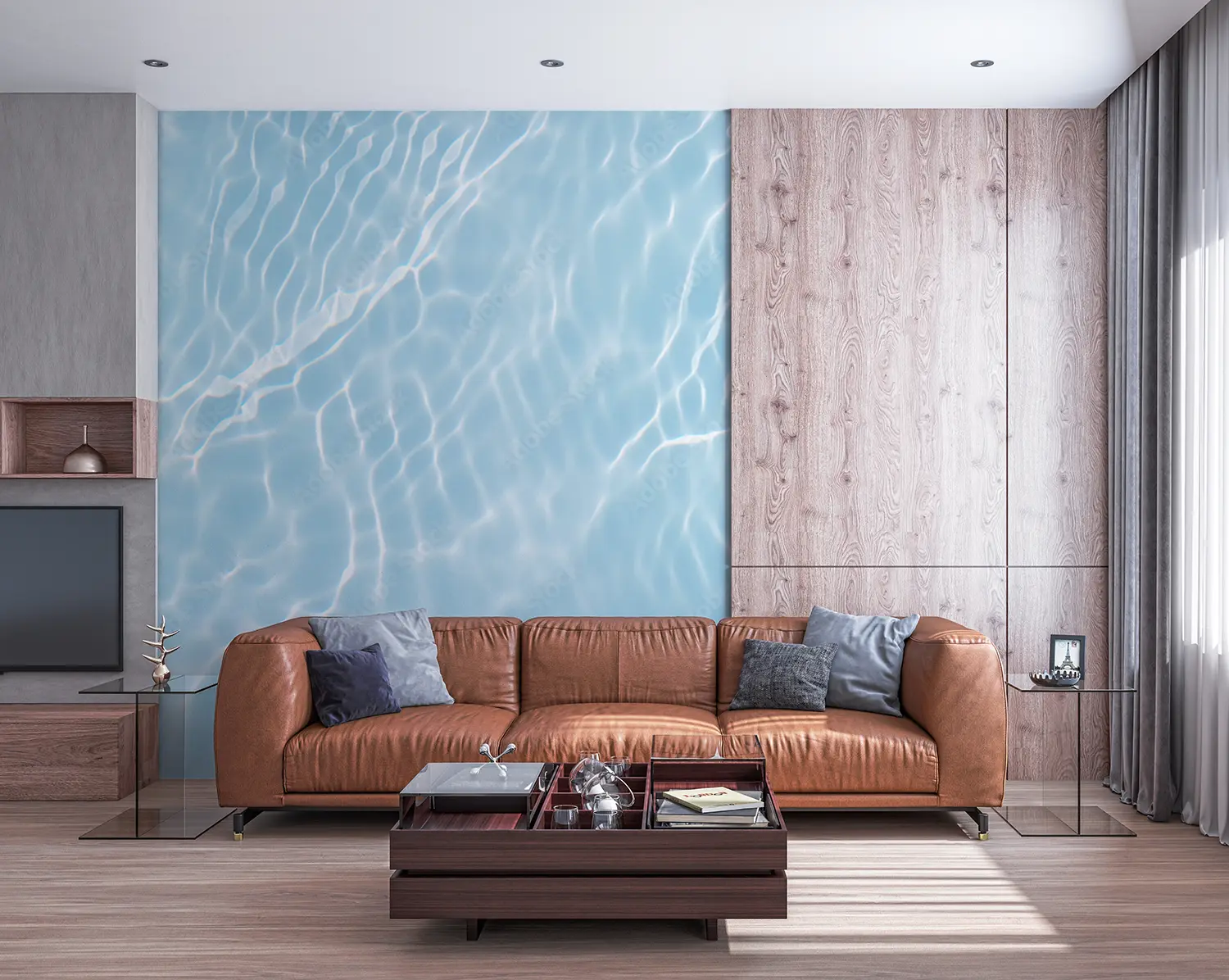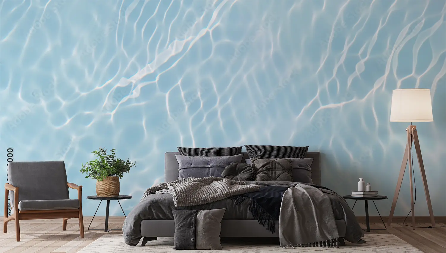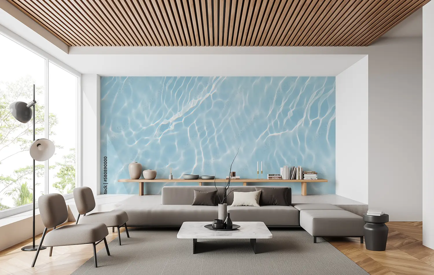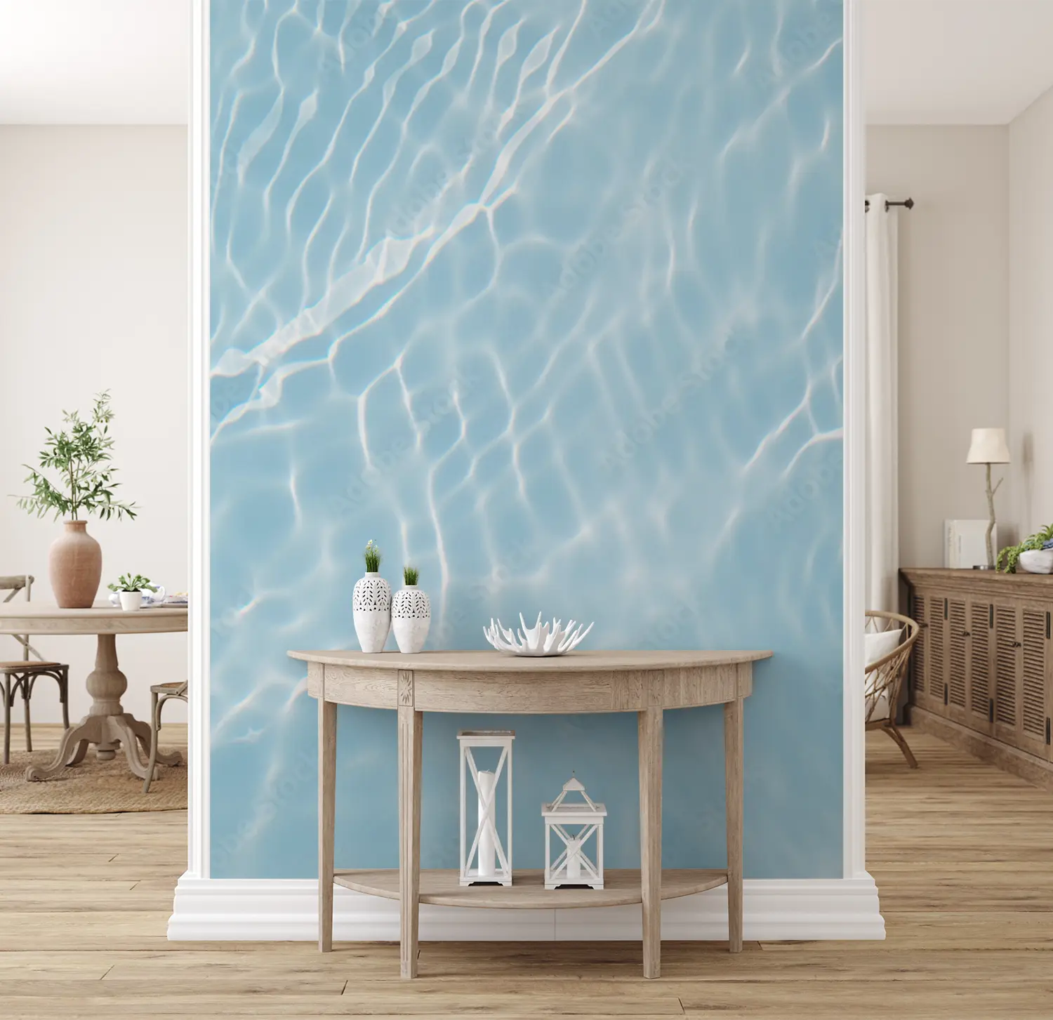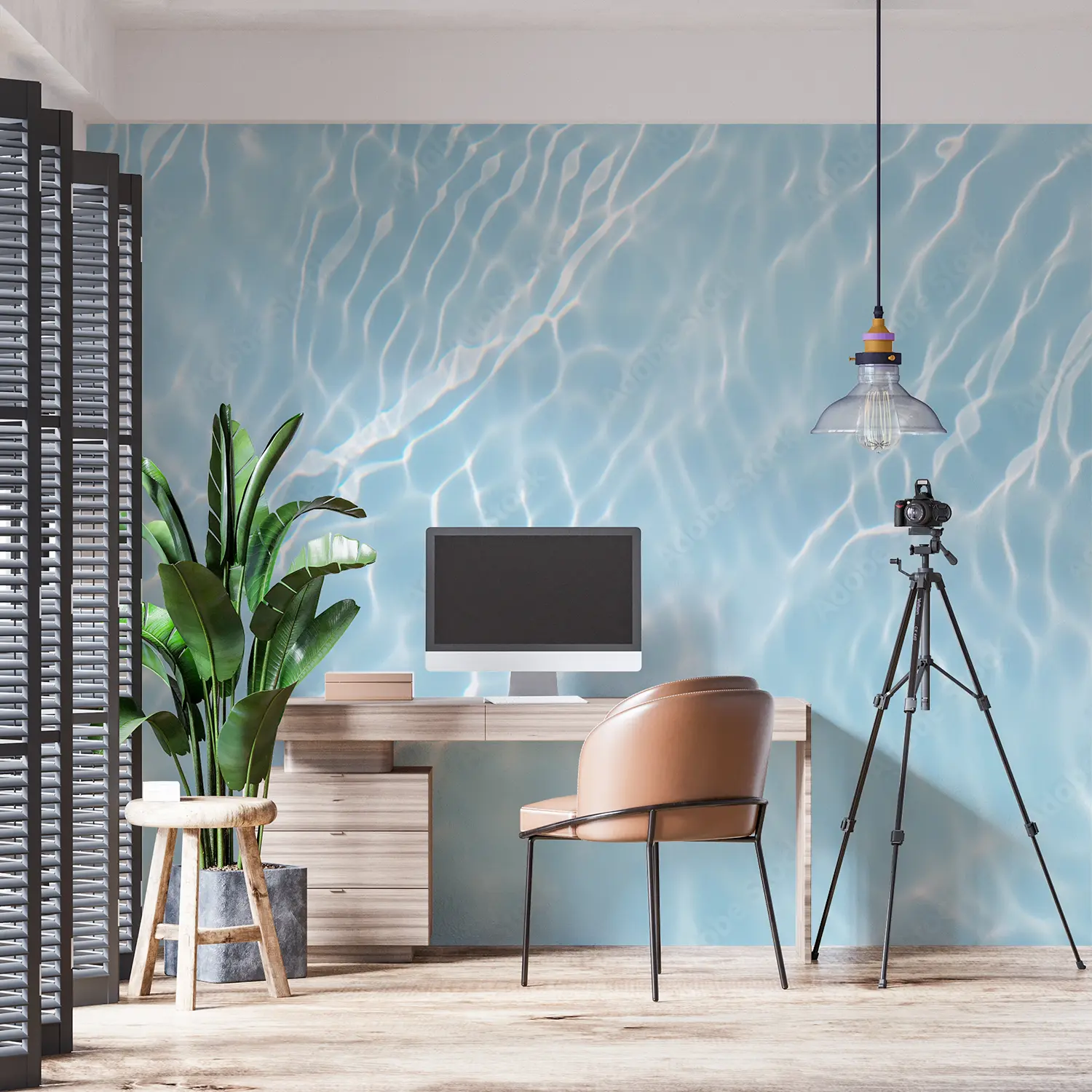 A close up of water, showcasing its transparent and reflective surface. The image has a dominant color of white and an accent color of 347C97, with a width of 1700 and height of 1134 pixels.
