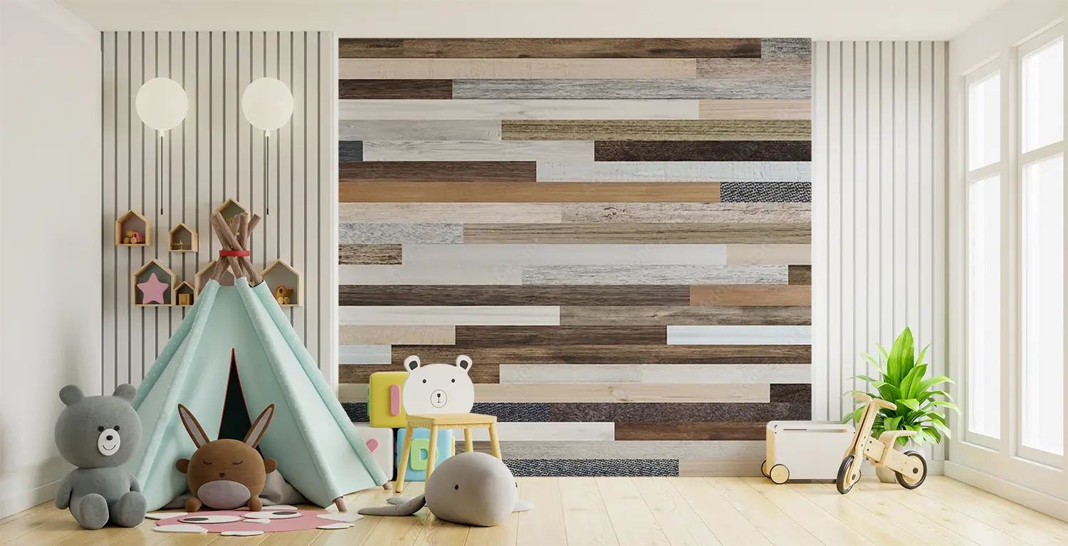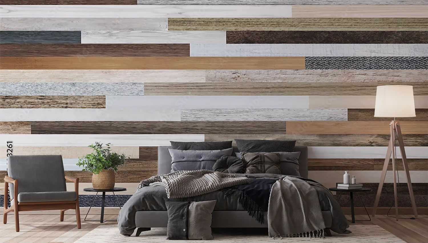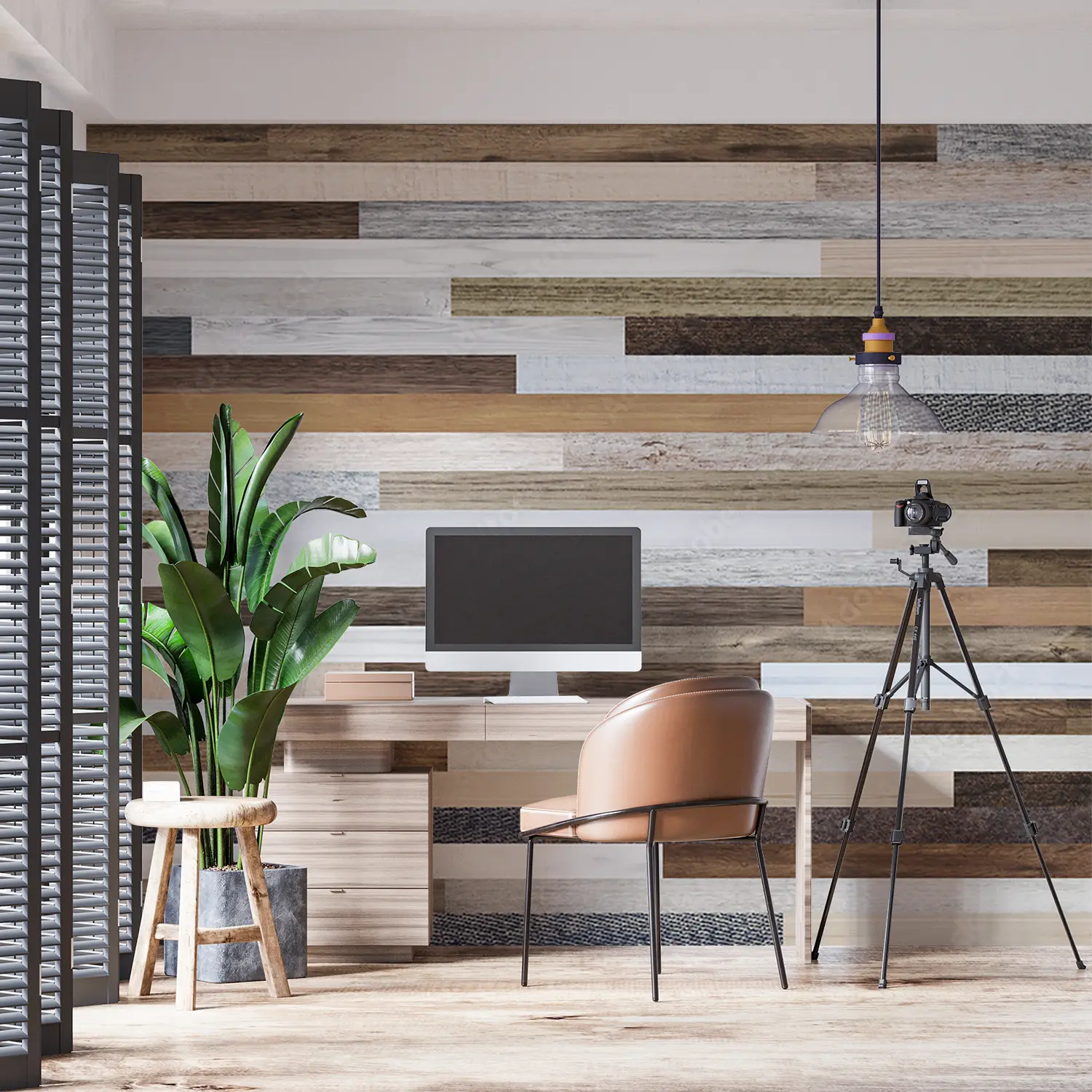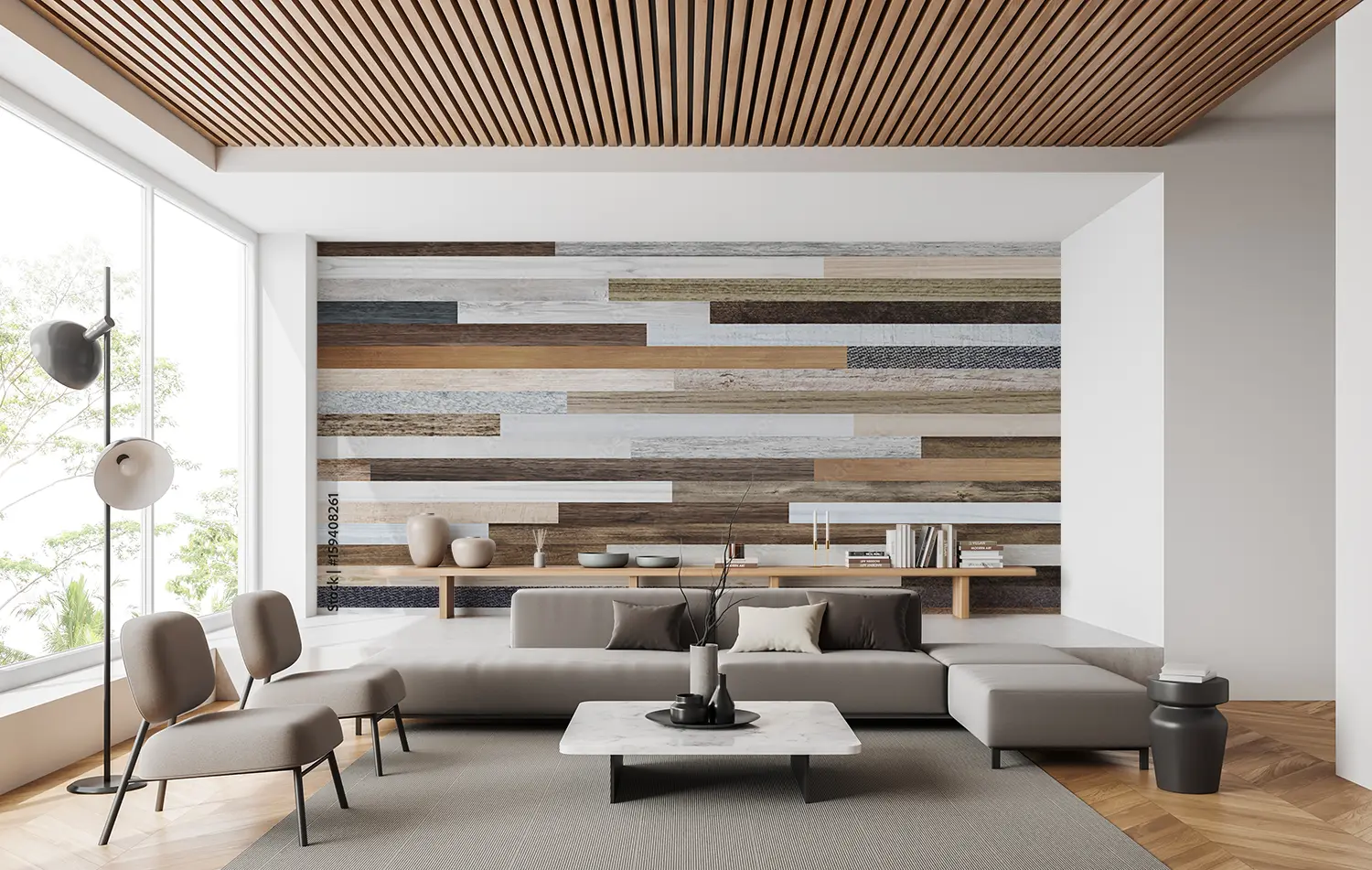 Transform your space with a captivating wood panel wall featuring a variety of colors. This unique design adds warmth and character to any room, making it a standout piece of home decor. Complementary colors to consider include shades of grey, brown, and earthy tones to enhance the overall aesthetic appeal of your living space.
