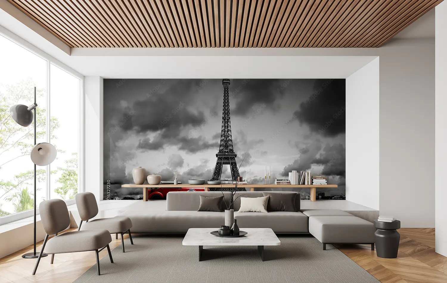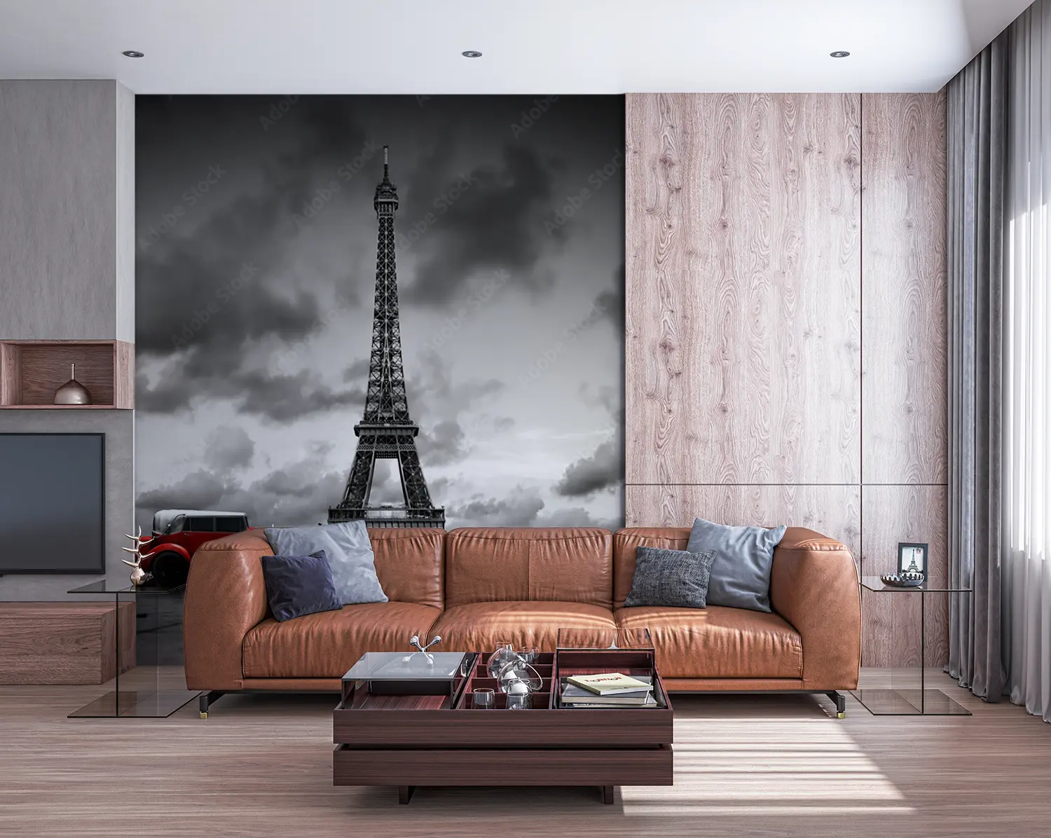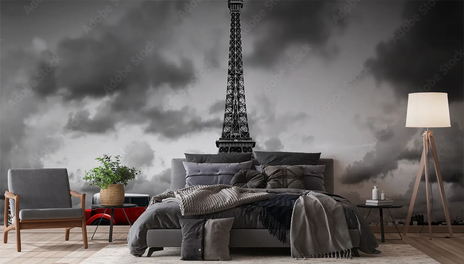 Transform your space with a captivating image of a red car parked in front of the iconic Eiffel Tower. This artistic piece adds a touch of wanderlust to your home decor, creating a sophisticated and stylish ambiance. Complementary colors like grey, white, and black will further enhance the aesthetic appeal of this stunning wall art.