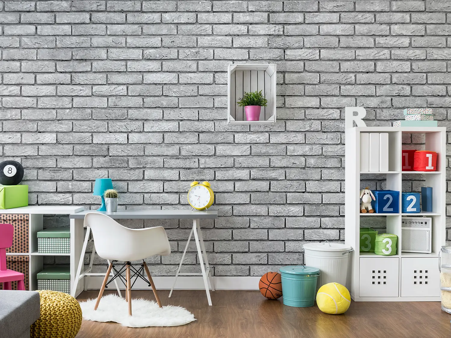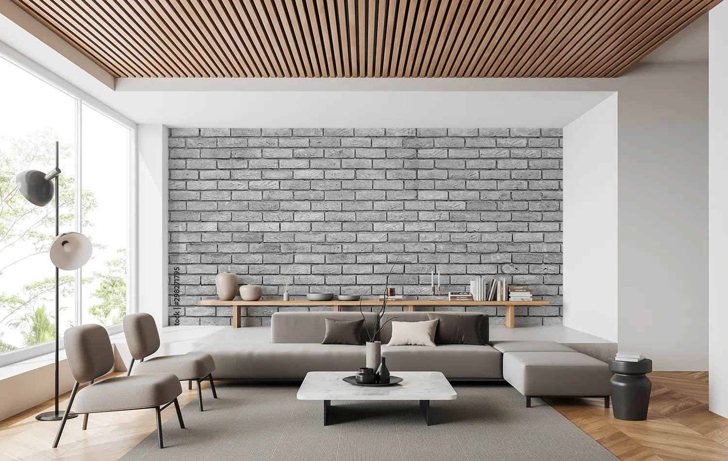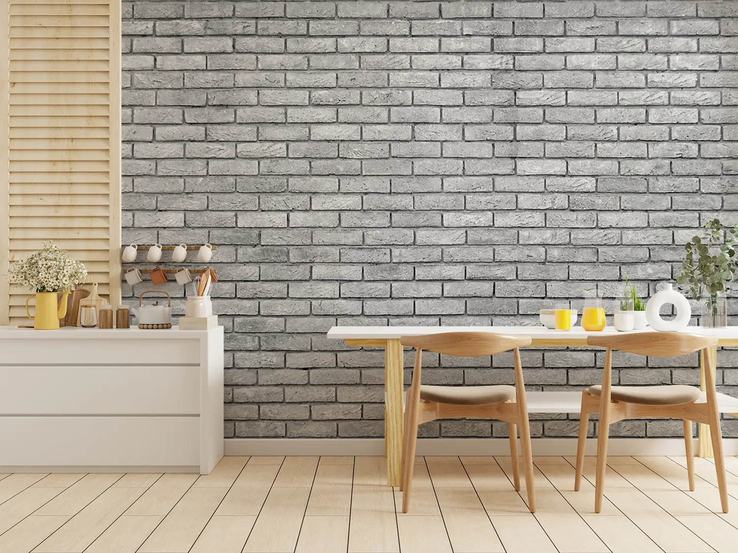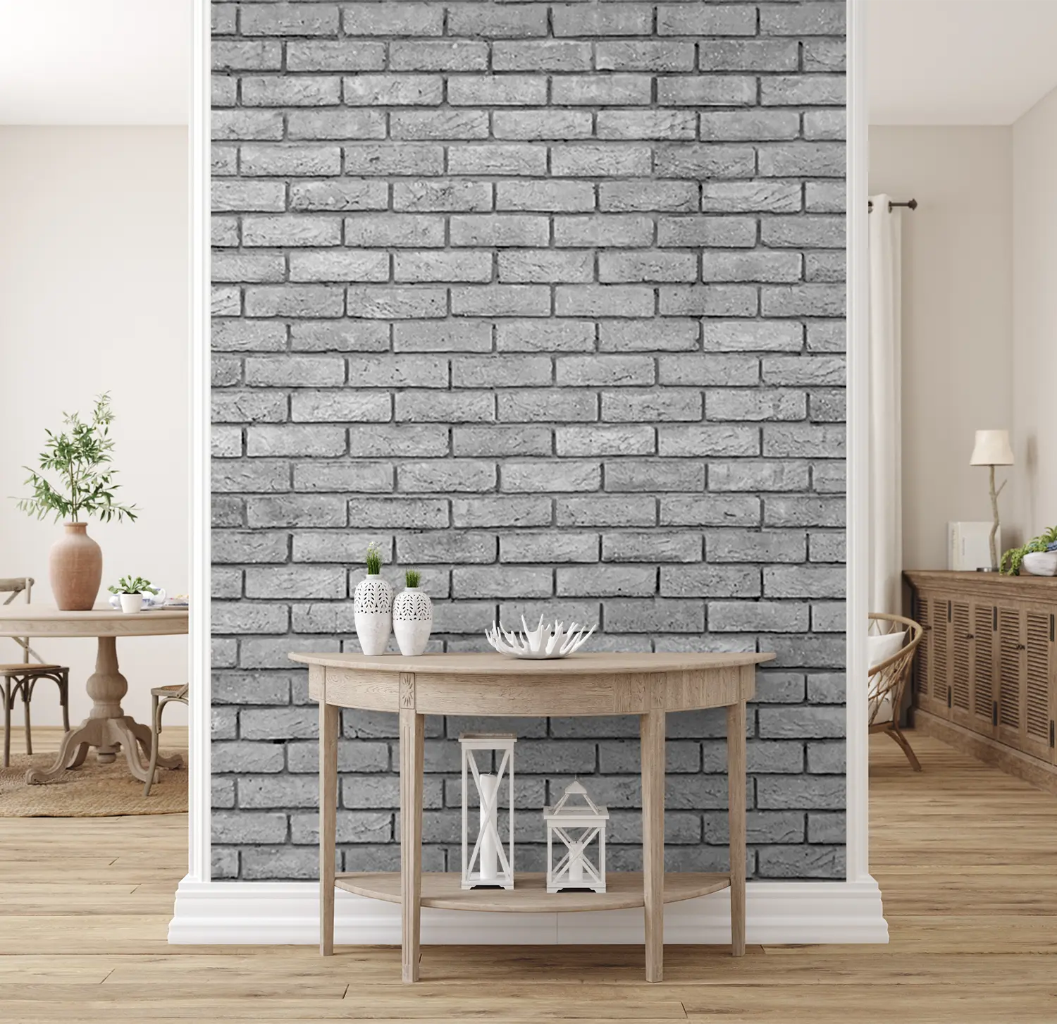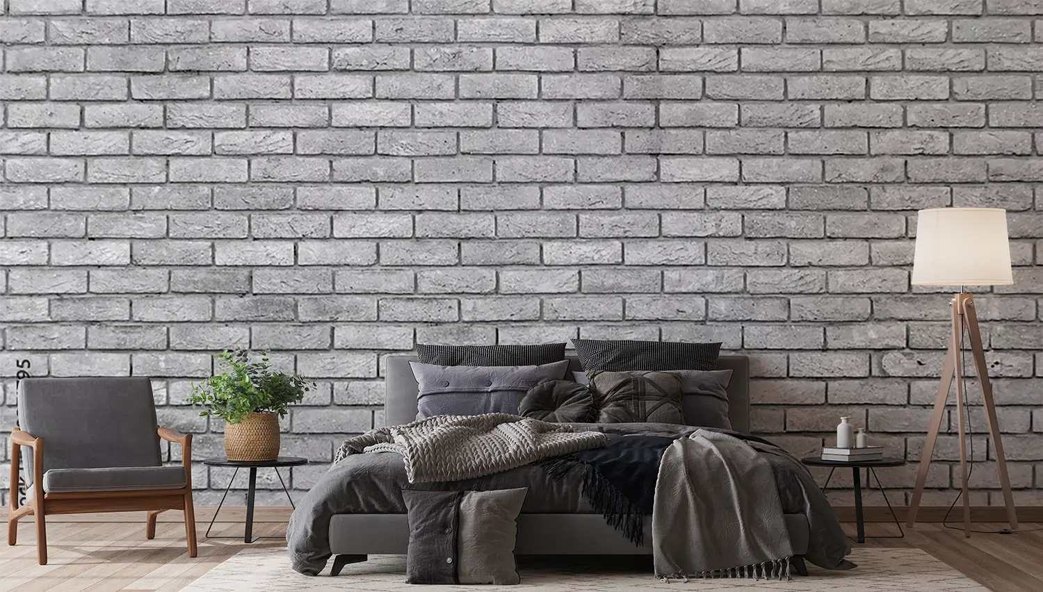 Transform your home decor with this stunning black and white brick wall image. Its timeless aesthetic appeal adds a touch of sophistication to any room. Complementary colors to consider include shades of grey, charcoal, and silver to enhance the overall look and feel of your space. Elevate your interior design with this captivating wall art.