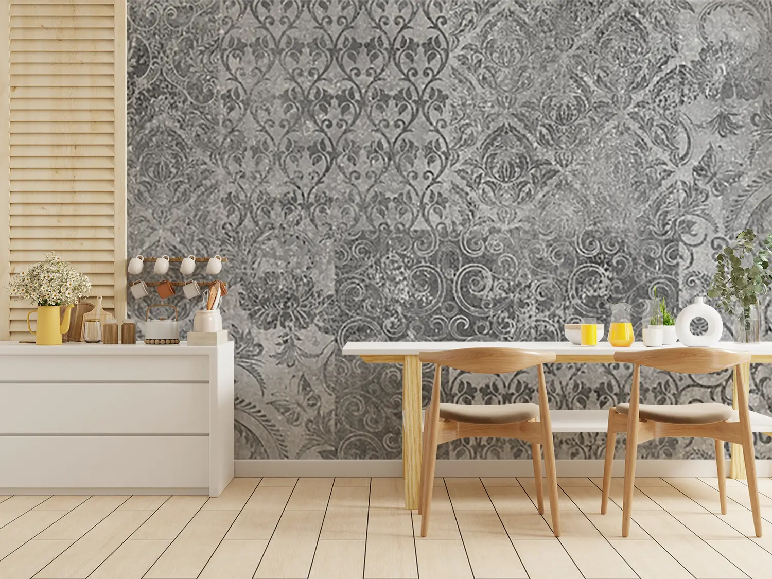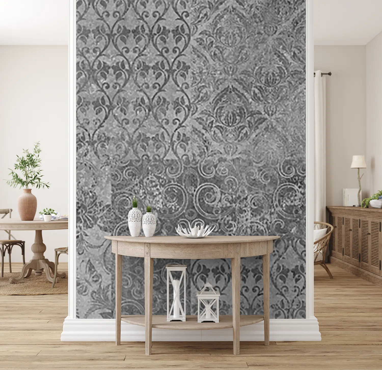 Transform your space with this stunning black and white wall art featuring a captivating pattern design. Enhance your home decor with its timeless aesthetic appeal, adding a touch of sophistication to any room. Complementary colors to consider for a cohesive look include shades of gray, white, and silver. Elevate your interior with this exquisite piece of wall art.