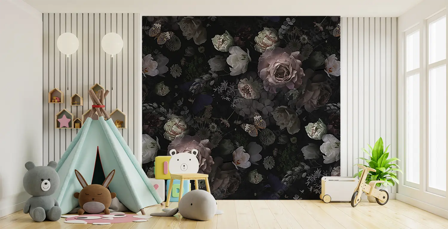 Transform your space with this stunning floral wall art featuring a variety of flowers in shades of pink, purple, and white on a chic black background. Enhance your home decor with this artistic piece that adds a touch of nature's beauty to any room. Complementary colors include soft greys, muted pinks, and deep purples for a harmonious look.