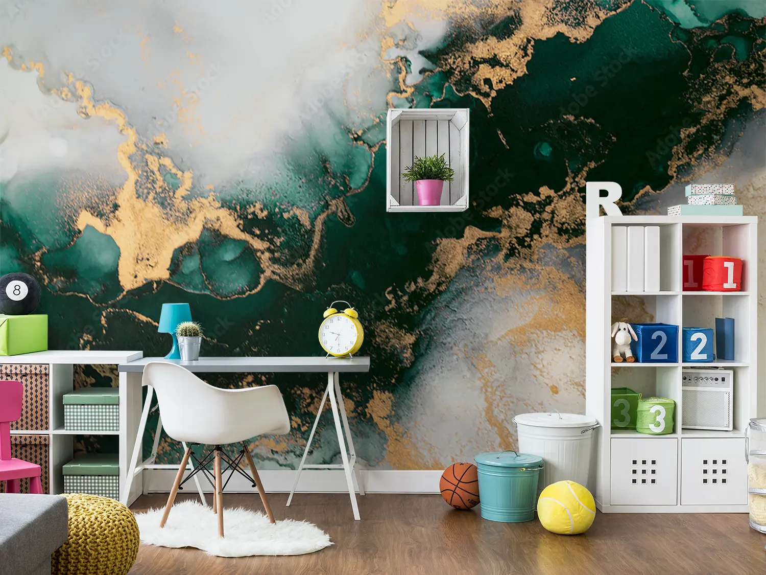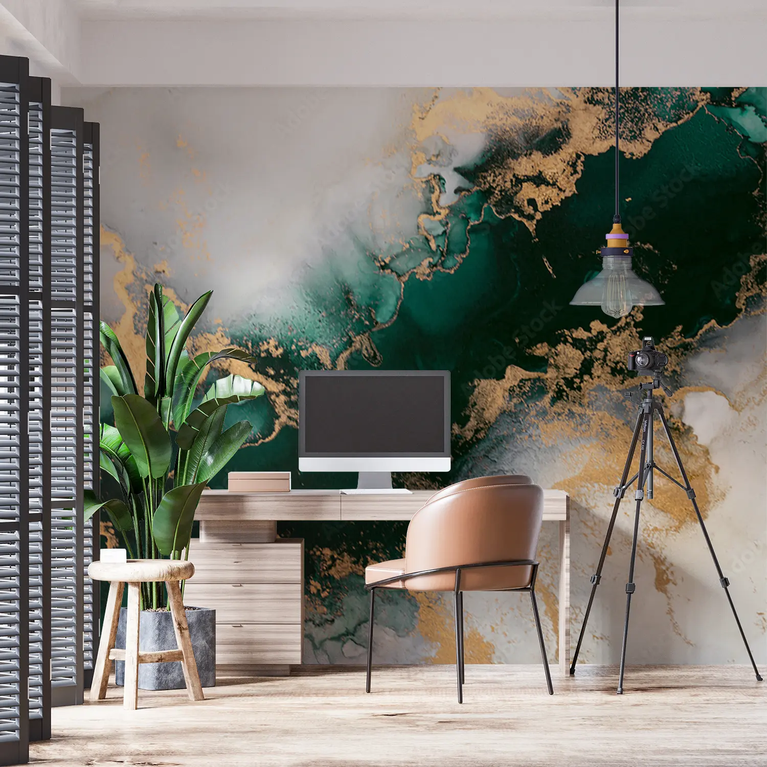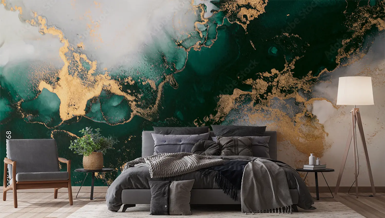 Elevate your home decor with this stunning wall art featuring a mesmerizing blend of gold and green hues. The marbled background adds a touch of sophistication, making it a perfect focal point for any room. Complementary colors like white, brown, and powder can enhance the overall aesthetic appeal of your space.