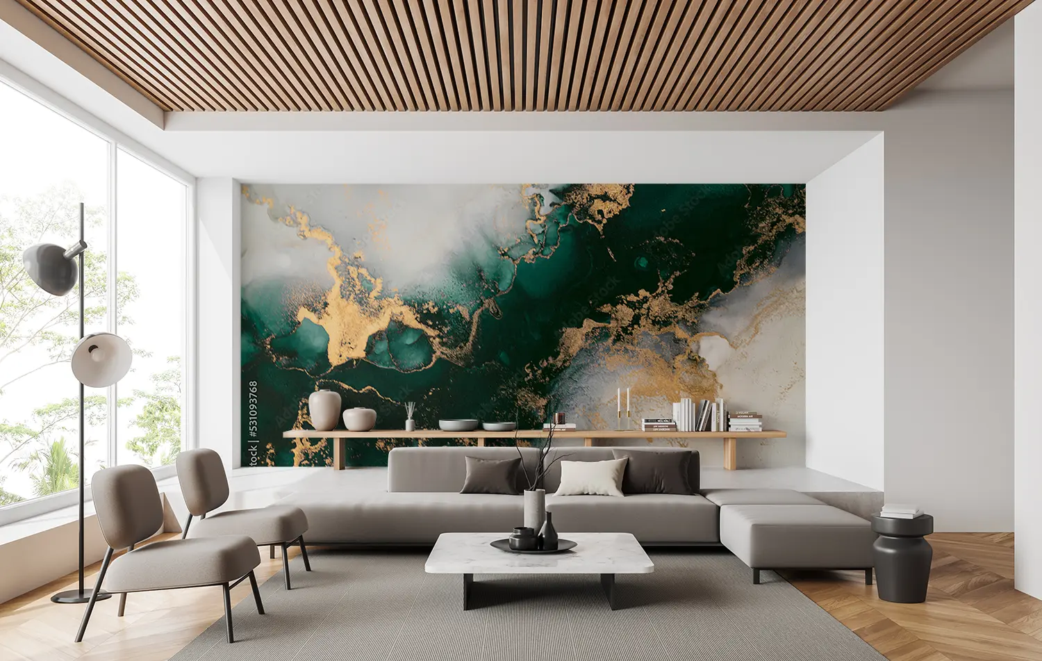 Elegant Gold and Green Painted Wall