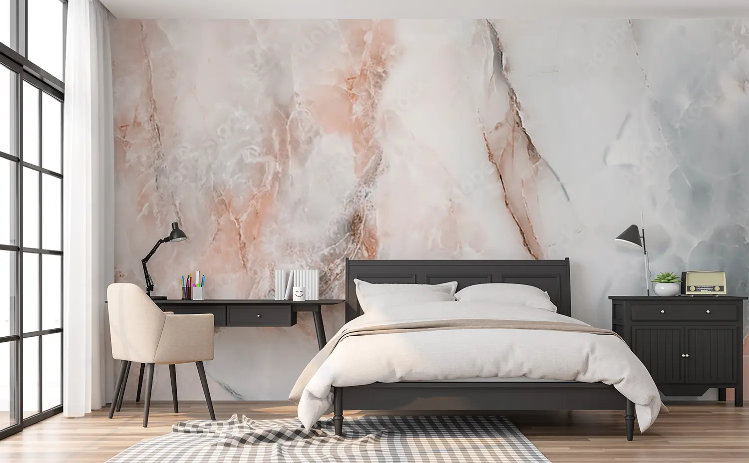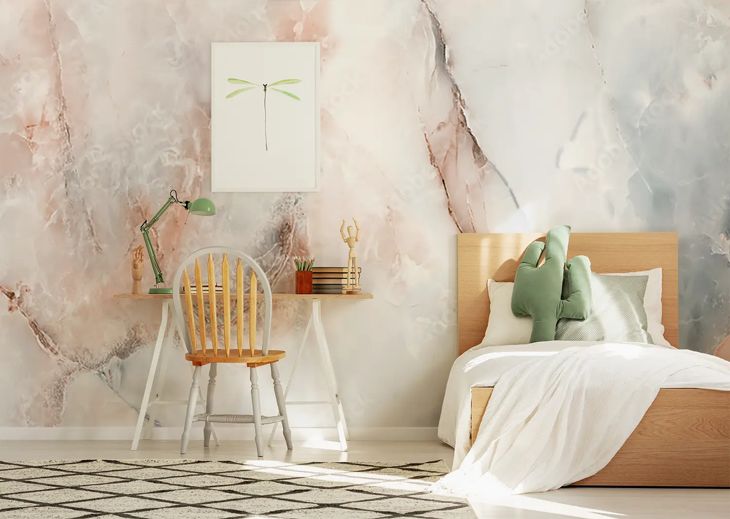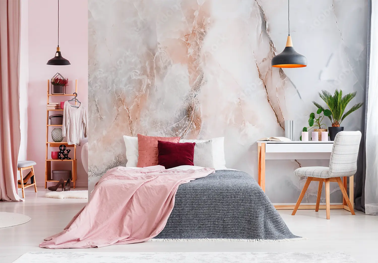 Transform your space with this stunning marble surface wall art. The pink and white color scheme adds a touch of sophistication and elegance to any room. Complementary colors like soft blues and greys will enhance the aesthetic appeal of this piece, making it the perfect addition to elevate your home decor.