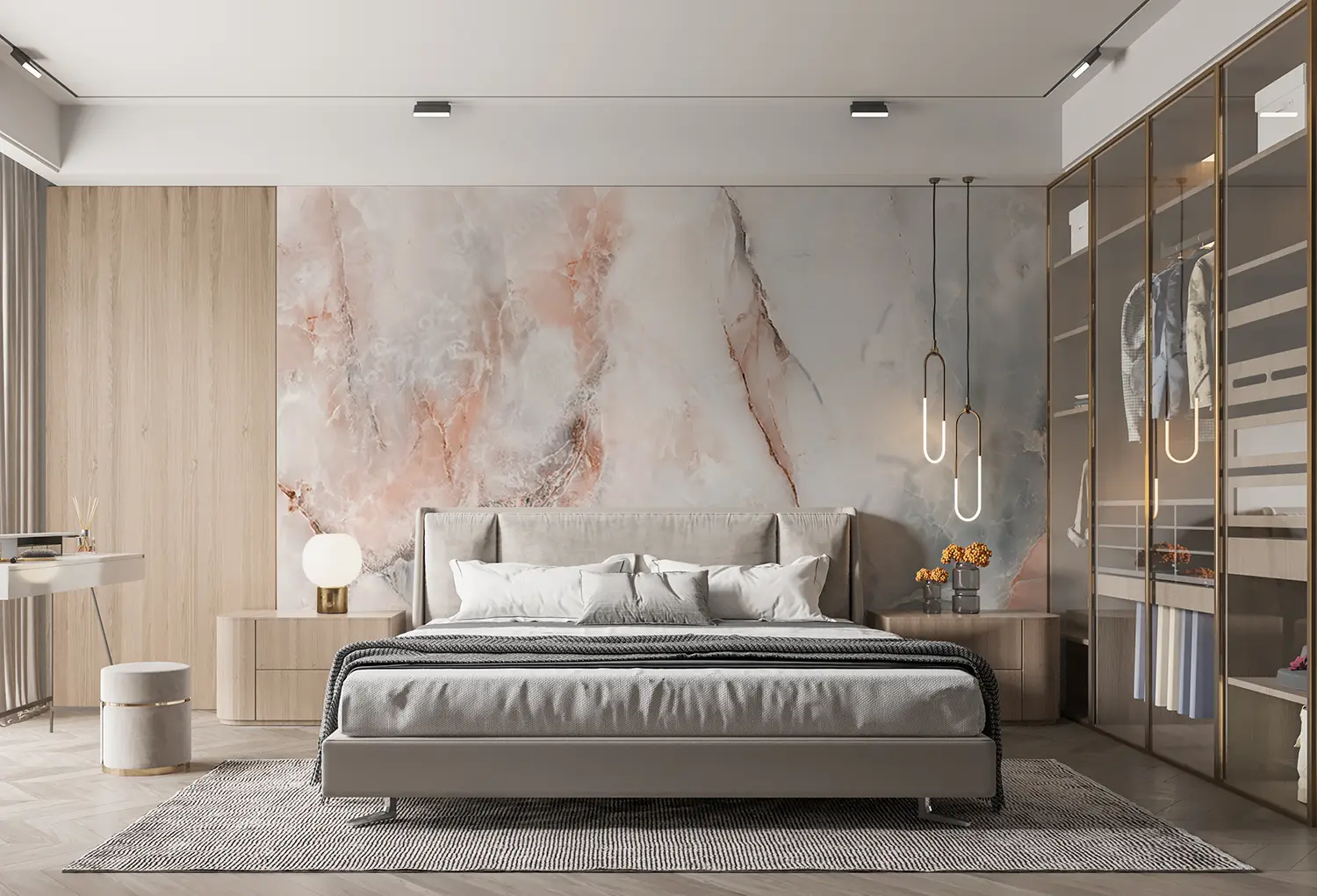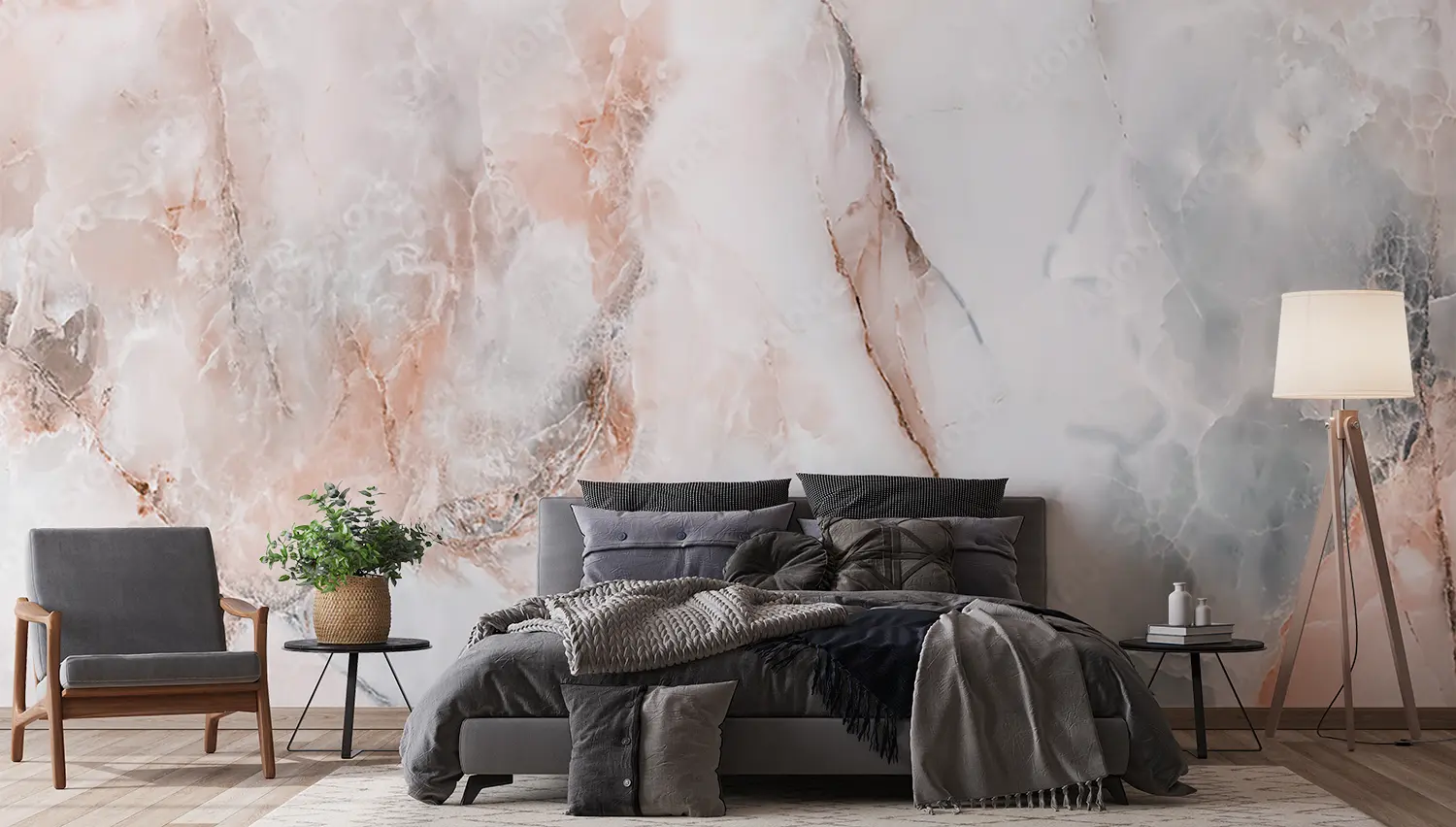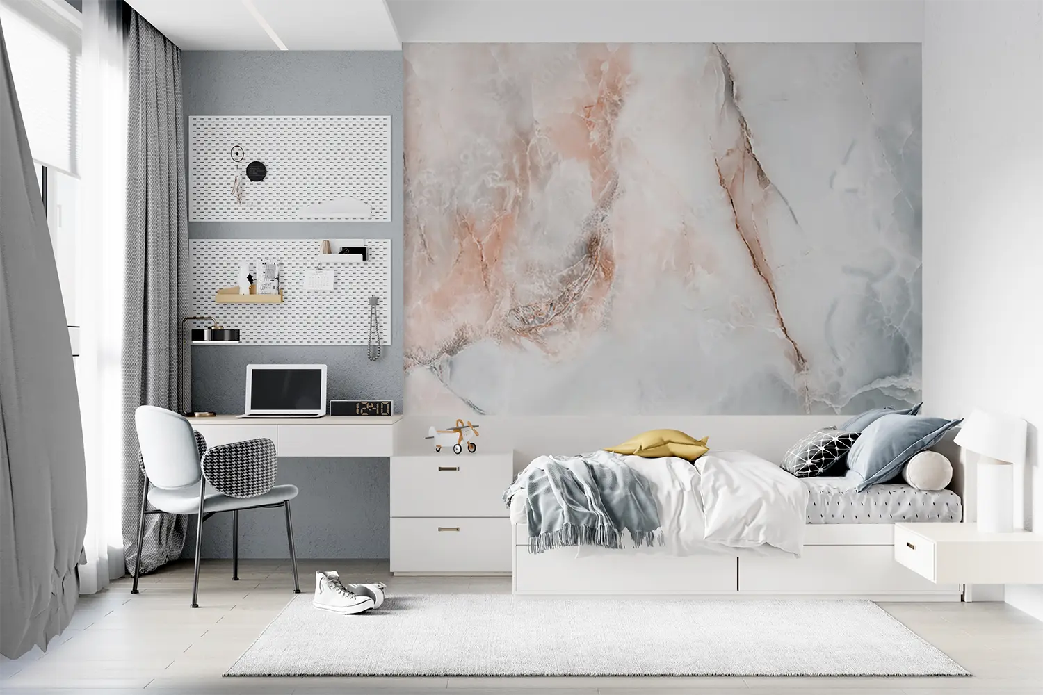 Transform your space with this stunning marble surface wall art. The pink and white color scheme adds a touch of sophistication and elegance to any room. Complementary colors like soft blues and greys will enhance the aesthetic appeal of this piece, making it the perfect addition to elevate your home decor.