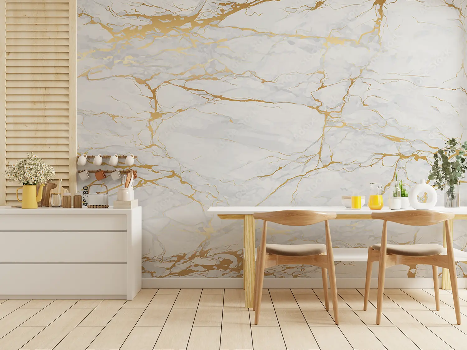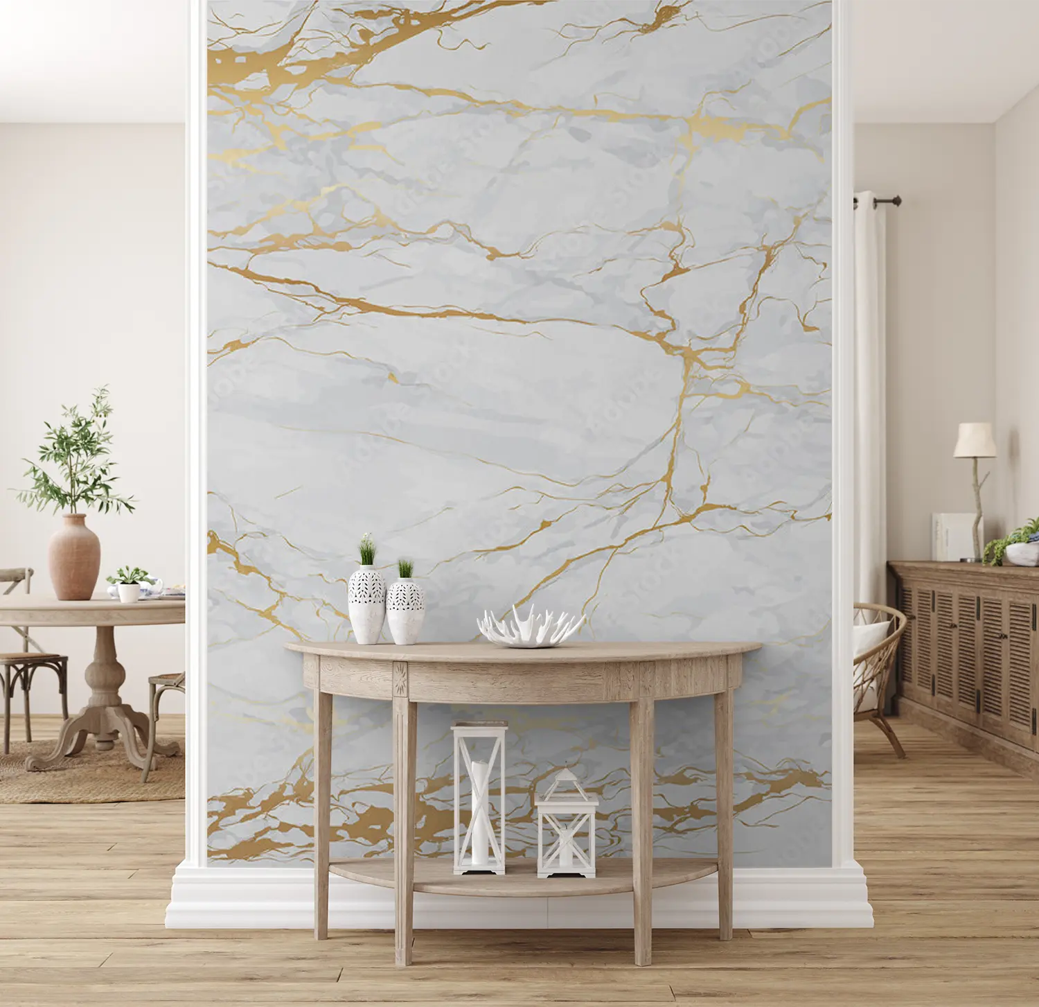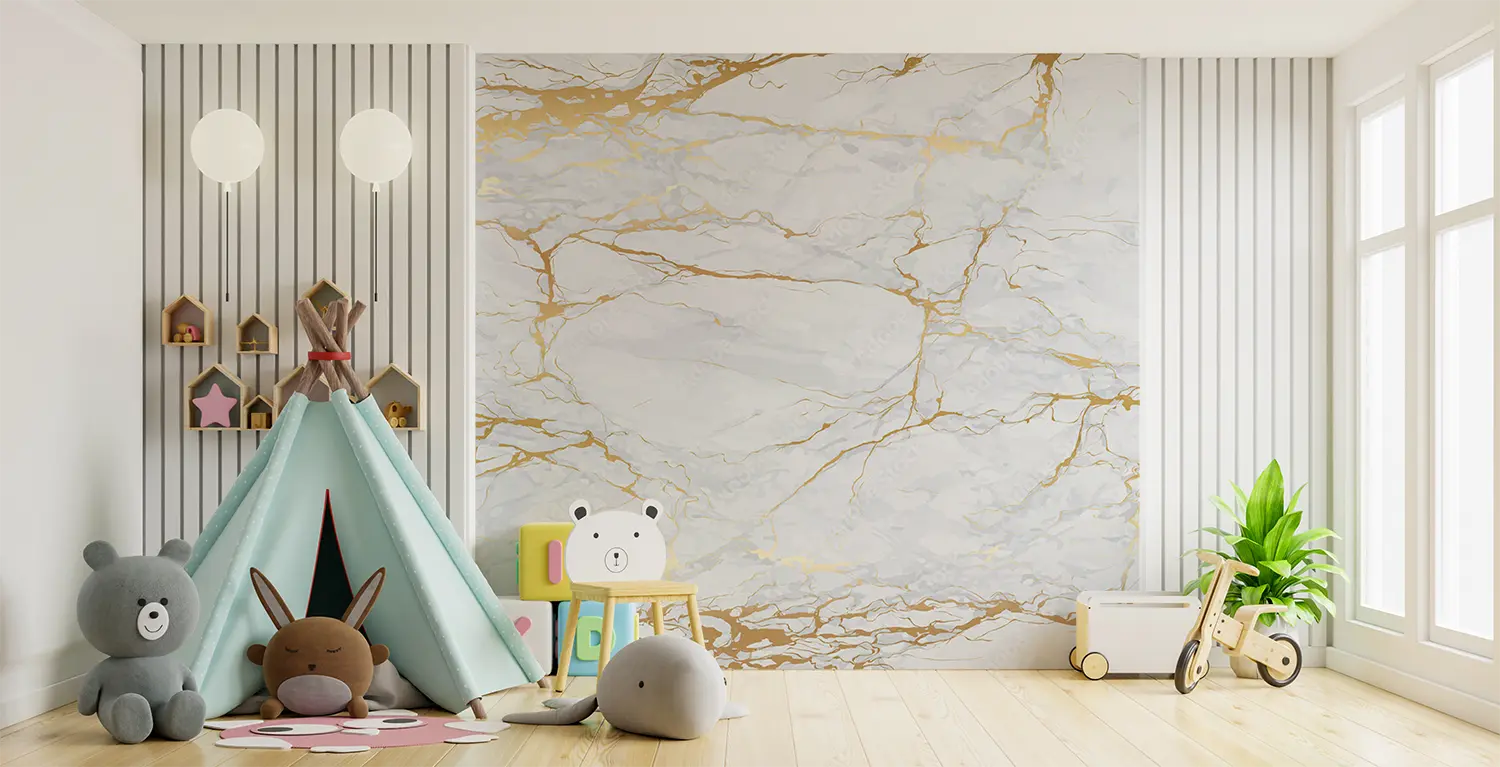 Elegant Marble Wall with Gold Accents
