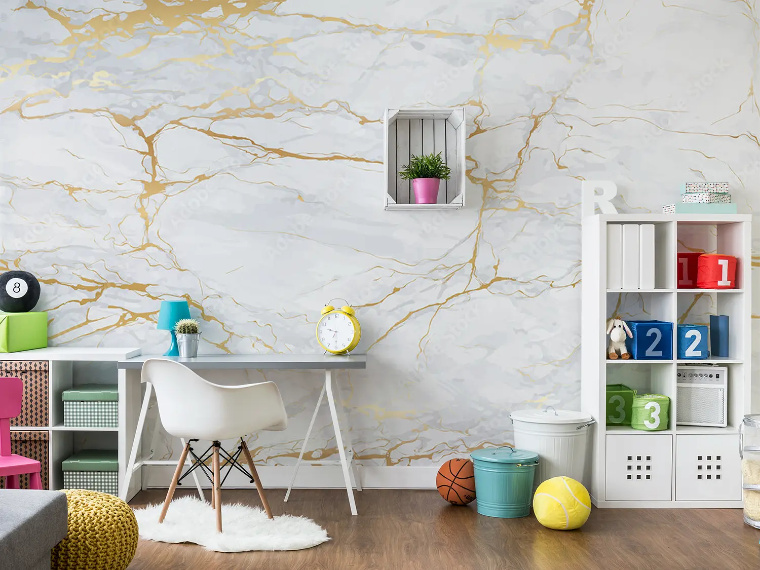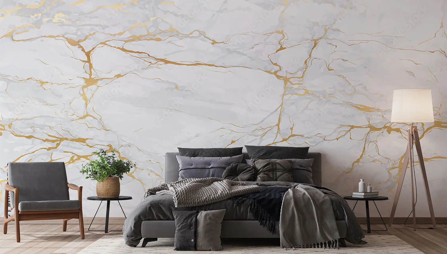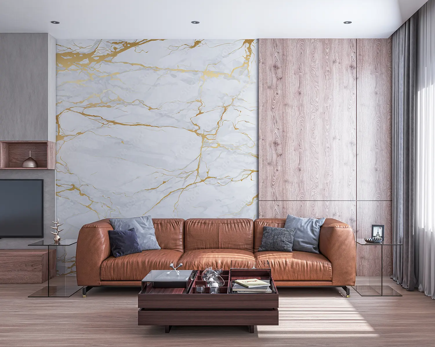 Elegant Marble Wall with Gold Accents