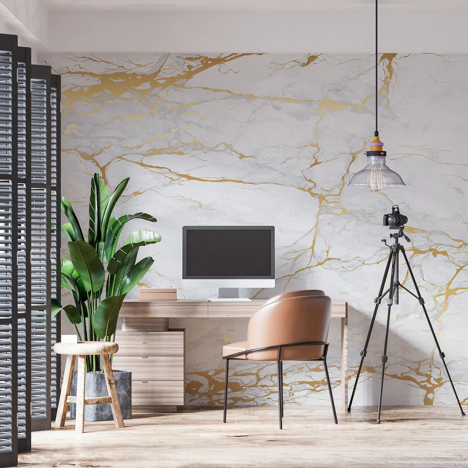 Transform your space with this stunning marble wall adorned with luxurious gold foil accents. The intricate texture and shimmering details add a touch of sophistication to any room, making it a perfect statement piece for your home decor. Complementary colors to consider include soft whites, warm neutrals, and subtle hints of gold for a cohesive and elegant look.
