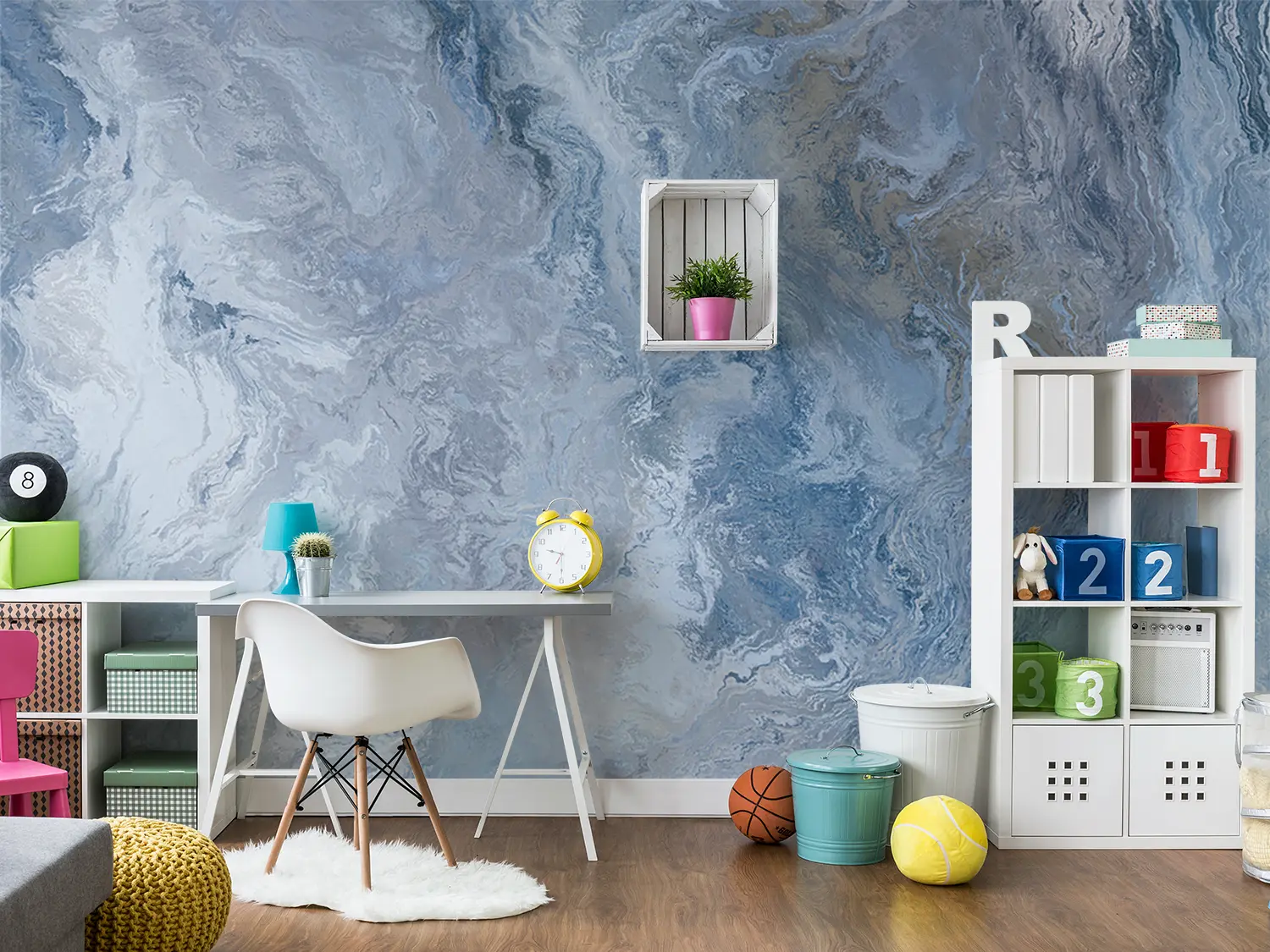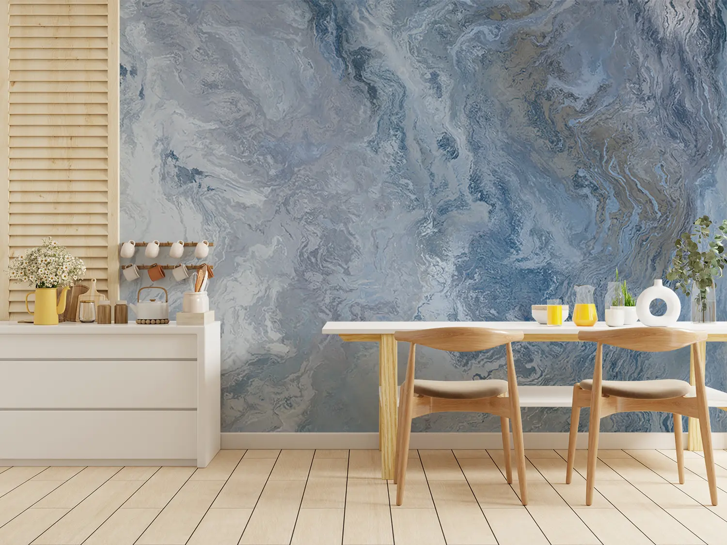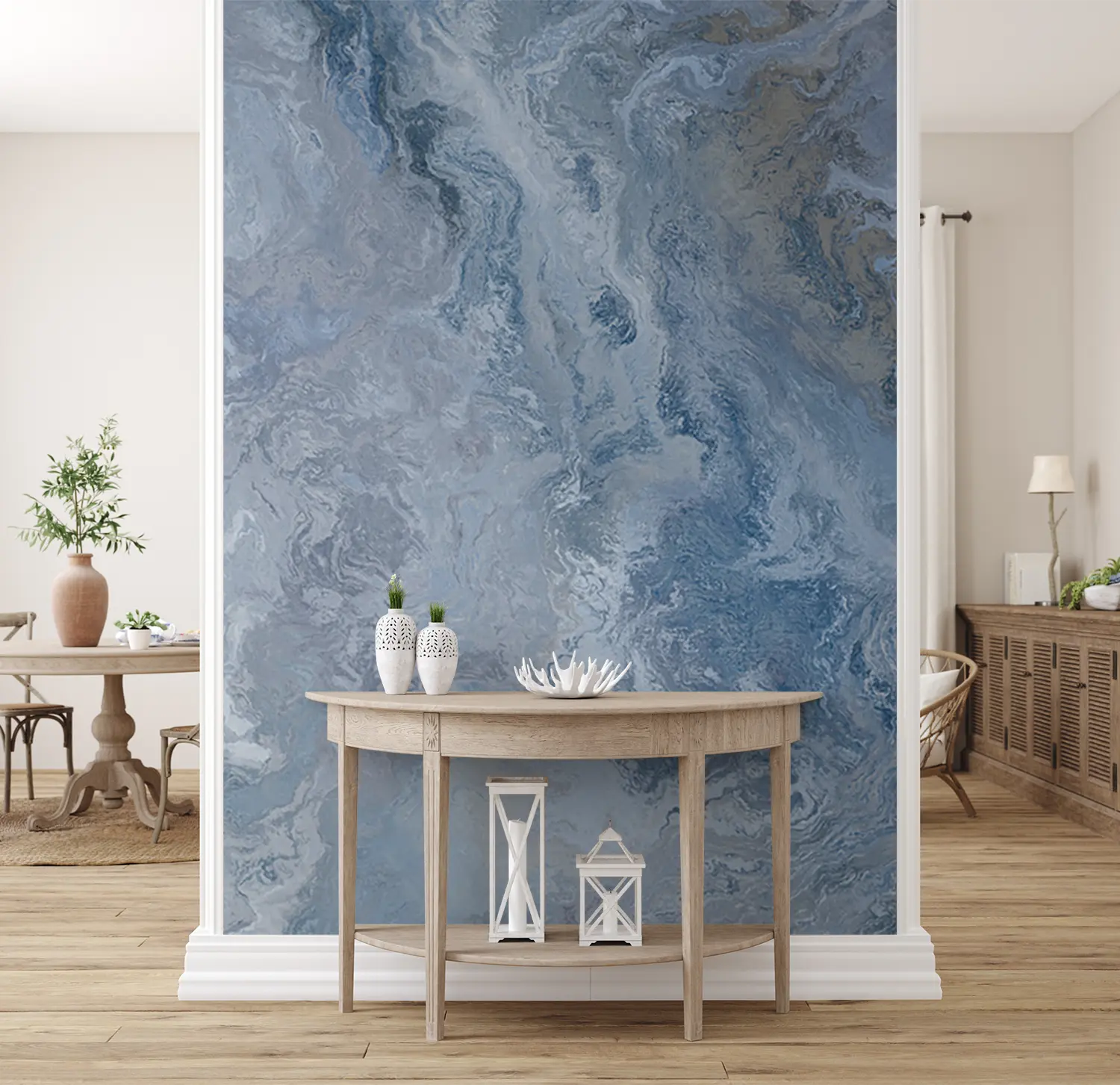 Adorn your space with a stunning marbled wall art featuring a blend of blue and white hues. This captivating piece adds a touch of sophistication to any room, making it a perfect choice for home decor enthusiasts. Pair it with accents in shades of grey, silver, and navy to create a cohesive and stylish look.
