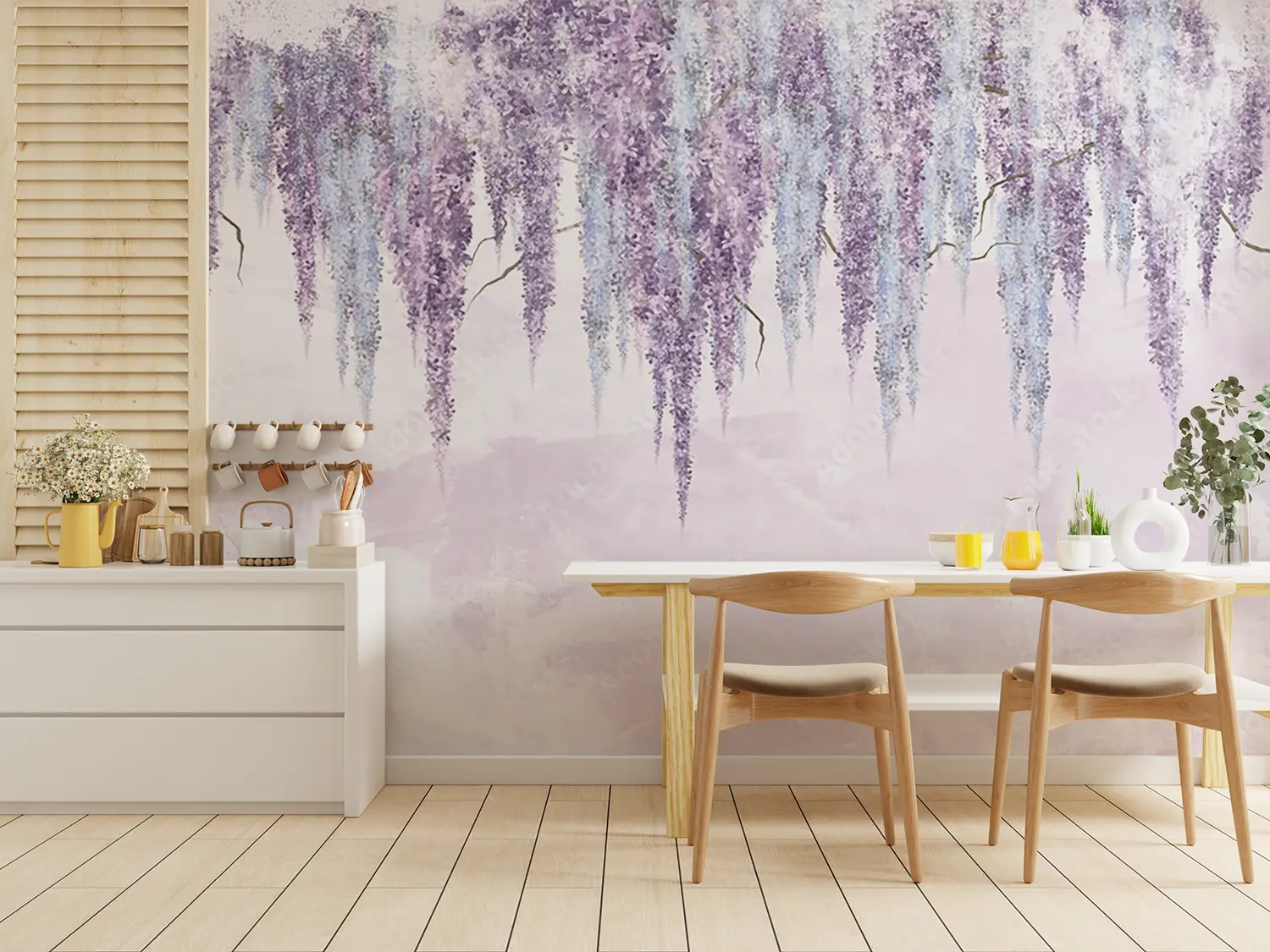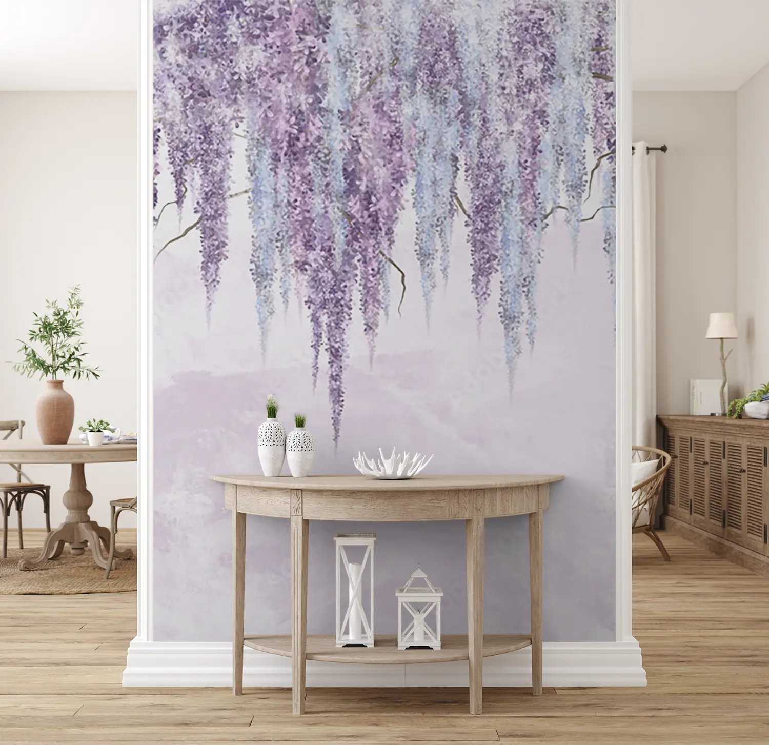 Transform your space with this stunning painting of purple flowers, adding a touch of elegance and nature-inspired beauty to your home decor. The delicate hues of purple and white create a calming atmosphere, perfect for any room. Complementary colors to consider include soft shades of lavender, grey, and ivory to enhance the overall aesthetic appeal.