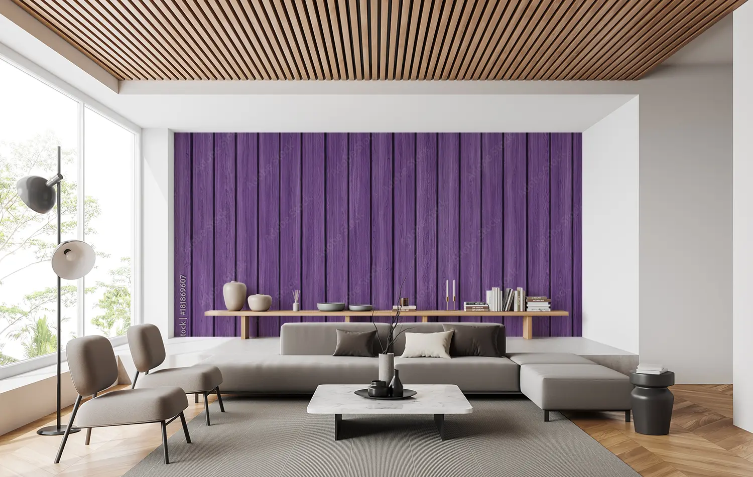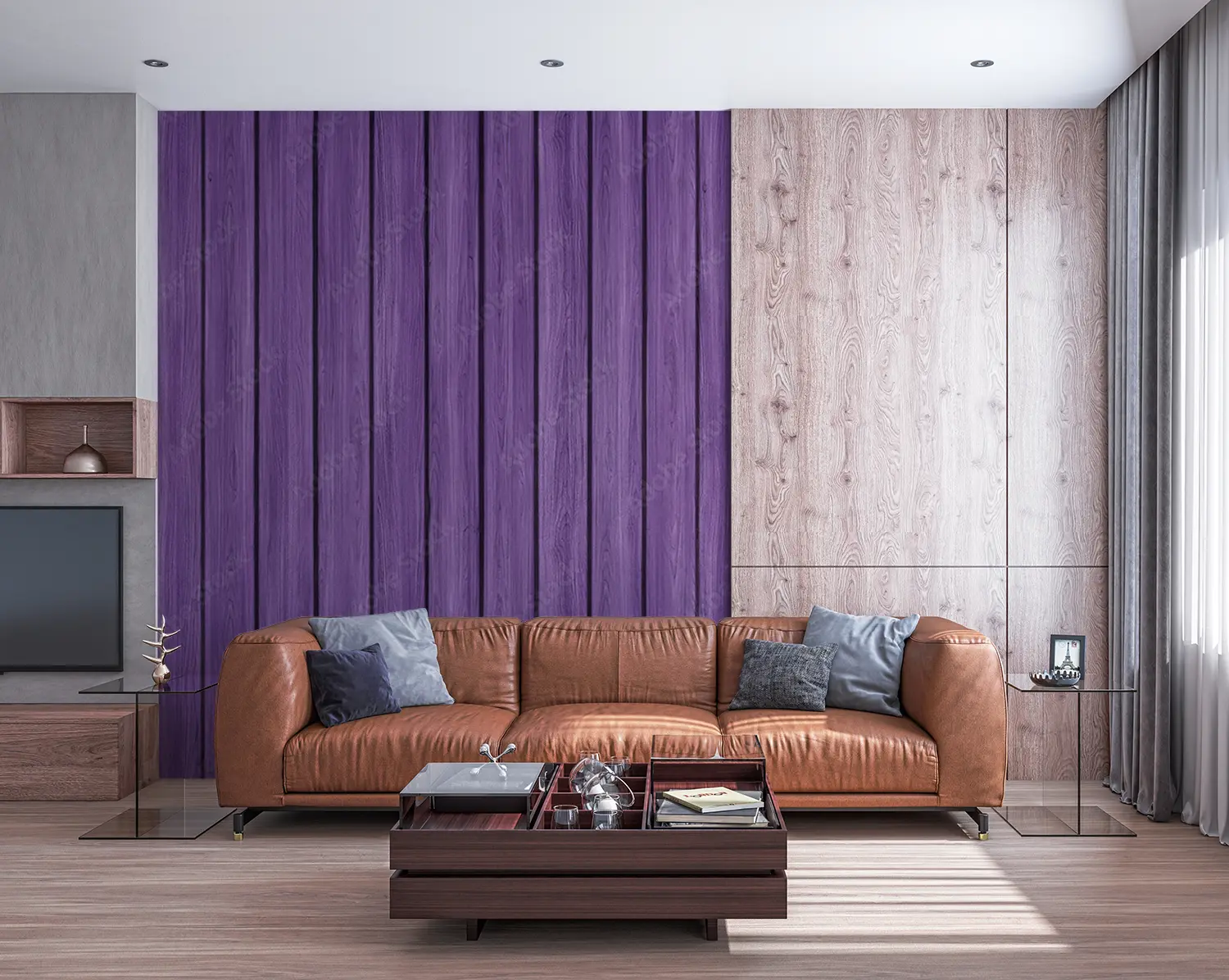 Transform your space with this stunning purple wood plank wall. The rich colors and intricate pattern add a touch of sophistication to any room, making it the perfect focal point for your home decor. Complementary colors such as white, grey, and silver accents will enhance the beauty of this unique and stylish design.