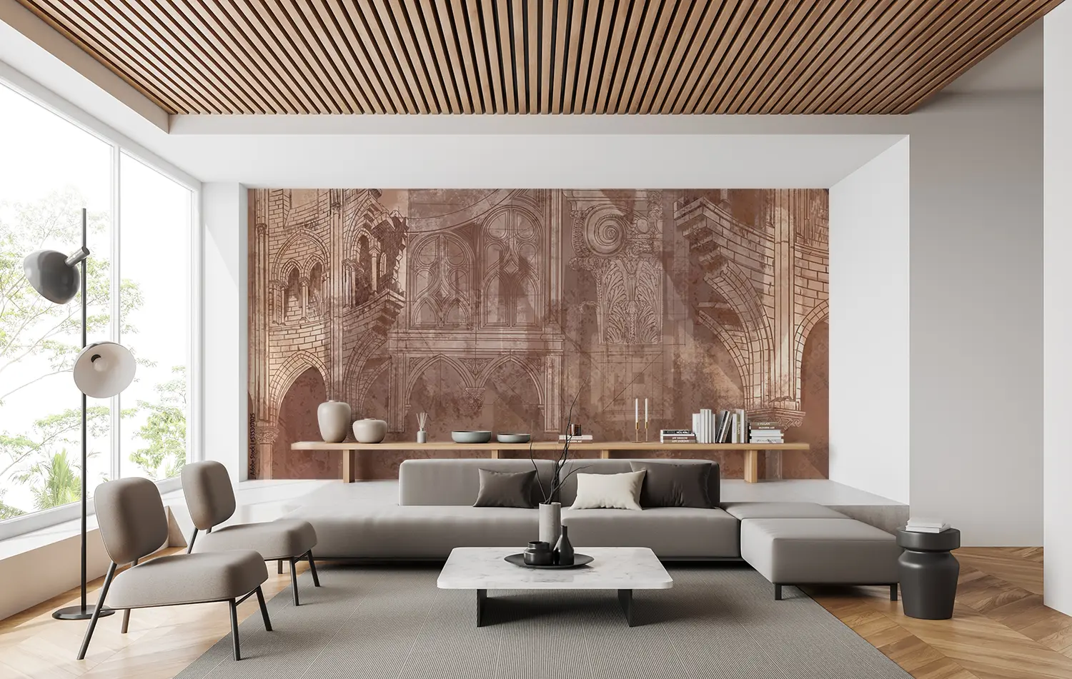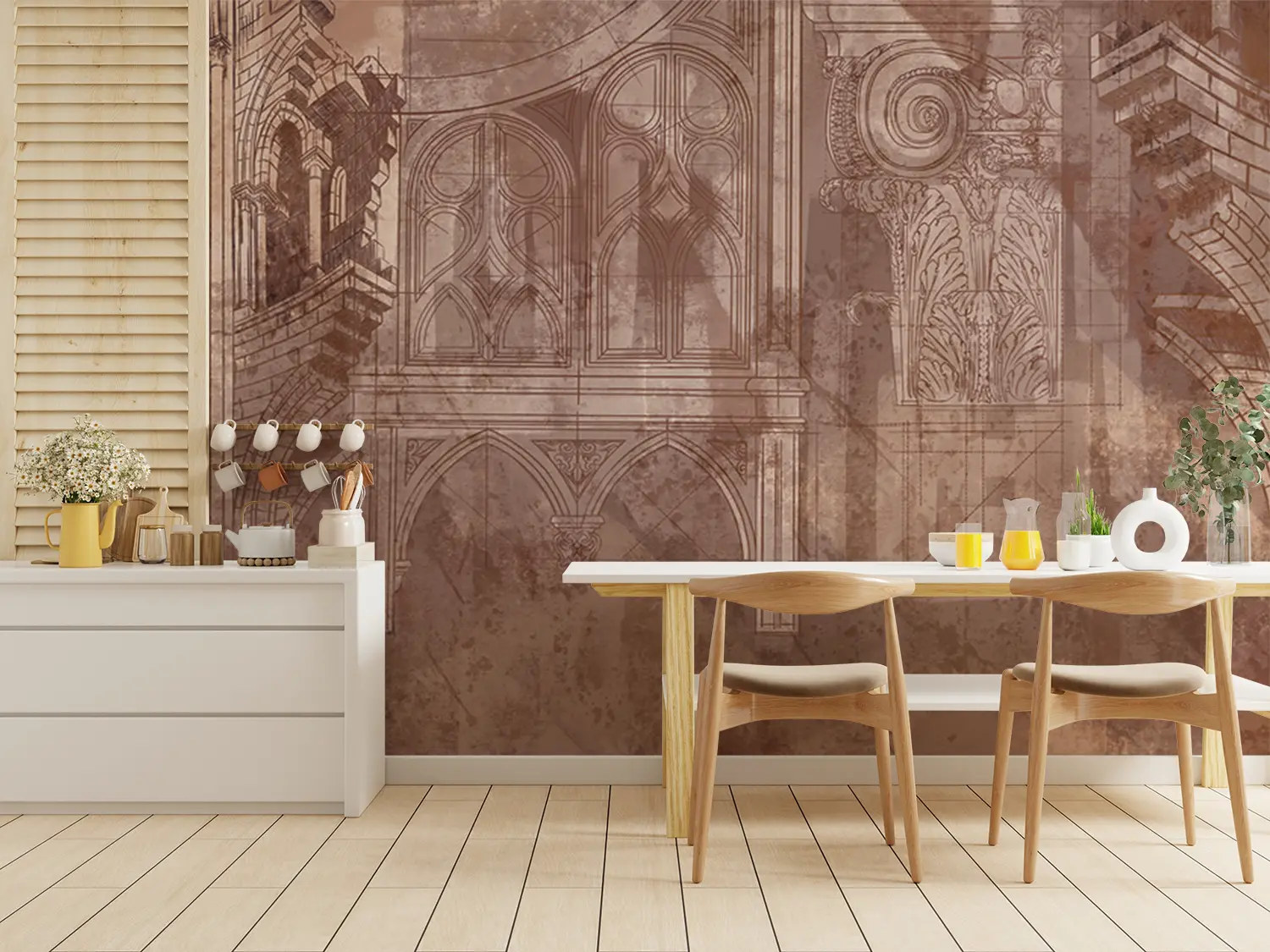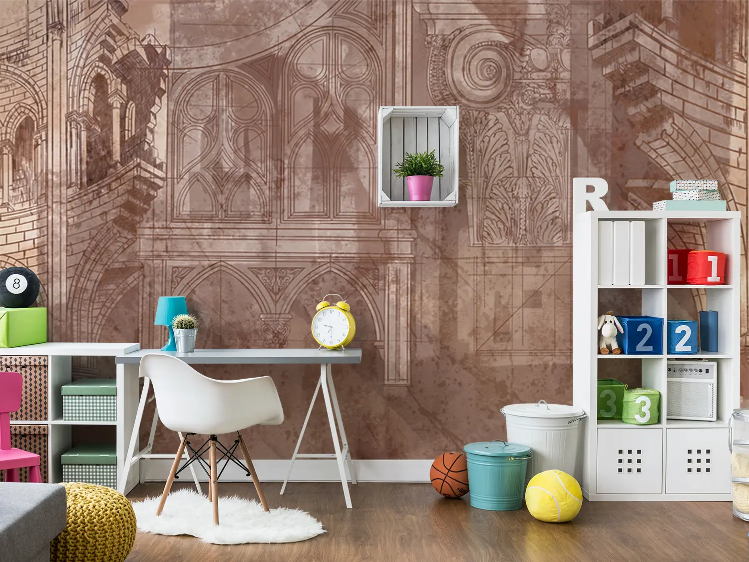 Transform your space with an enchanting drawing of a building with a clock, adding a touch of timeless elegance to your home decor. The intricate details and warm color palette of browns, creams, and soft blues create a cozy and inviting atmosphere. Perfect for those who appreciate classic architectural beauty in their living space.