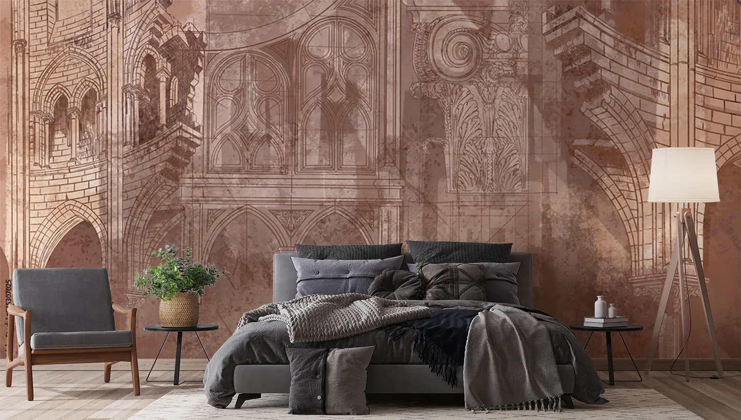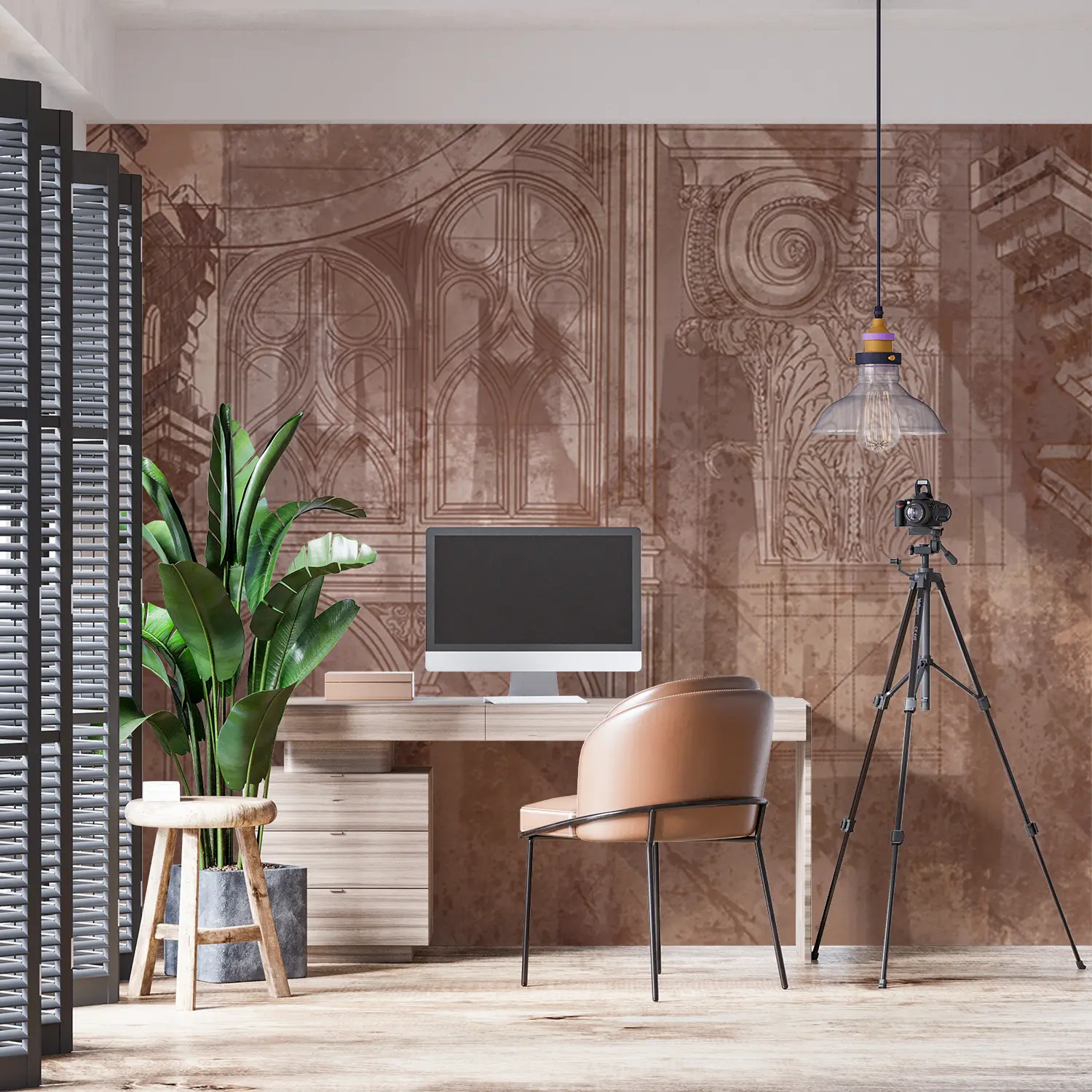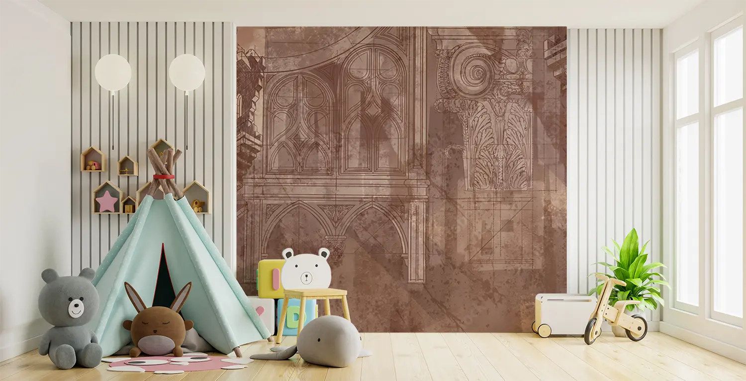 Transform your space with an enchanting drawing of a building with a clock, adding a touch of timeless elegance to your home decor. The intricate details and warm color palette of browns, creams, and soft blues create a cozy and inviting atmosphere. Perfect for those who appreciate classic architectural beauty in their living space.