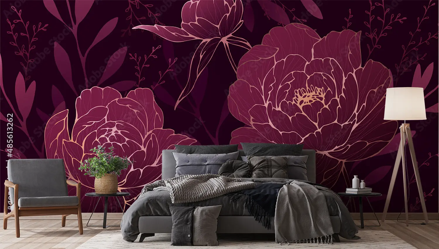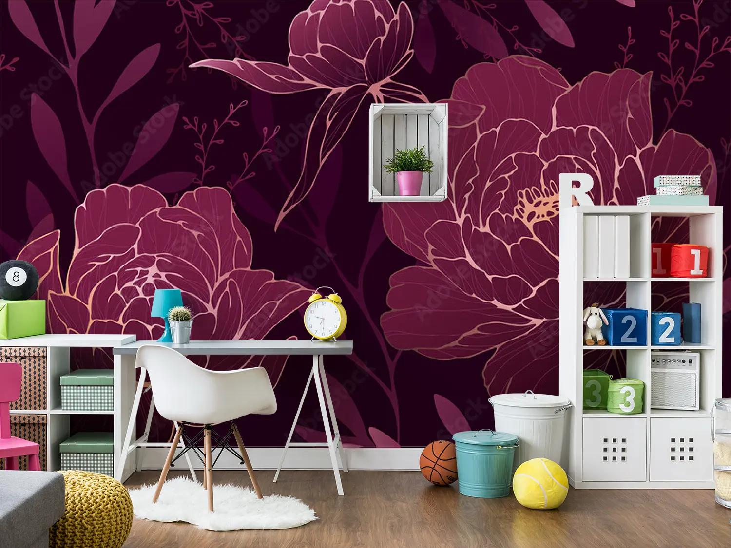 Elevate your home decor with this captivating wall art featuring a beautiful floral pattern on a dark background. The intricate design of purple flowers adds a touch of elegance and charm to any space. Complementary colors like red, pink, and purple can further enhance the aesthetic appeal of your room, creating a harmonious and inviting atmosphere.