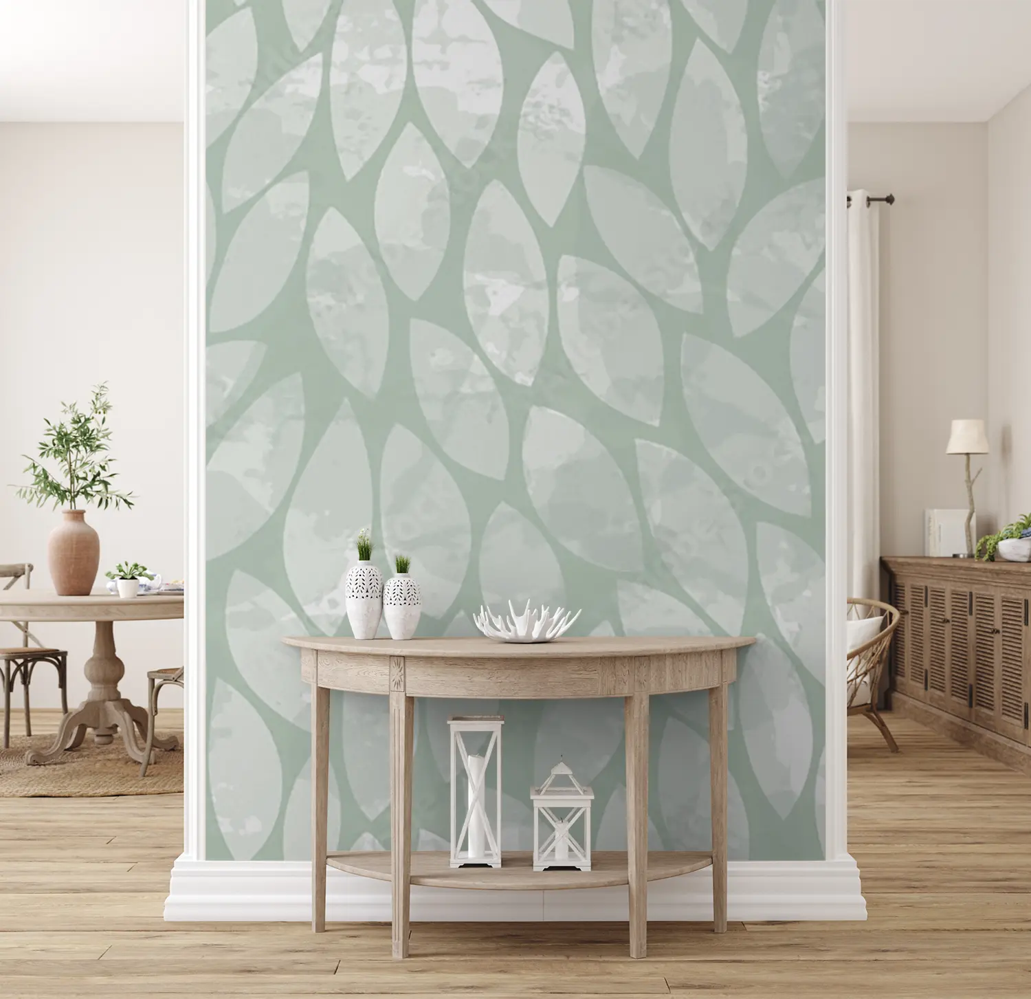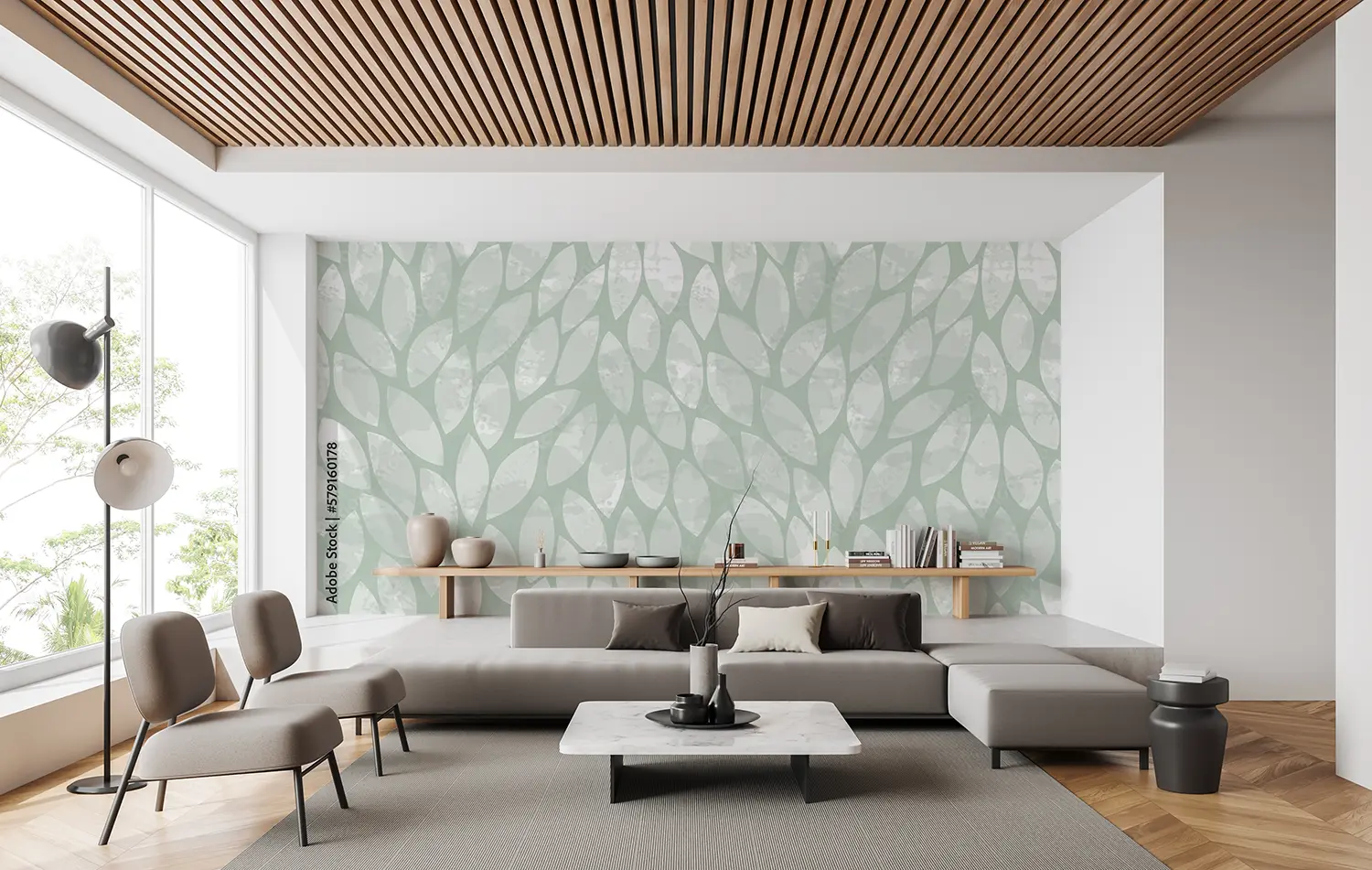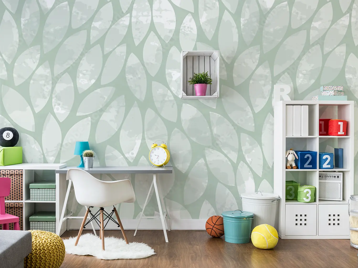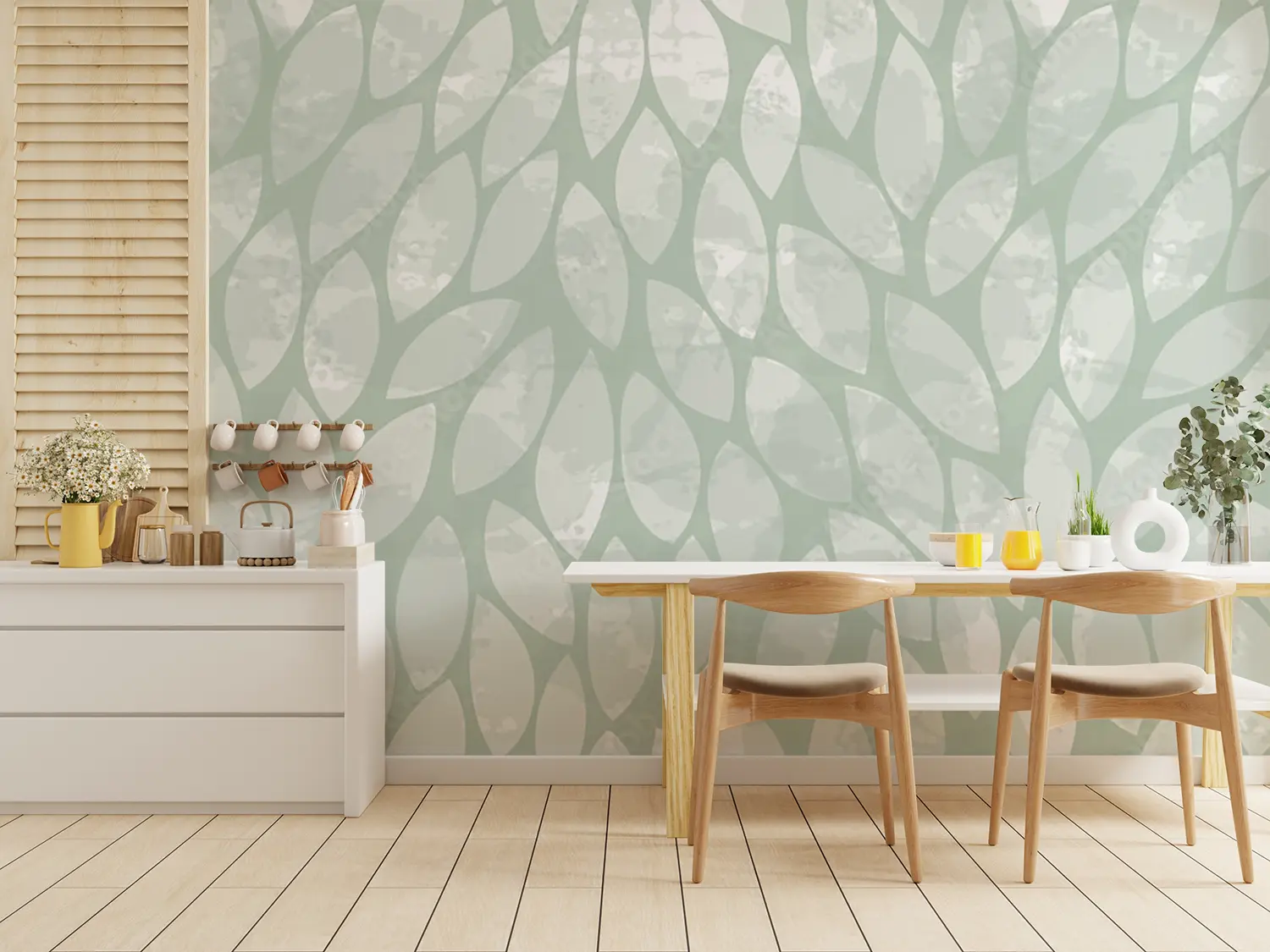 Elevate your home decor with this enchanting green and white wallpaper featuring a delicate pattern of leaves. The soothing color scheme and nature-inspired design create a calming and sophisticated ambiance in any room. Complementary colors to consider are soft greens, whites, and subtle grays to enhance the overall aesthetic appeal of your living space.