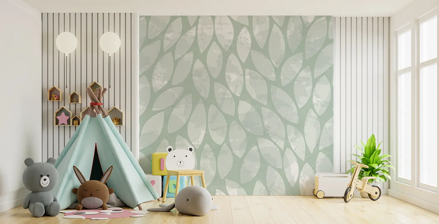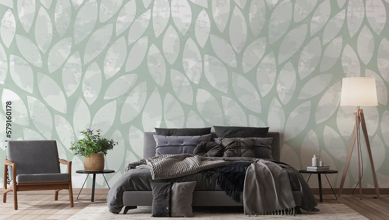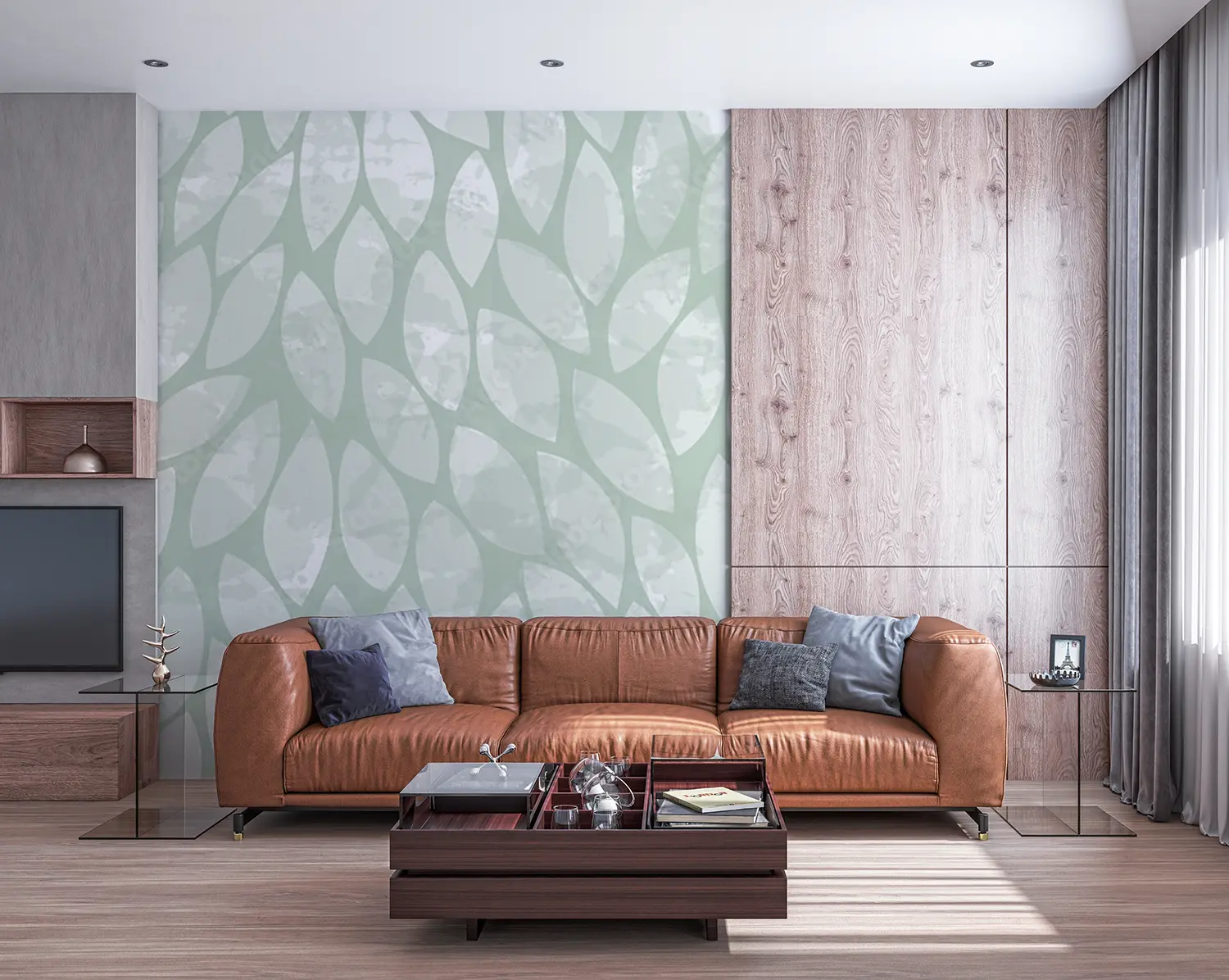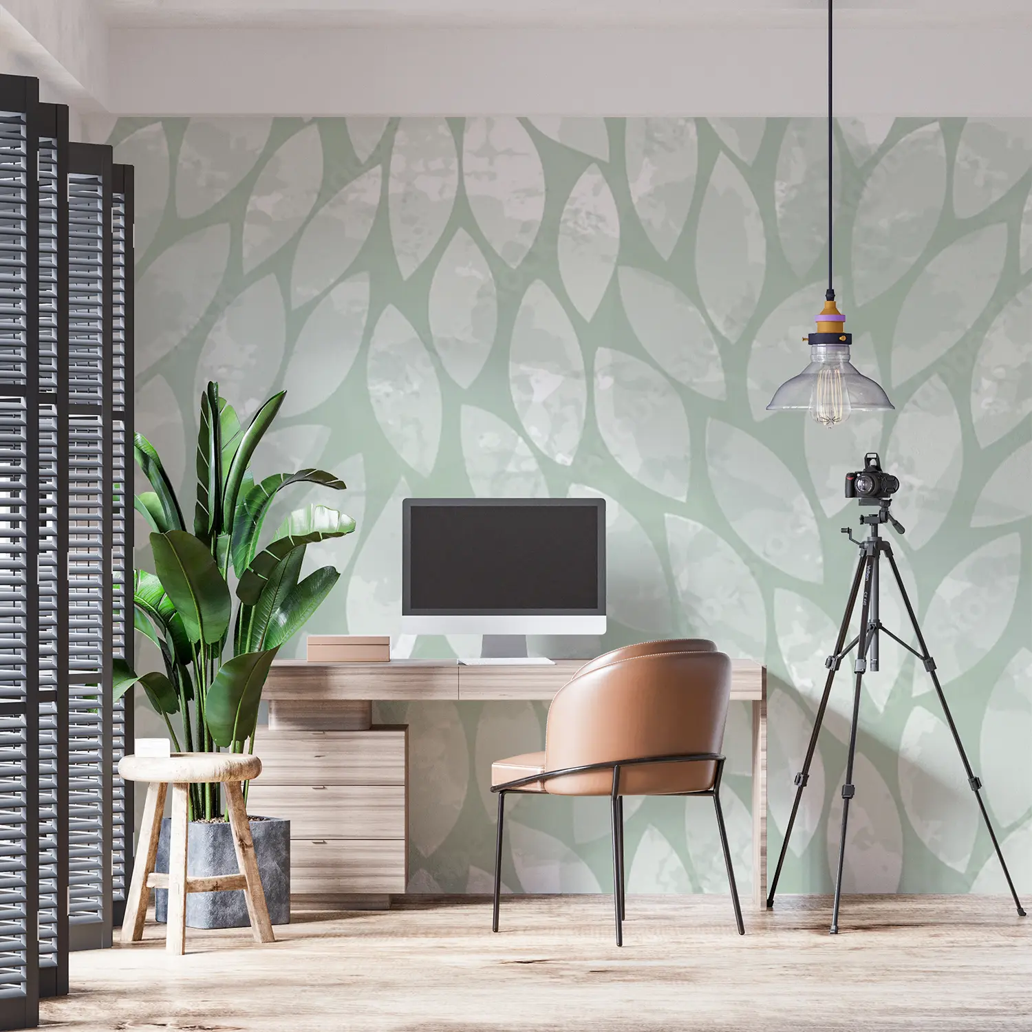 Elevate your home decor with this enchanting green and white wallpaper featuring a delicate pattern of leaves. The soothing color scheme and nature-inspired design create a calming and sophisticated ambiance in any room. Complementary colors to consider are soft greens, whites, and subtle grays to enhance the overall aesthetic appeal of your living space.