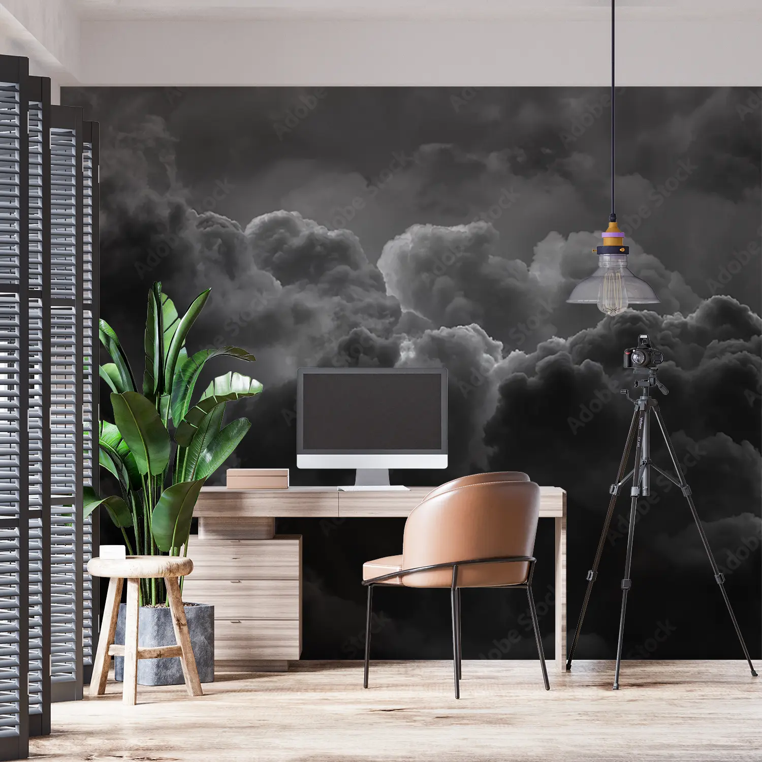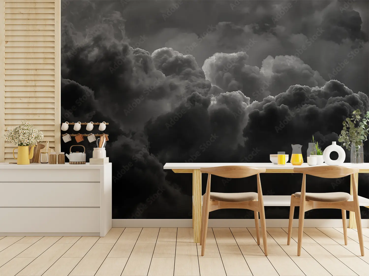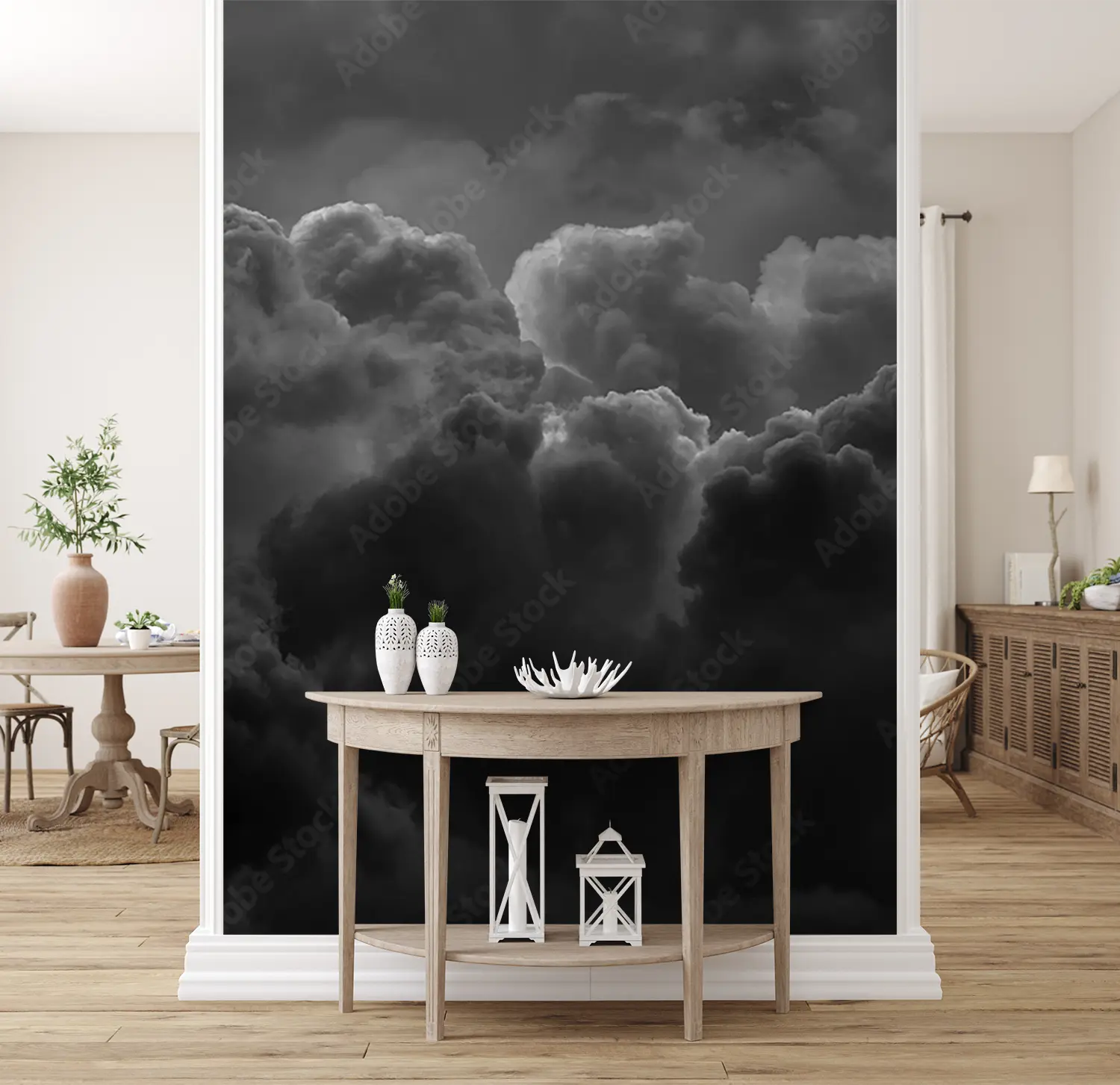 Elevate your home decor with this captivating black and white photo of a cloudy sky. The contrast of the dark clouds against the bright sky adds a dreamy and dramatic touch to any space. Complementary colors like shades of grey, black, and white will enhance the aesthetic appeal of this stunning wall art. Bring the beauty of nature indoors with this exquisite piece.