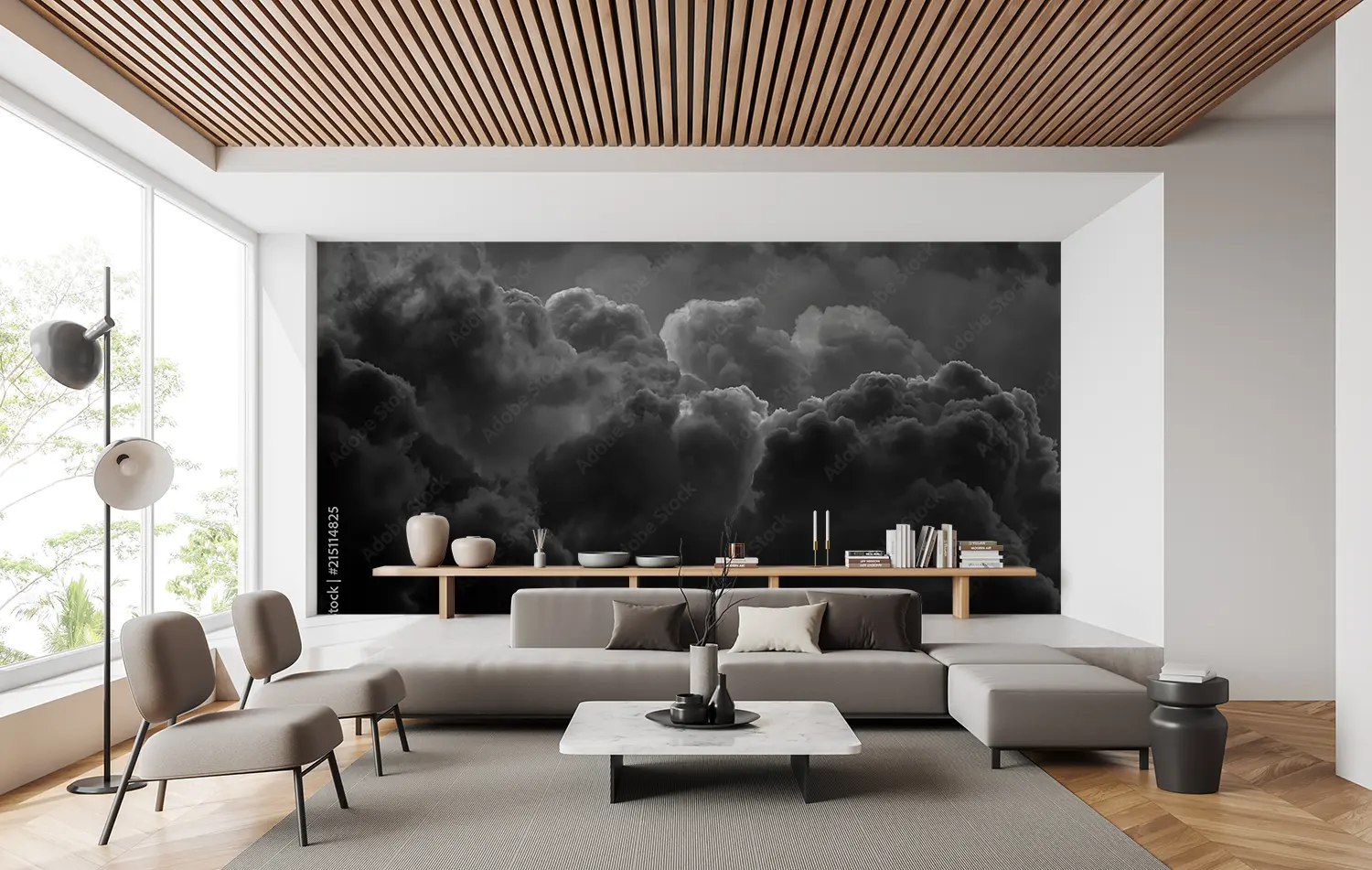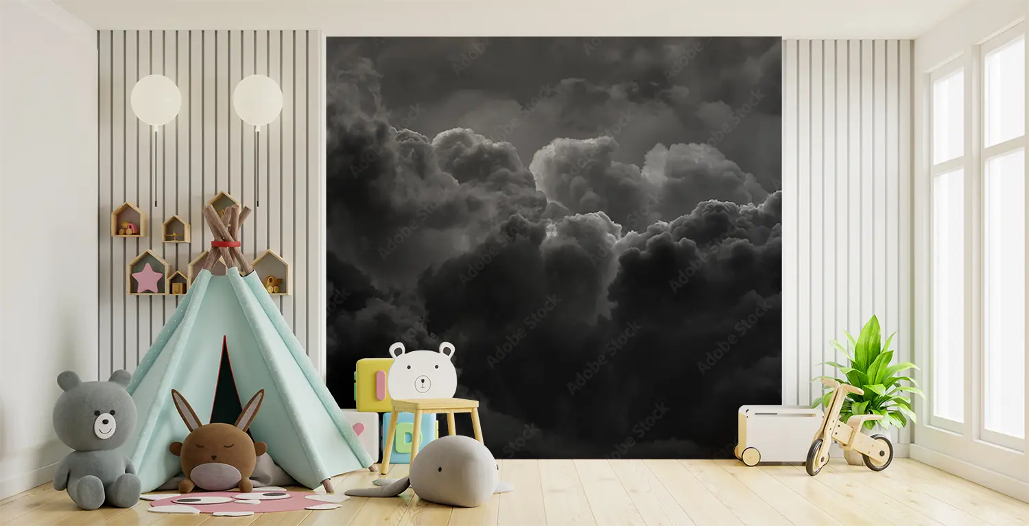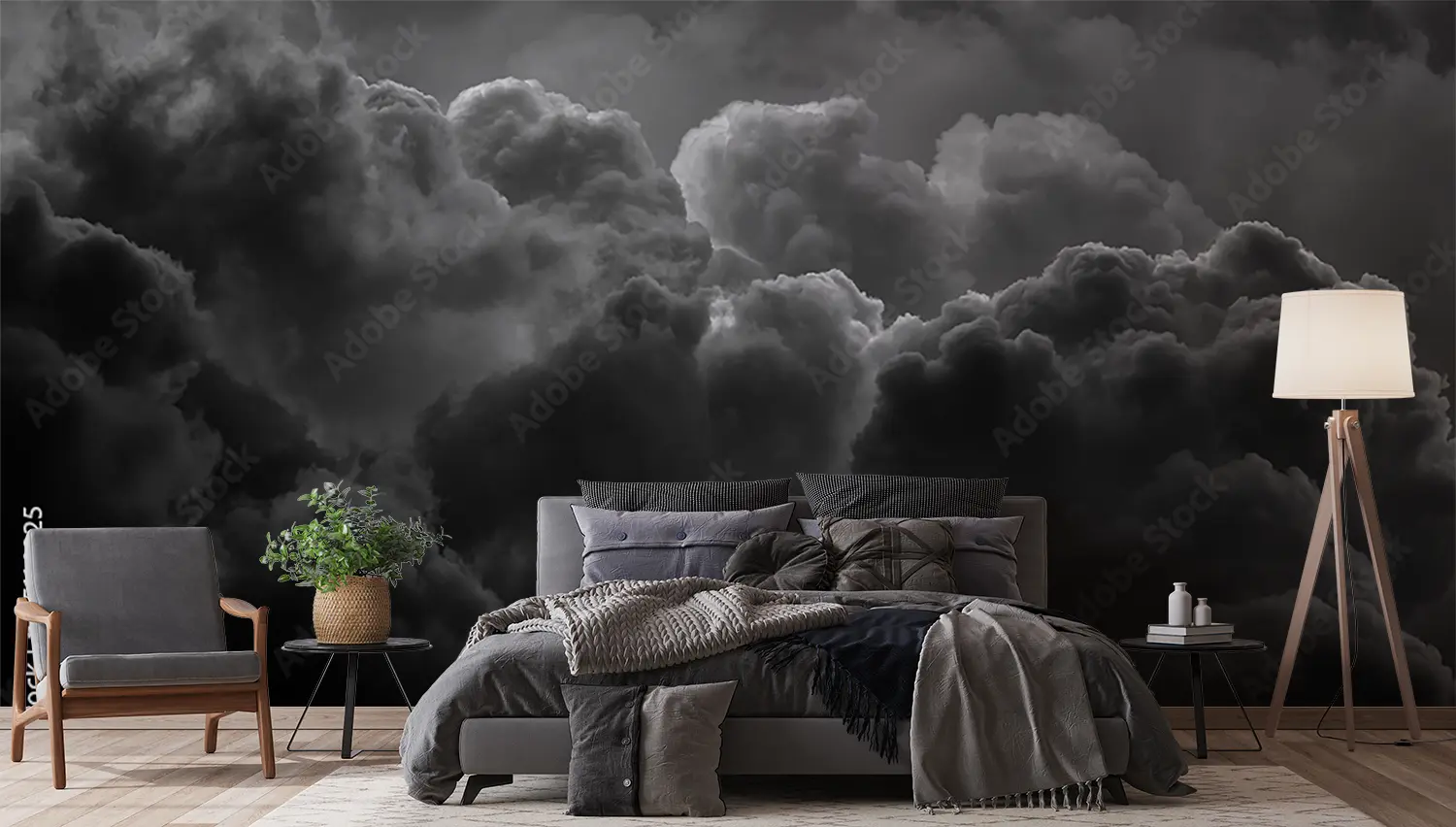Elevate your home decor with this captivating black and white photo of a cloudy sky. The contrast of the dark clouds against the bright sky adds a dreamy and dramatic touch to any space. Complementary colors like shades of grey, black, and white will enhance the aesthetic appeal of this stunning wall art. Bring the beauty of nature indoors with this exquisite piece.