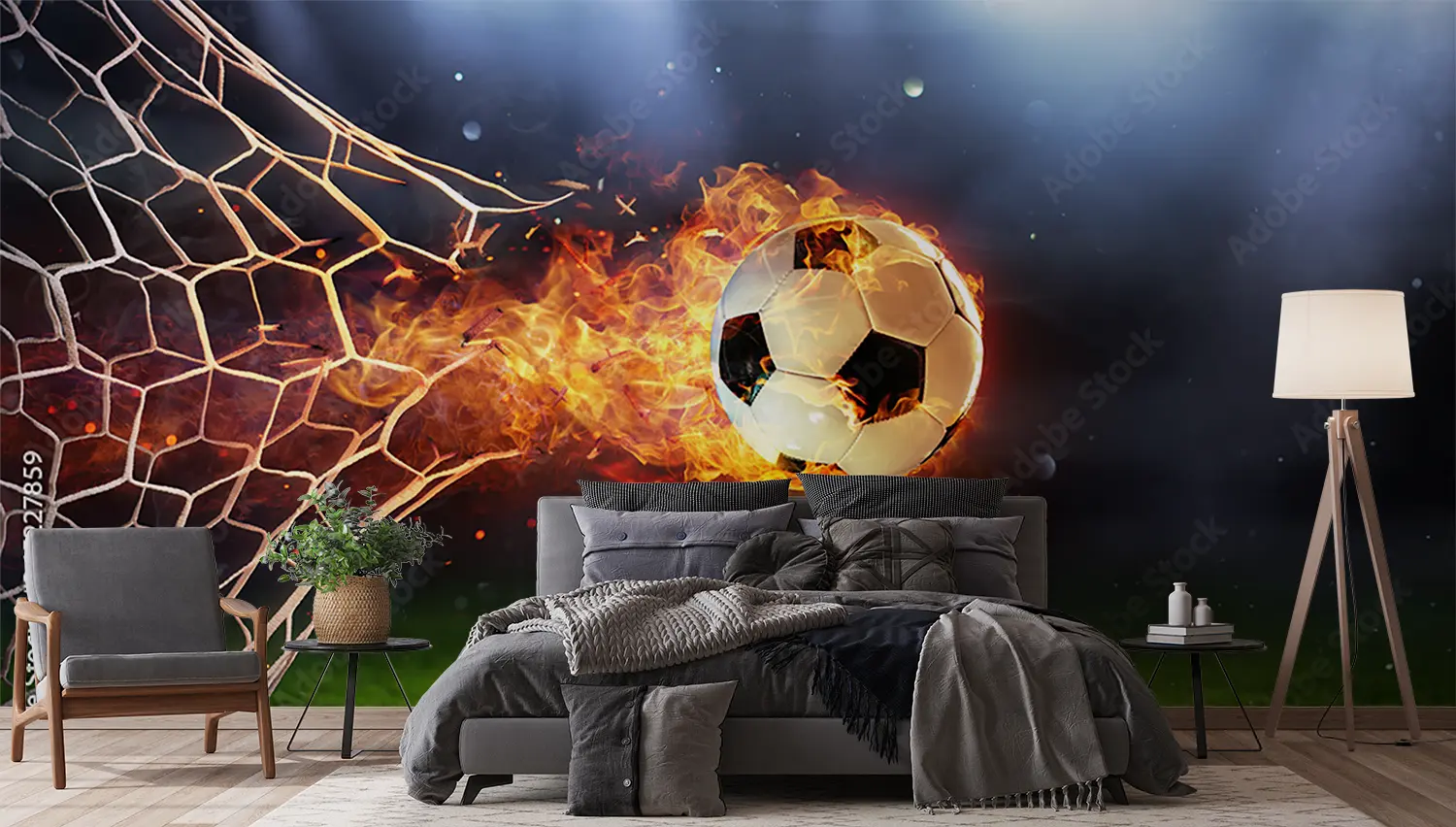 Elevate your home decor with this captivating wall art featuring a soccer ball engulfed in flames, adding a dynamic and energetic touch to any space. The vibrant colors of blue, green, and warm tones will complement the fiery theme, creating a striking focal point that will surely impress any sports enthusiast or art lover.