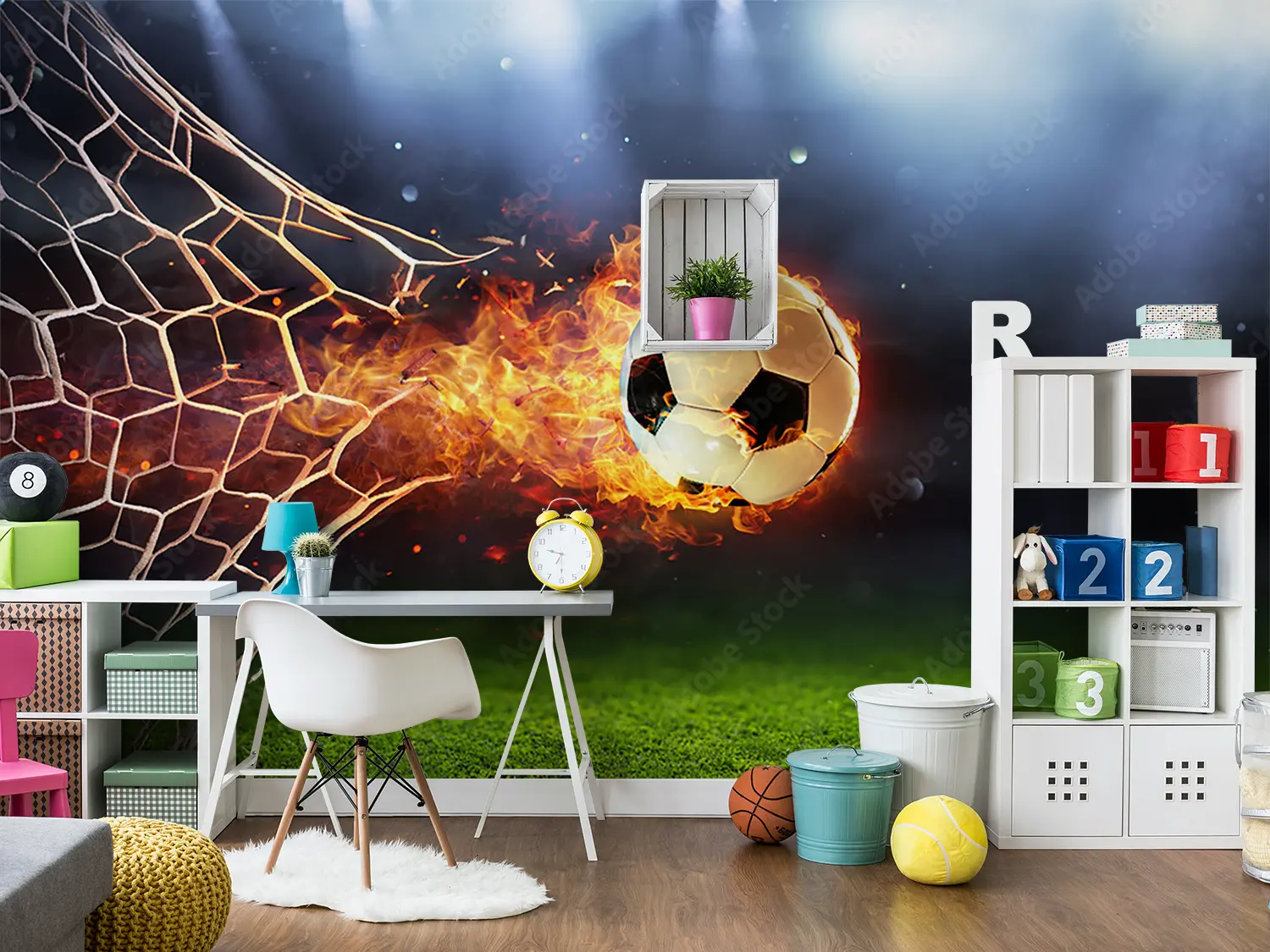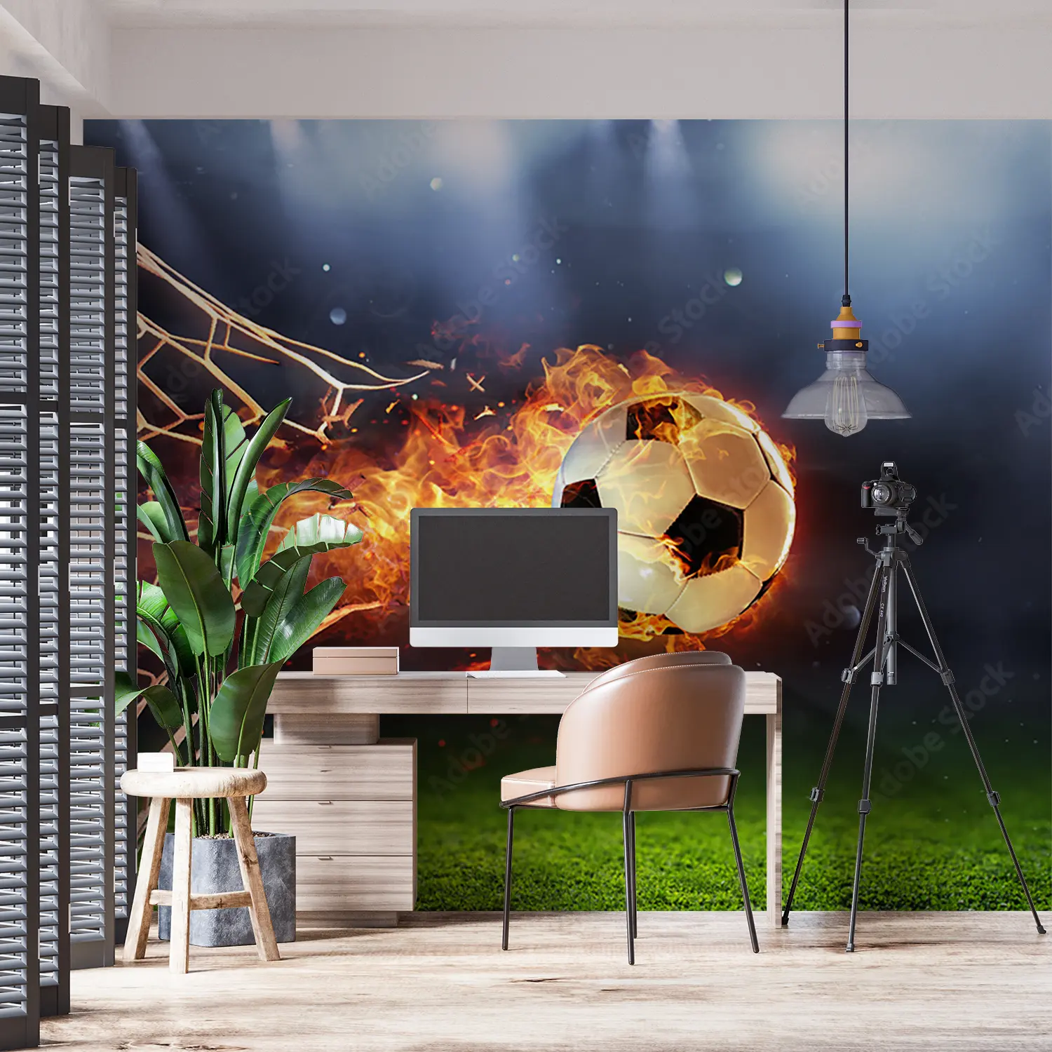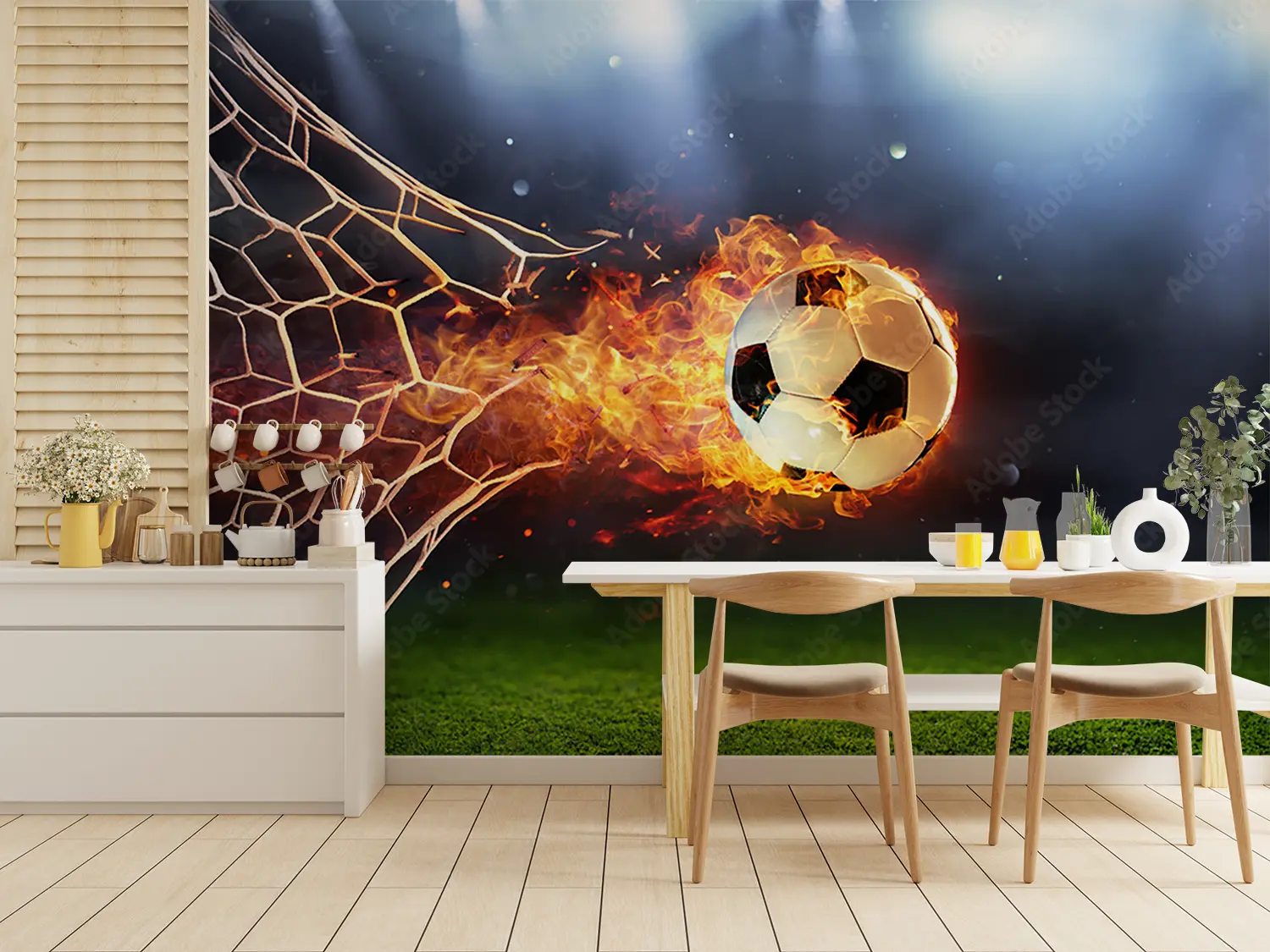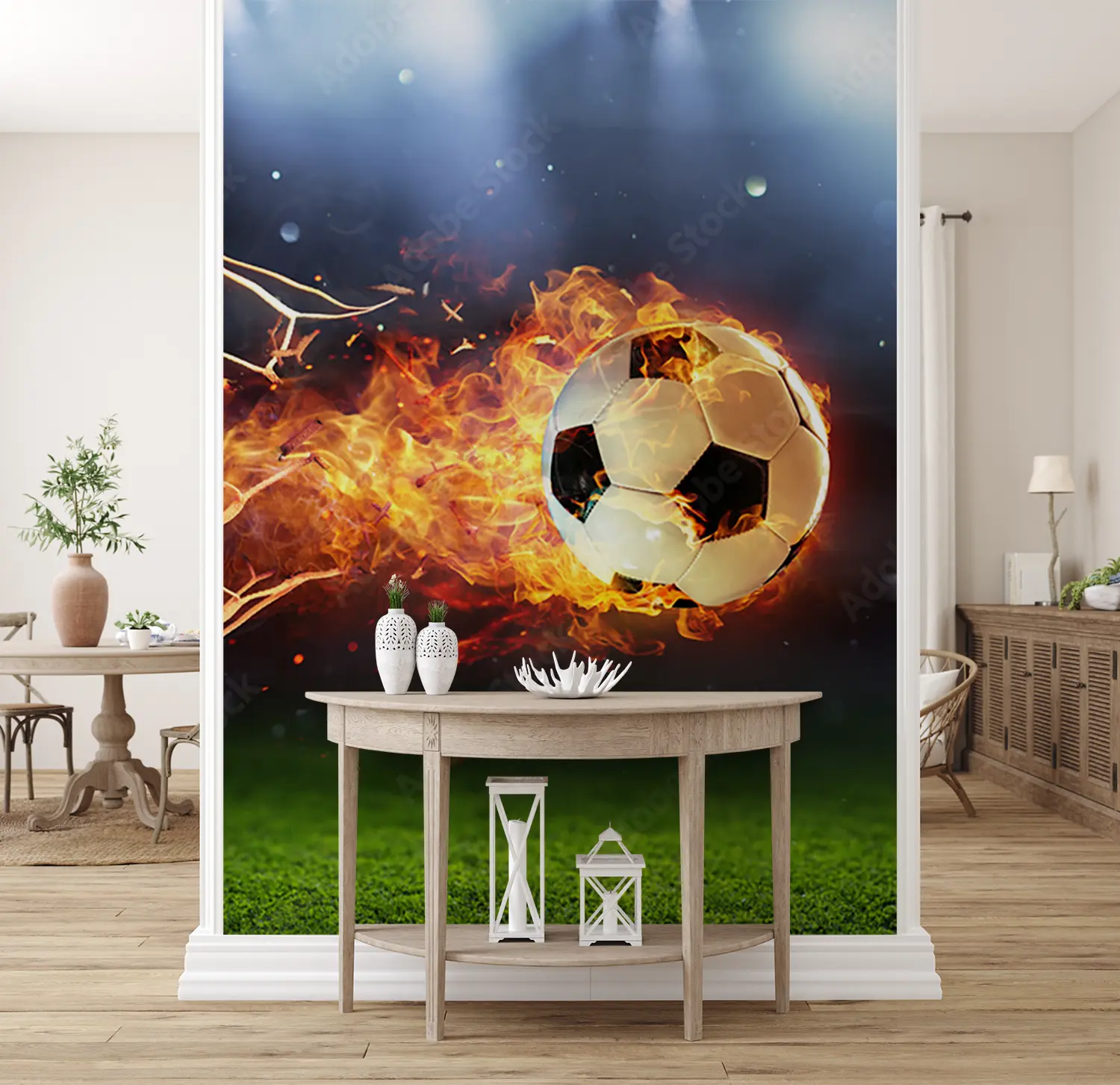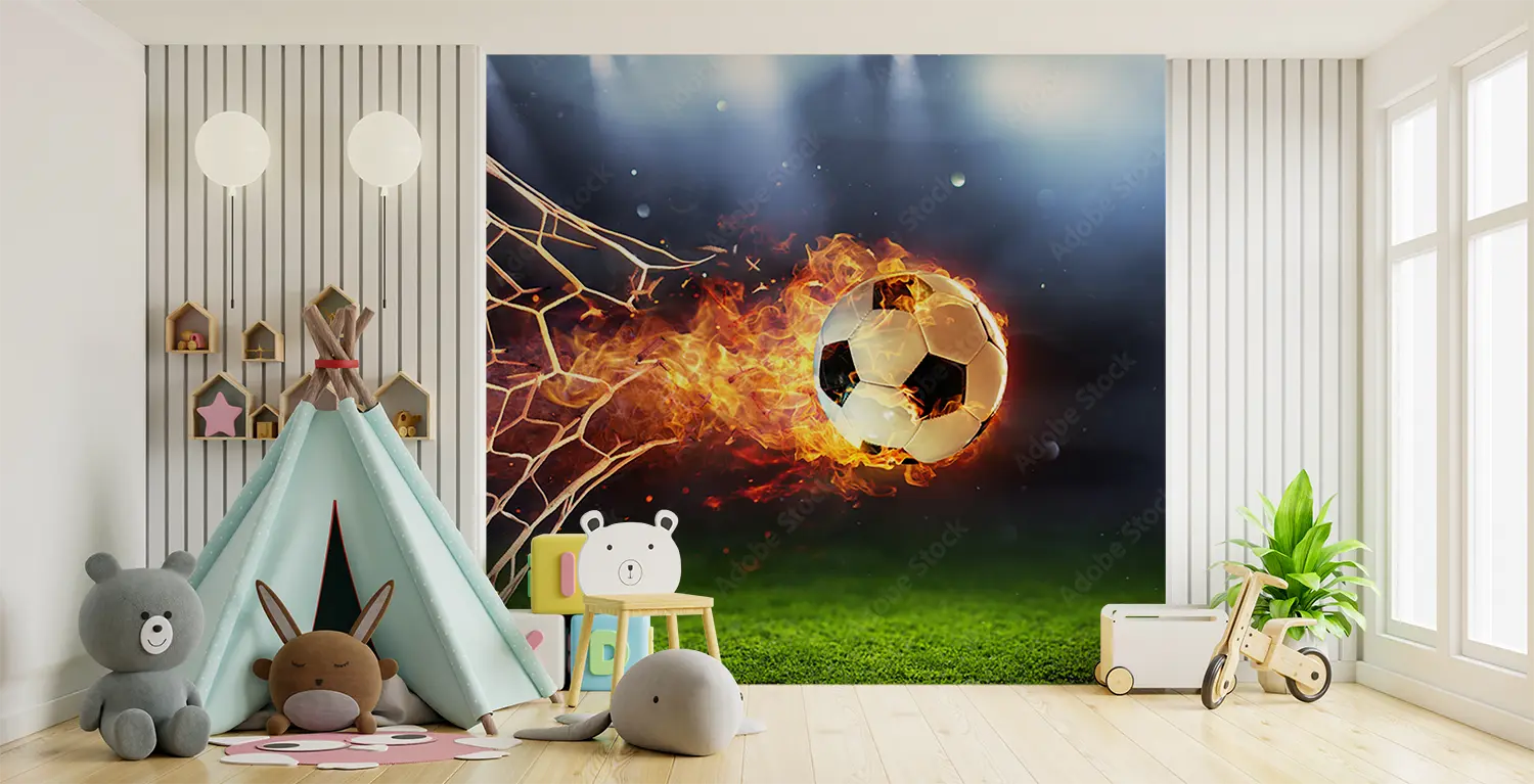Fiery Soccer Ball Wall Art Decor