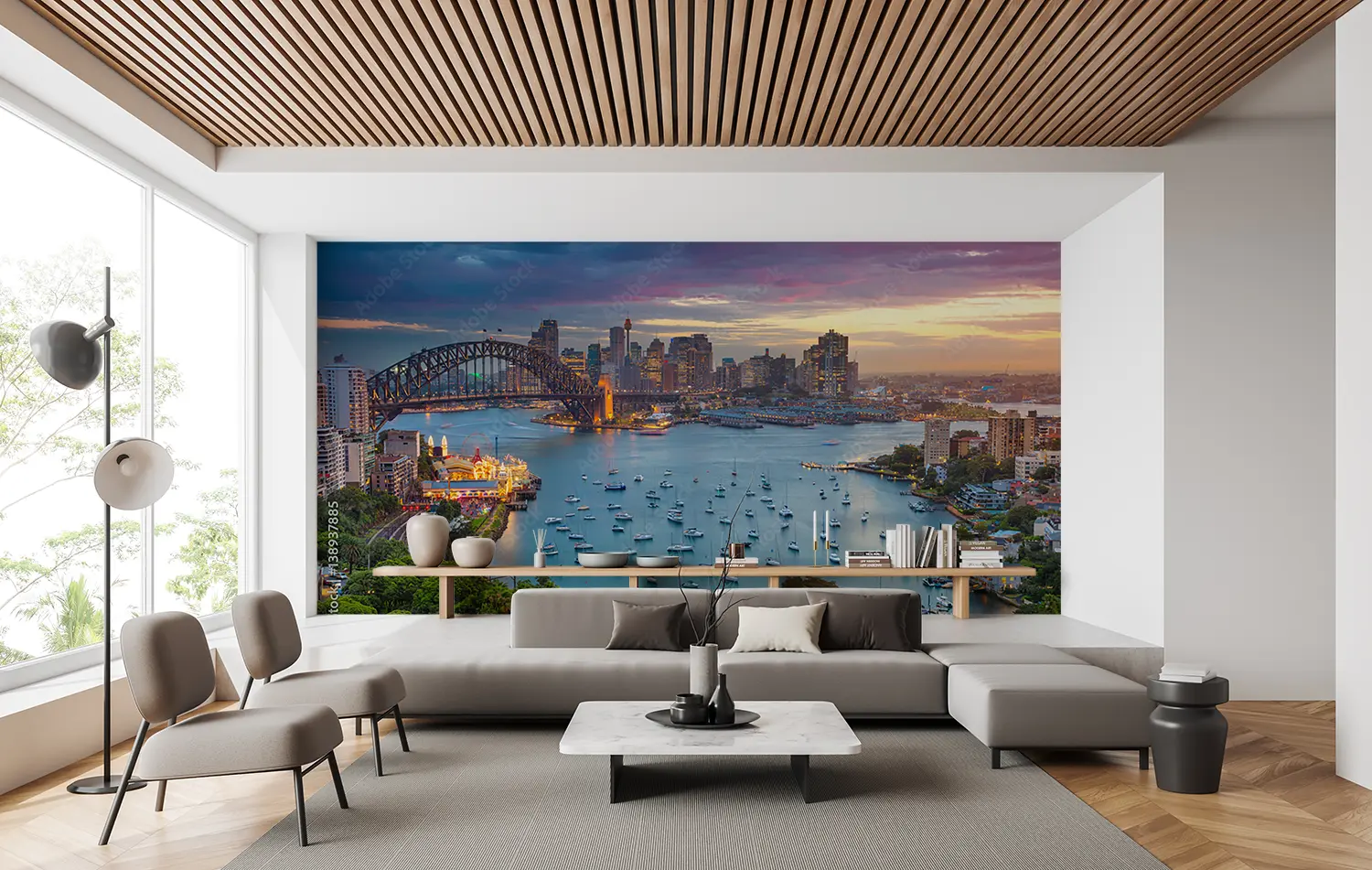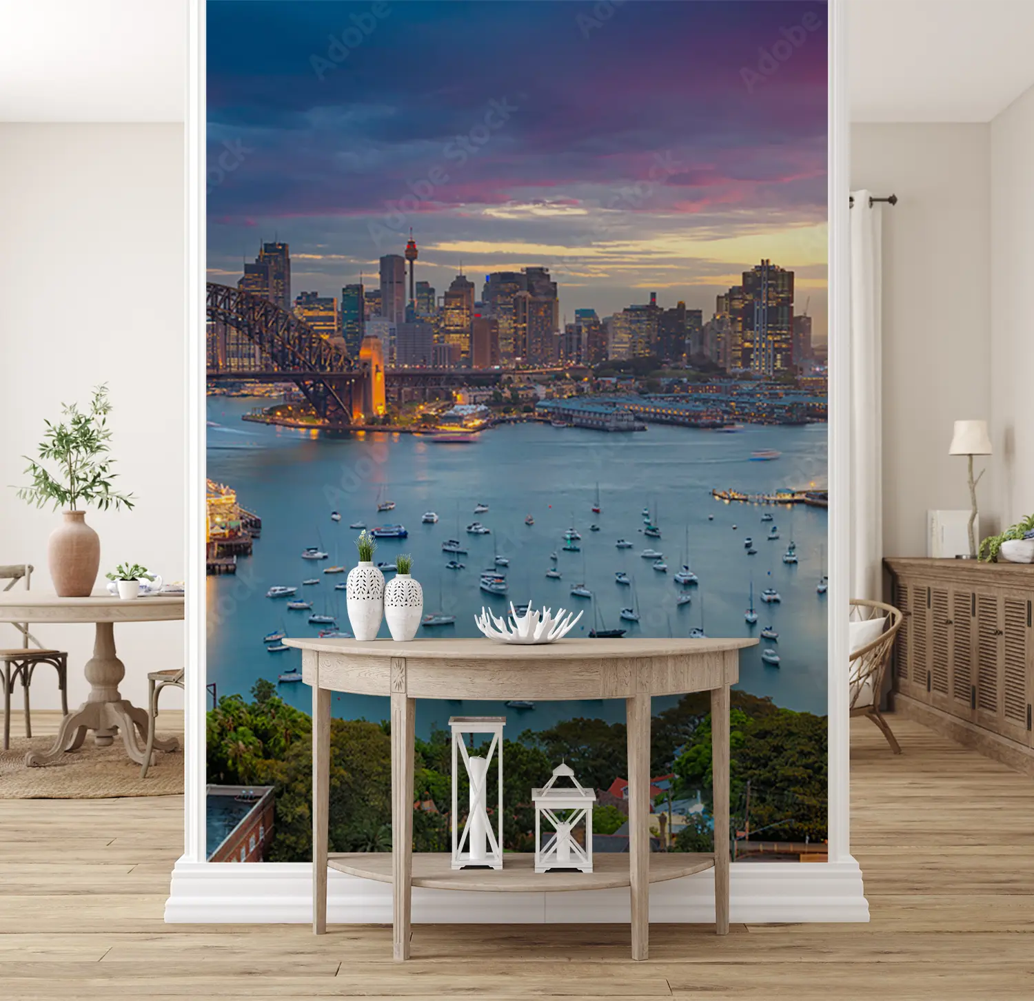 Transform your space with the serene beauty of a harbor view wall art. This captivating scene features boats gently floating on calm waters, perfect for enhancing your home decor with a touch of coastal charm. Complementary colors include shades of blue, grey, and sandy beige to create a relaxing and inviting atmosphere in any room.