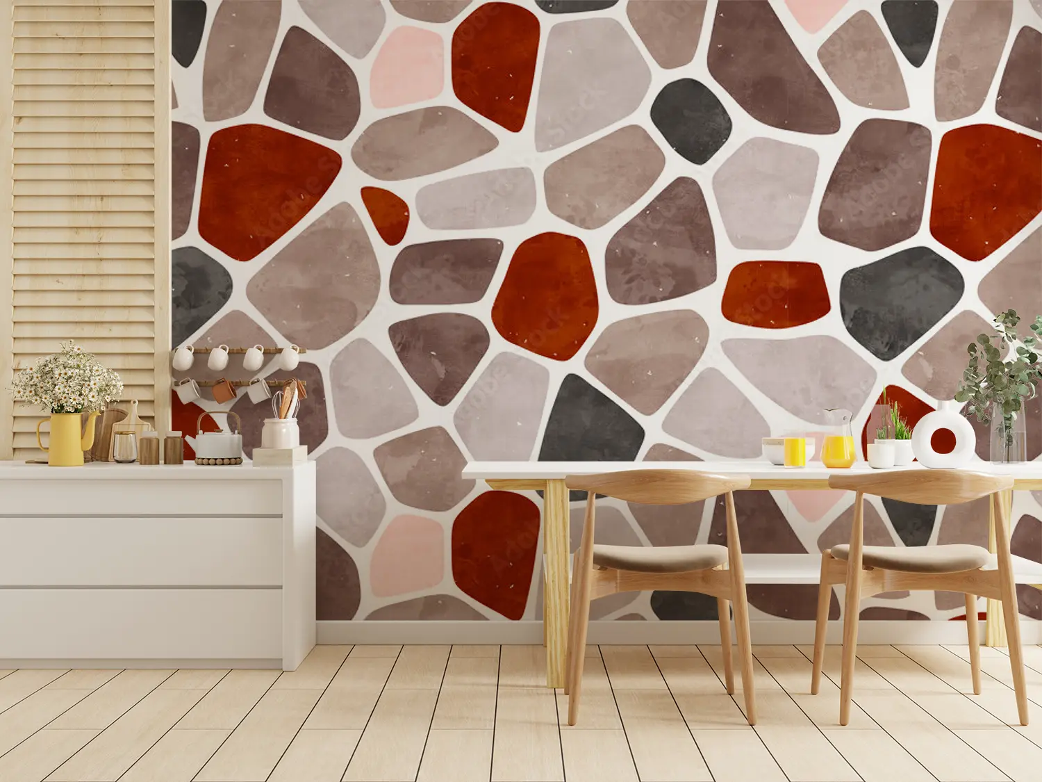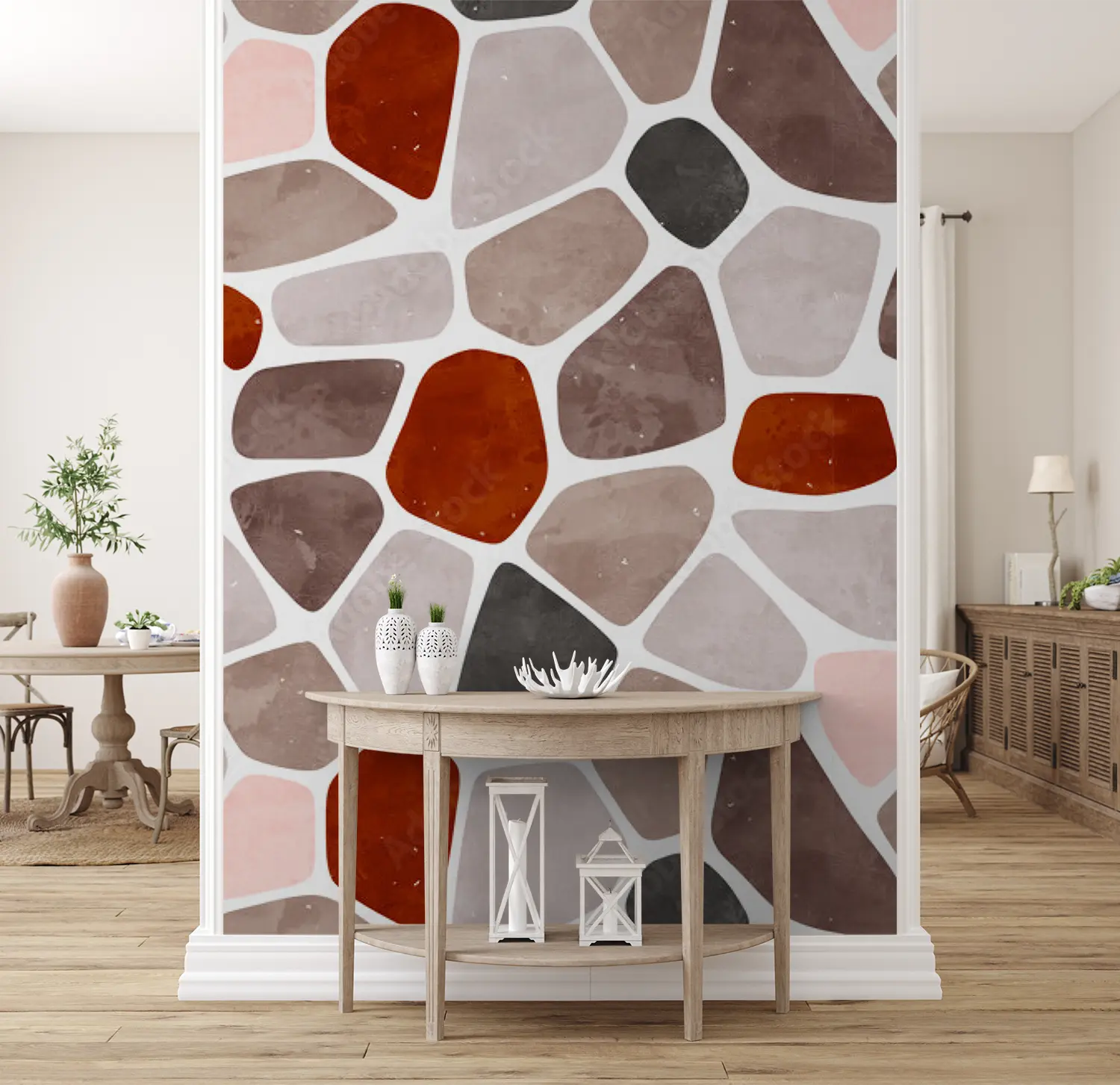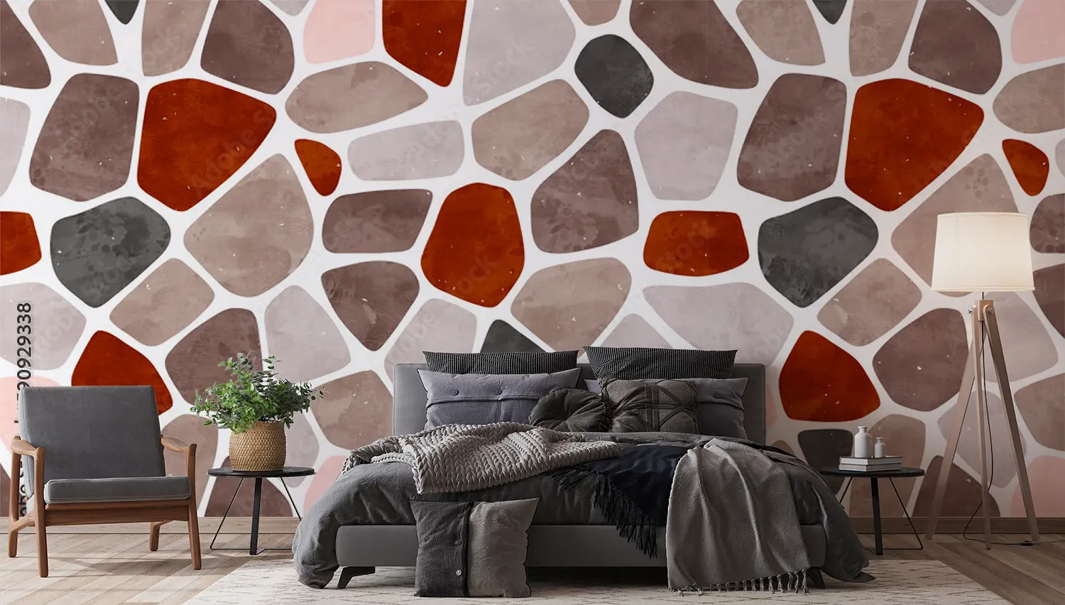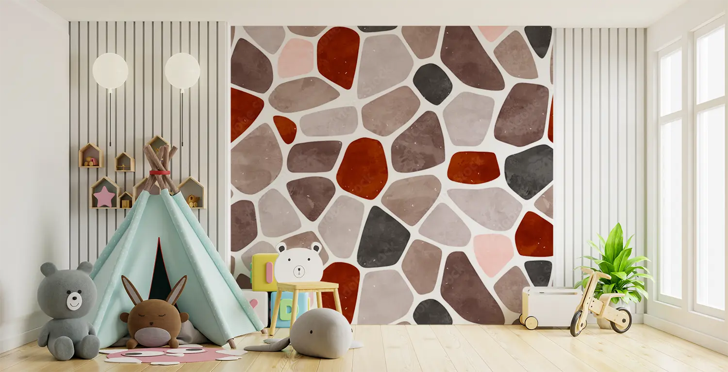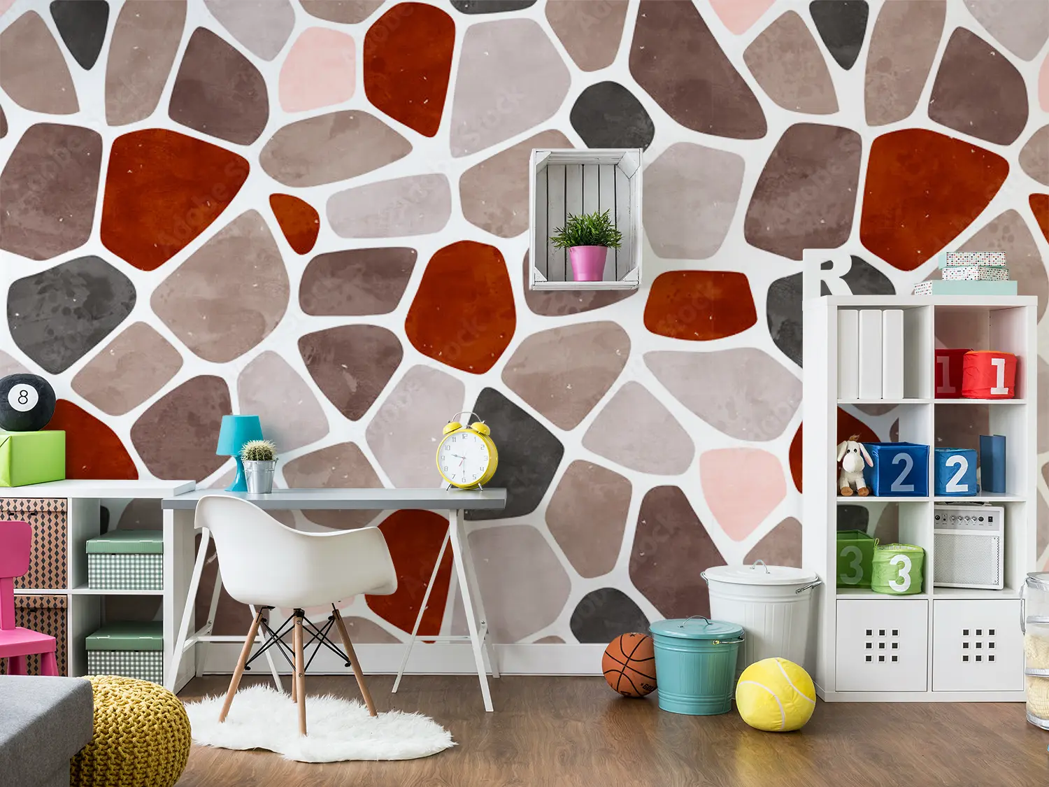 Elevate your home decor with a captivating wall design featuring a beautiful pattern of hearts on a crisp white background. This eye-catching mural adds a touch of whimsy and romance to any space. Complementary colors to consider incorporating include soft browns, warm whites, and subtle shades of red to enhance the overall aesthetic appeal of your room.