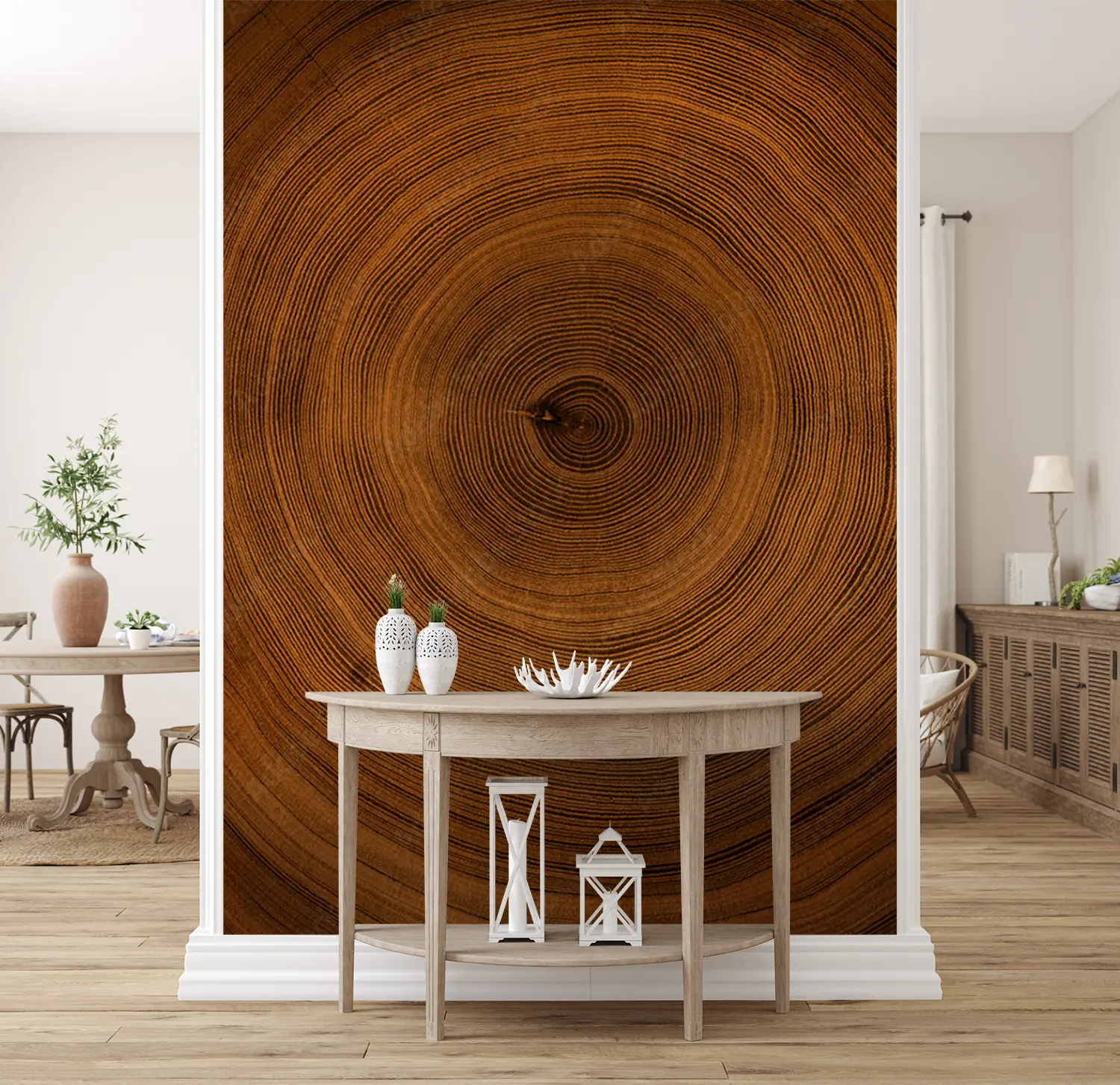 Elevate your home decor with this stunning circular wood pattern wall art. The intricate design adds a touch of nature's beauty to any space, creating a warm and inviting atmosphere. The rich earthy tones of brown and orange will complement a variety of interior color schemes, bringing a cozy and stylish look to your walls.