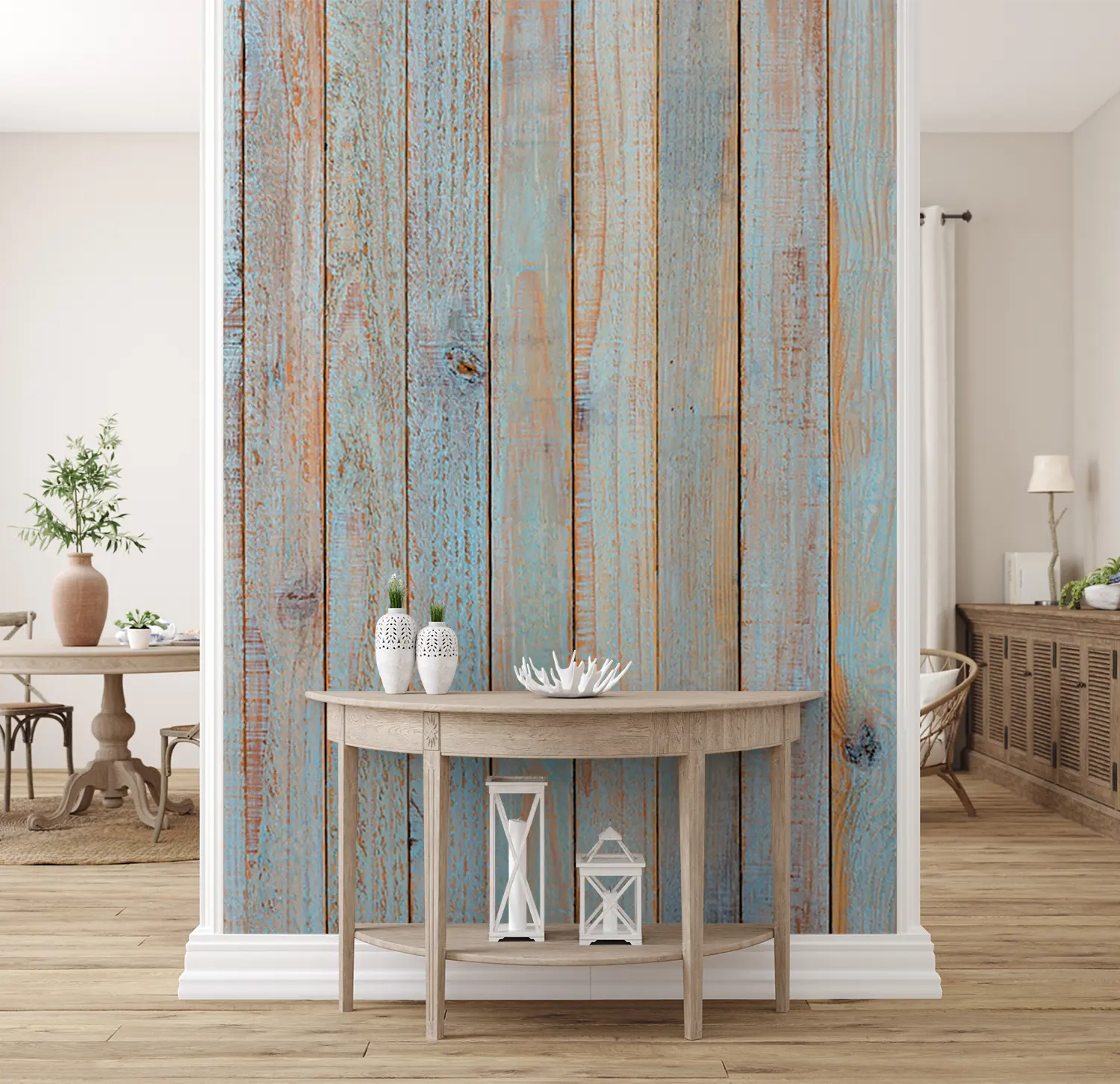 Elevate your home decor with this stunning rustic wood wall featuring a captivating blend of blue and brown hues. The intricate pattern and textured finish add a touch of warmth and charm to any space. Complementary colors like soft whites, earthy greens, and warm yellows will further enhance the aesthetic appeal of this unique piece.