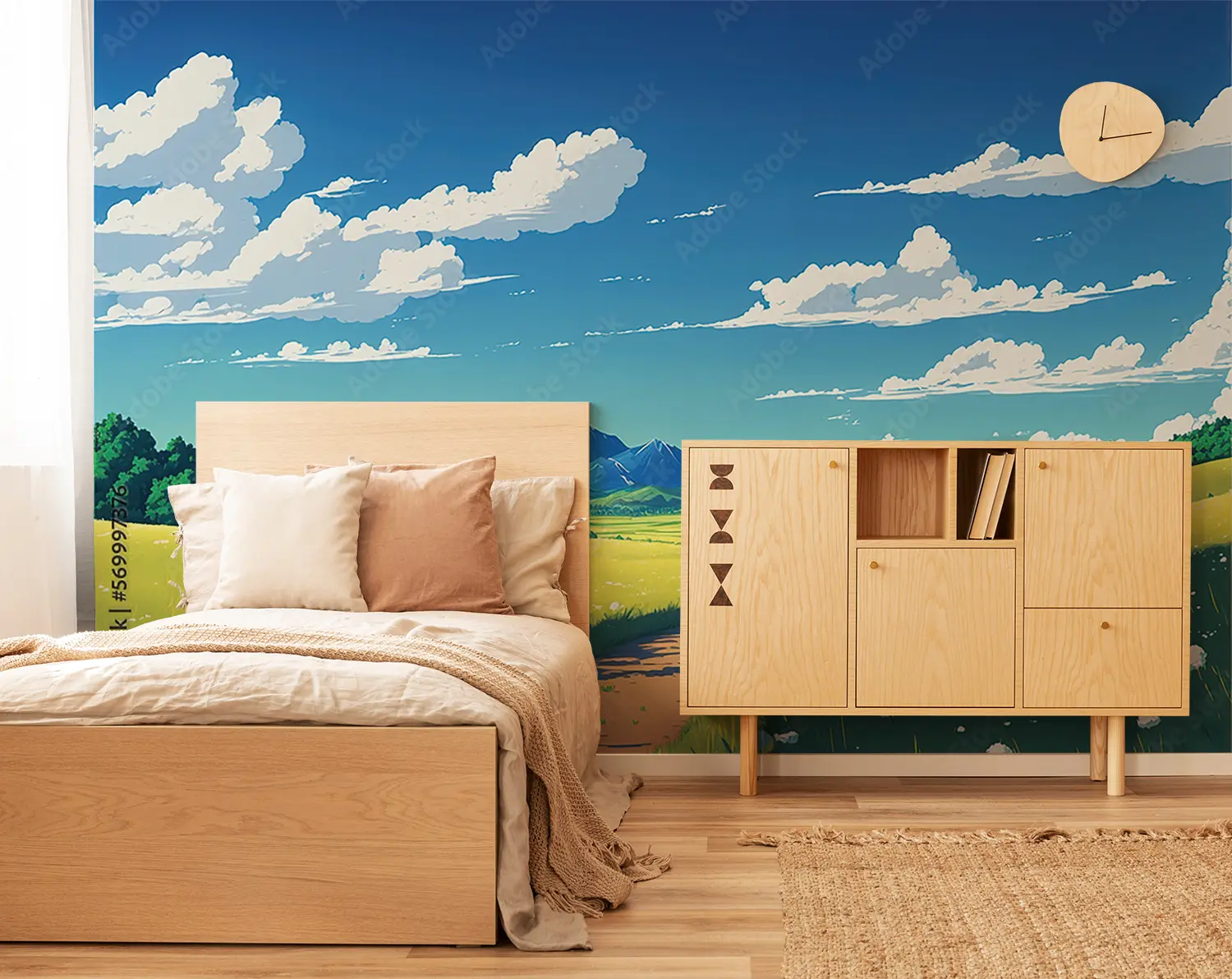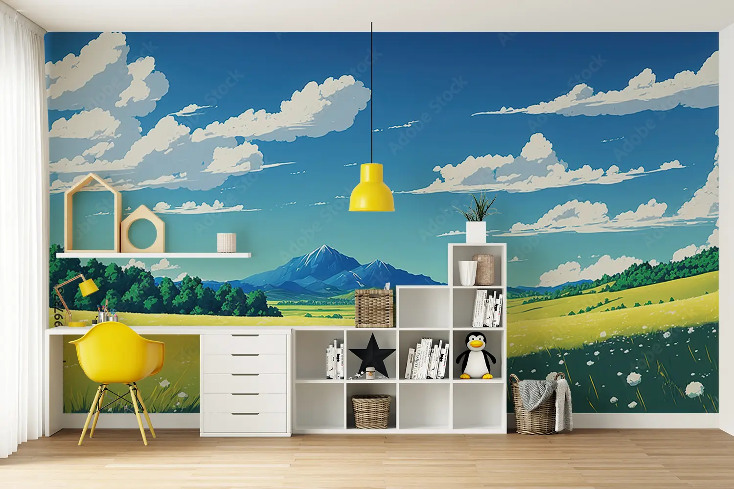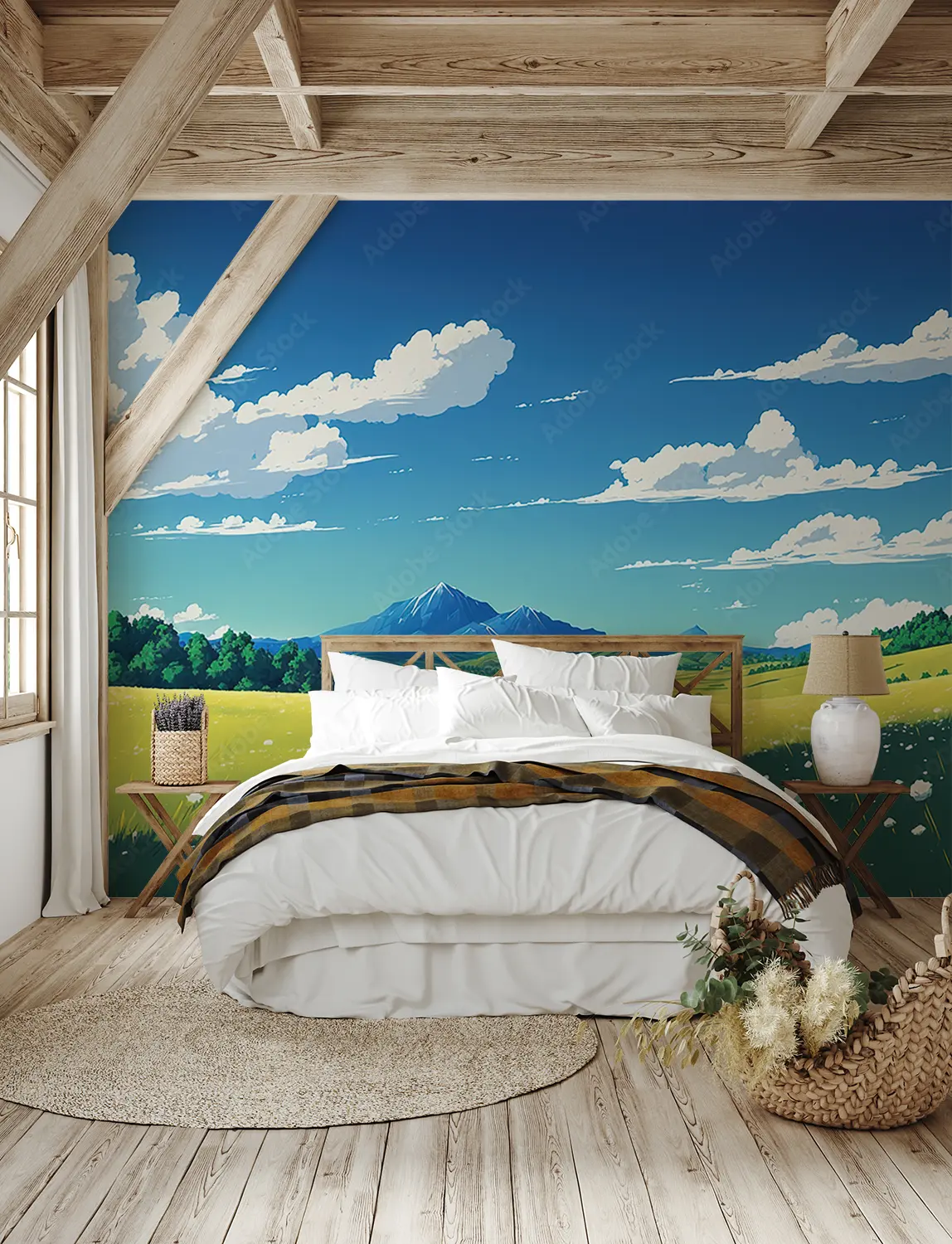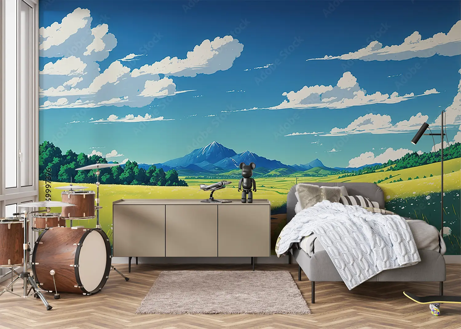 Transform your space with this captivating wall art featuring a picturesque scene of a road winding through a lush green field with a majestic mountain backdrop. Enhance your home decor with this serene and visually stunning piece. Complementary colors to consider are shades of blue, green, and earth tones to bring out the beauty of the landscape.