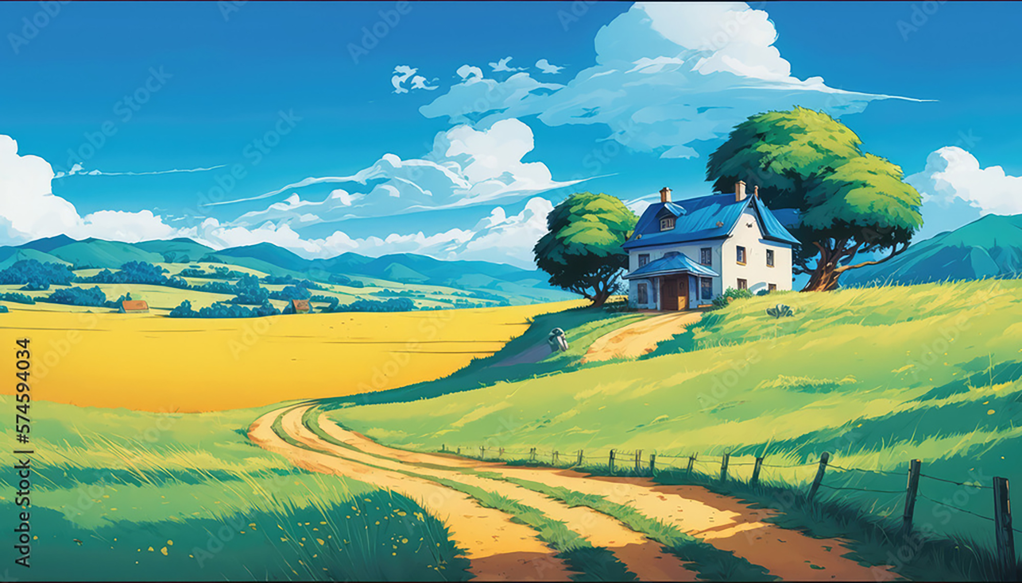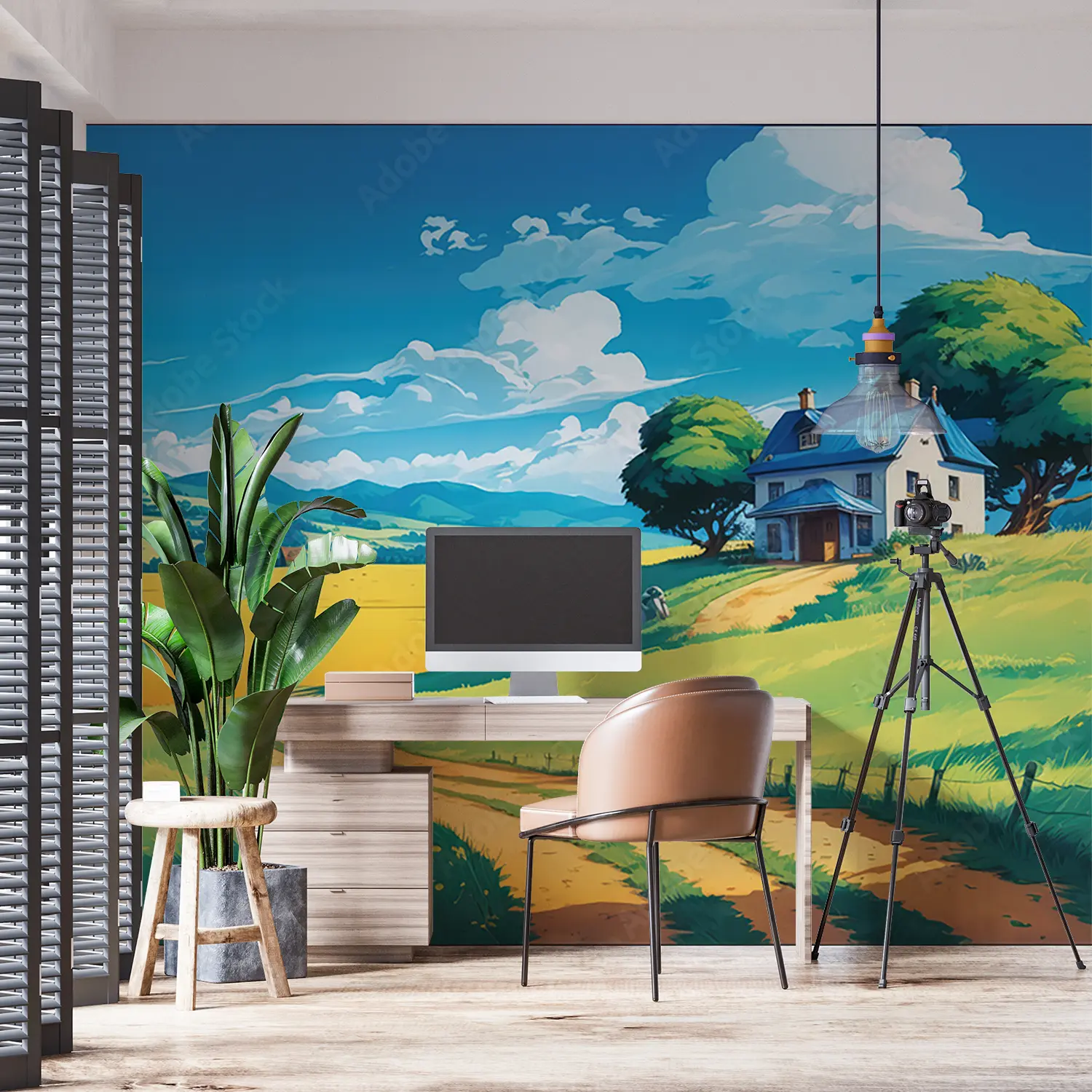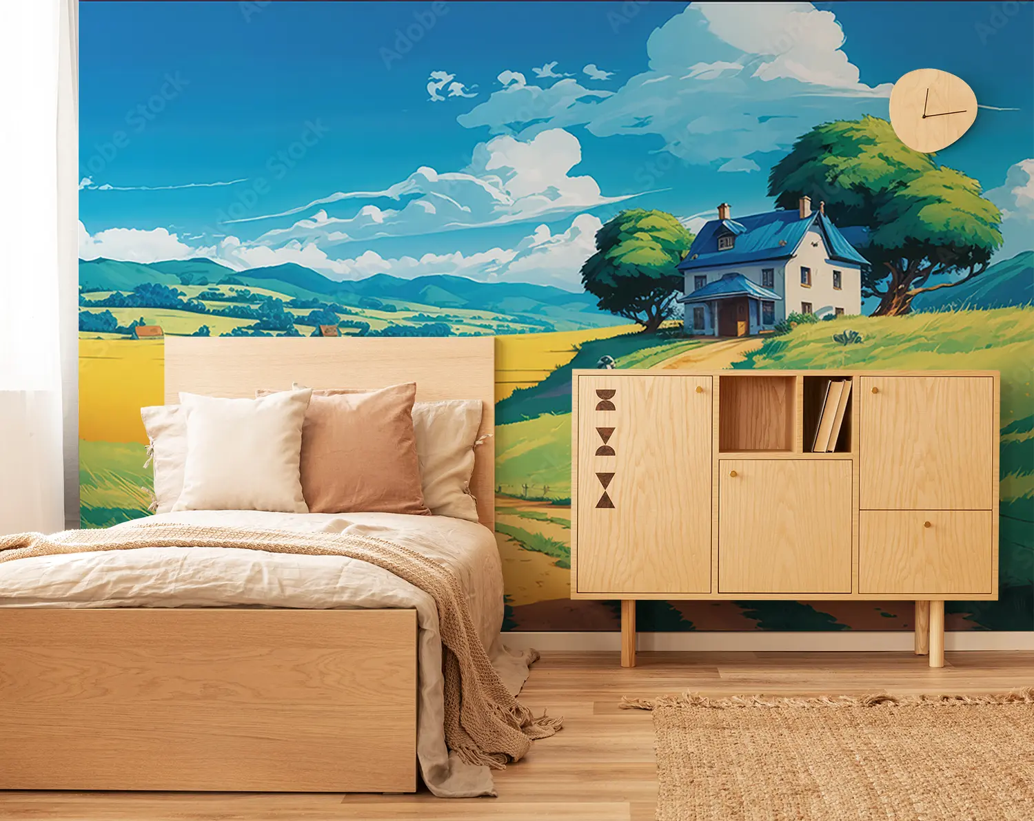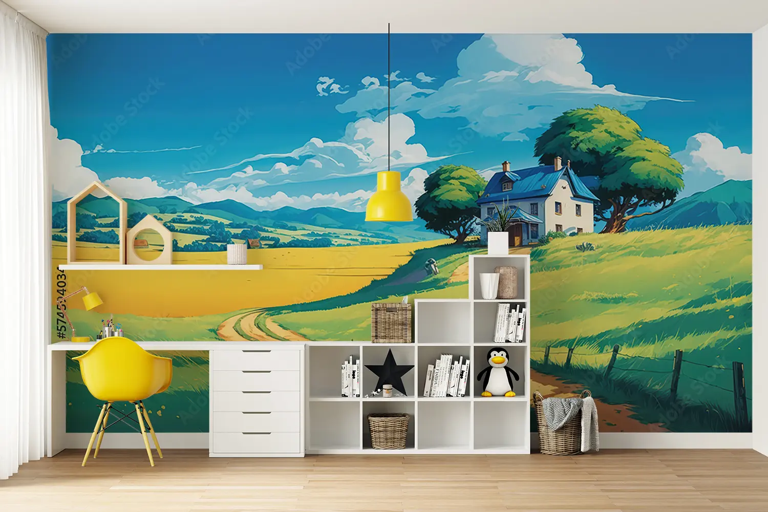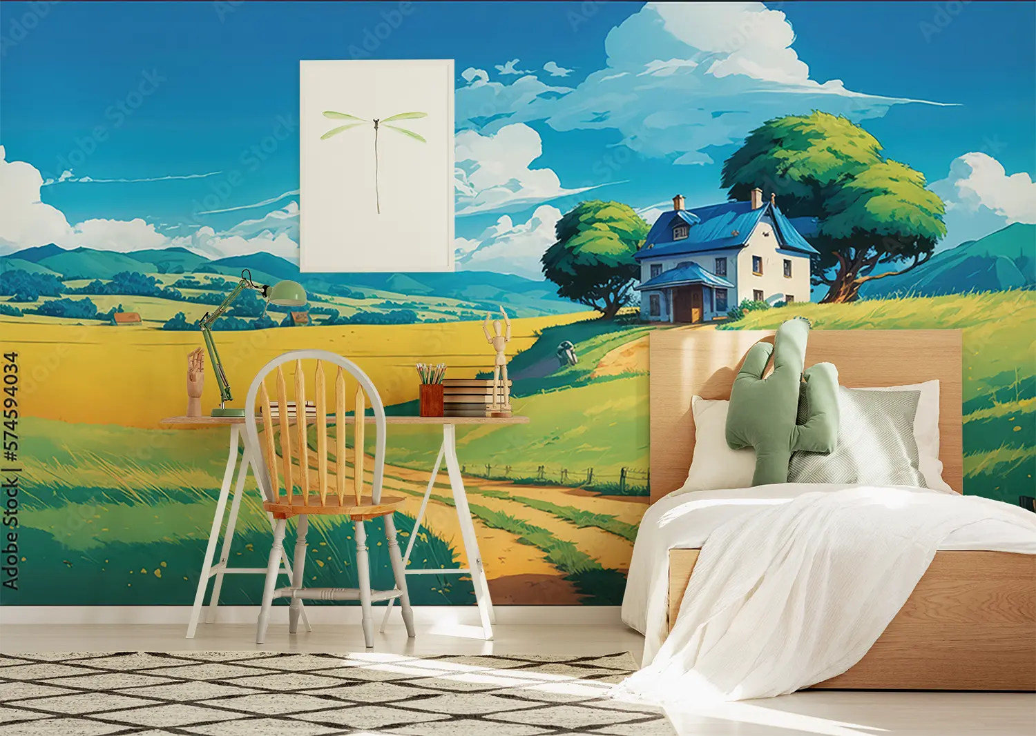 Transform your space with the tranquil beauty of a country road leading to a charming house. This wall art captures the essence of rural landscapes, making it a perfect addition to any home decor. The warm colors of yellow, blue, and green will complement your existing design scheme, creating a cozy and inviting atmosphere in your living space.