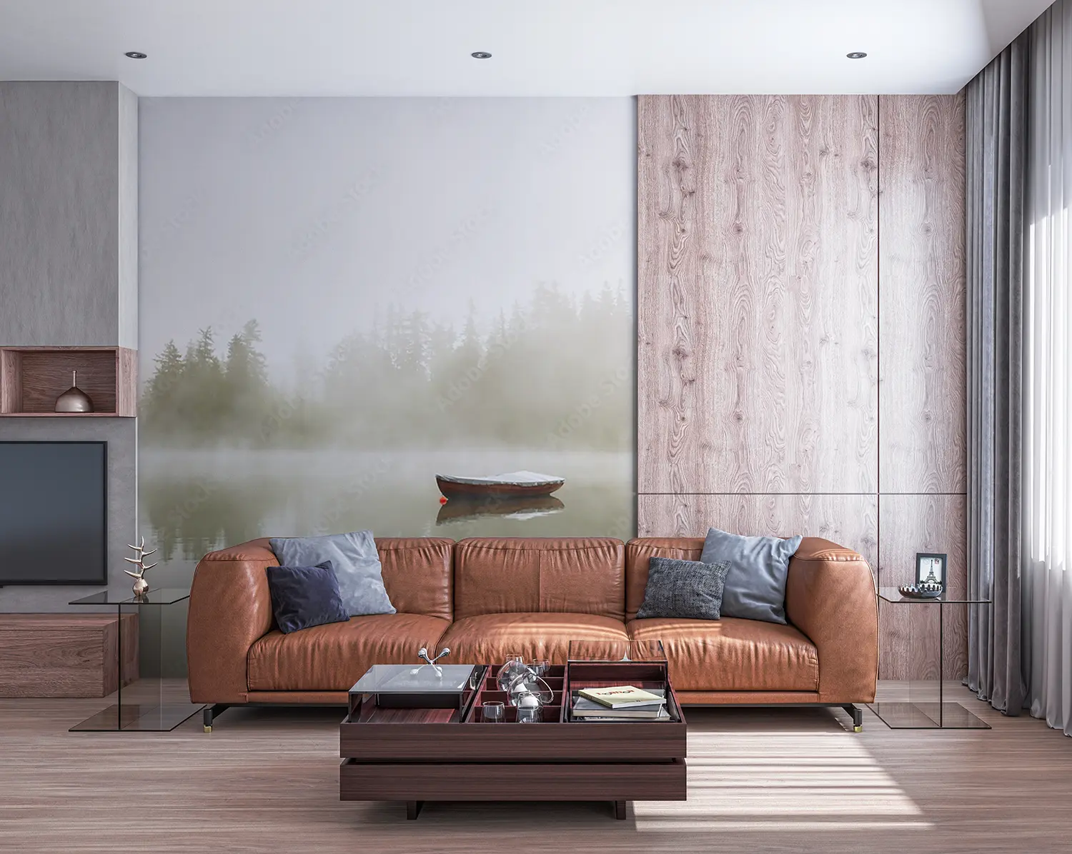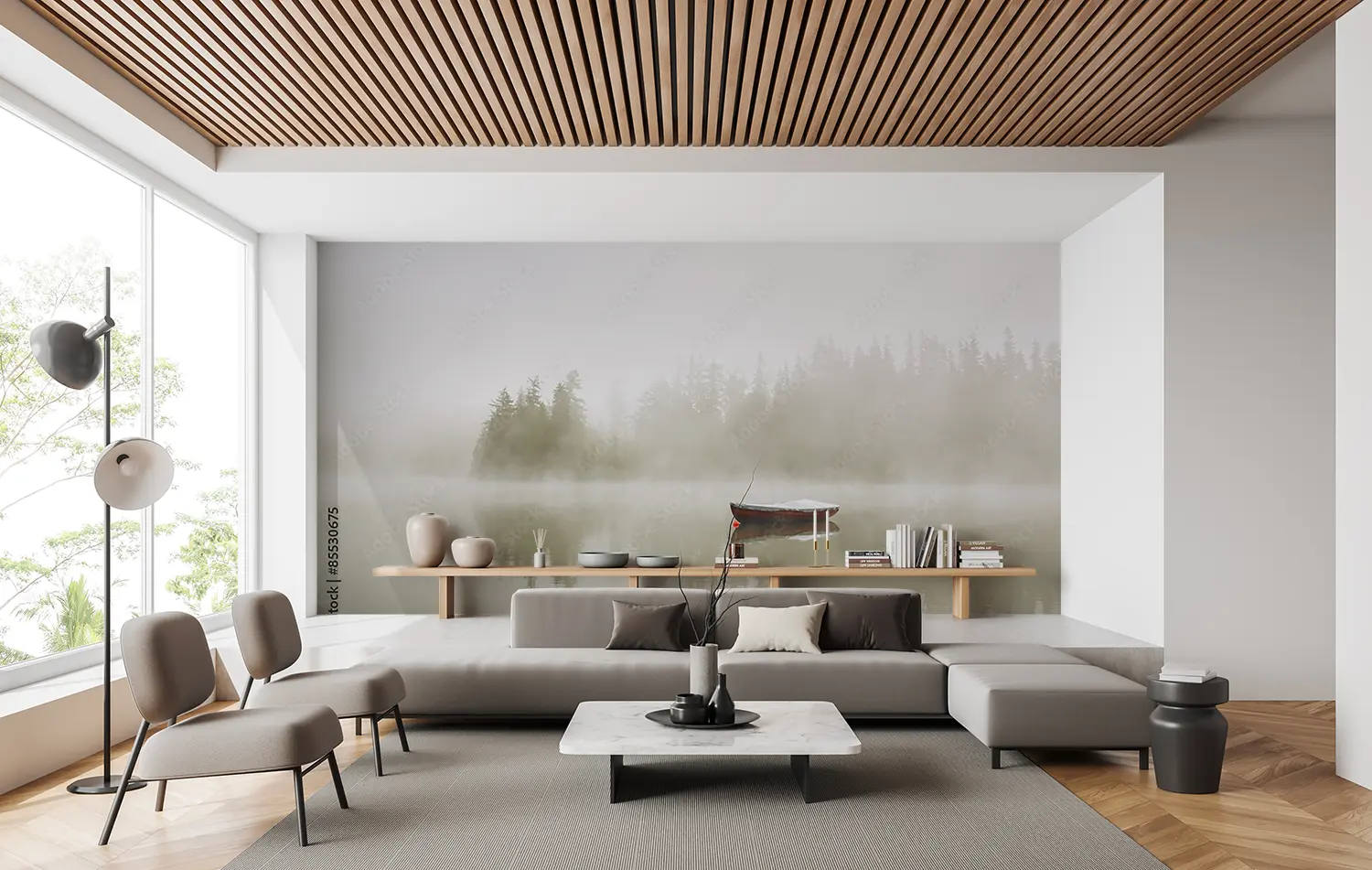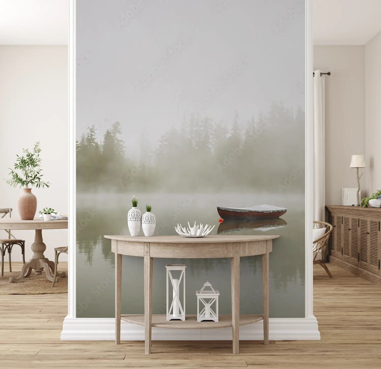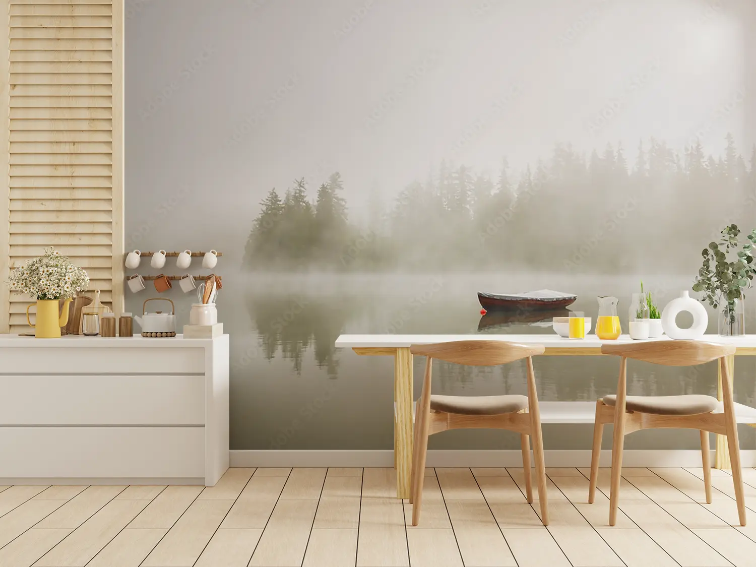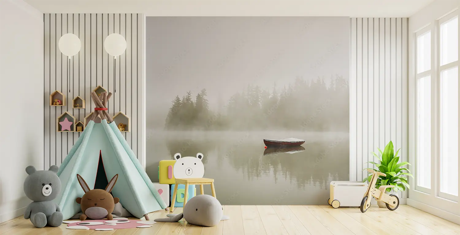 Transform your space with the serene beauty of a boat floating on a misty lake. This captivating wall art captures the tranquility of nature, perfect for enhancing your home decor with a touch of peaceful elegance. Complementary colors to consider are soft greys, muted blues, and earthy greens to complement the soothing atmosphere of the scene.