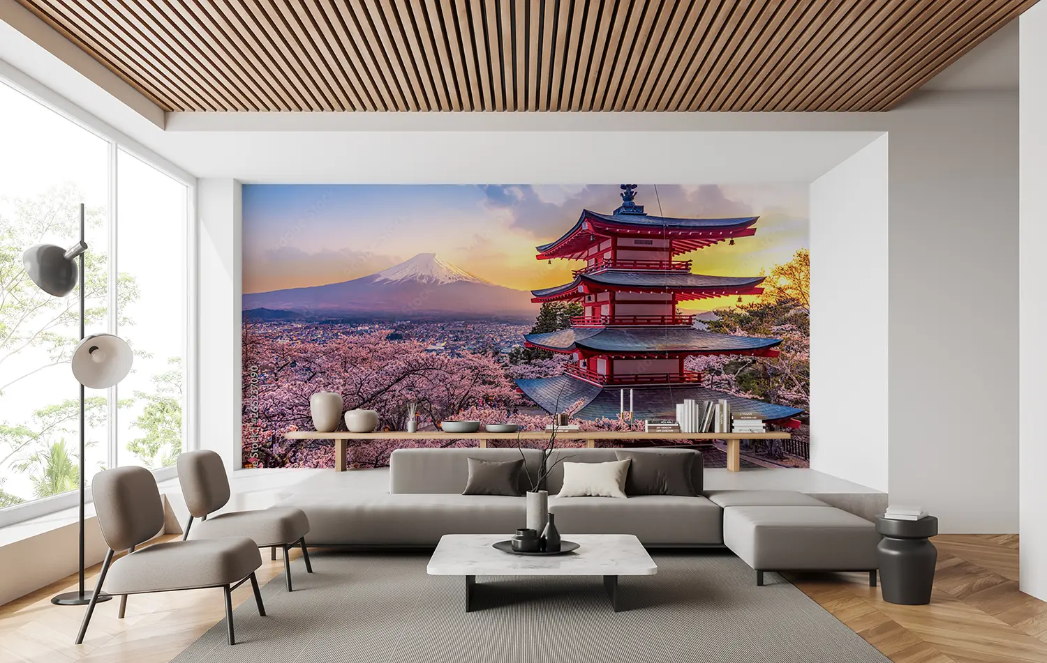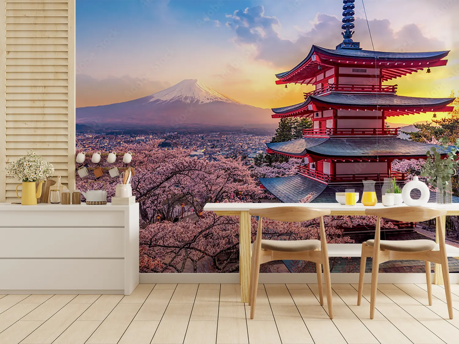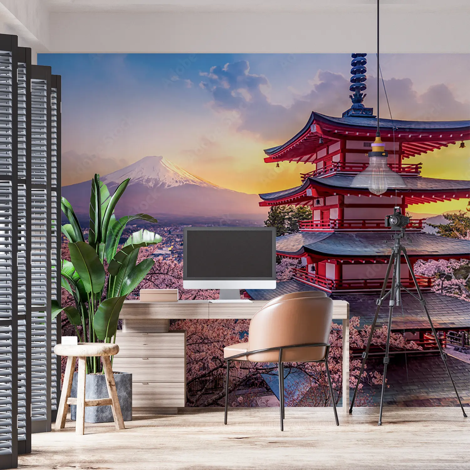 Transform your space with the tranquil beauty of a pagoda against a majestic mountain backdrop. This captivating wall art effortlessly enhances any room with its calming charm and cultural allure. Complementary colors to consider include soft blues, deep reds, and warm neutrals to create a harmonious and inviting atmosphere in your home.