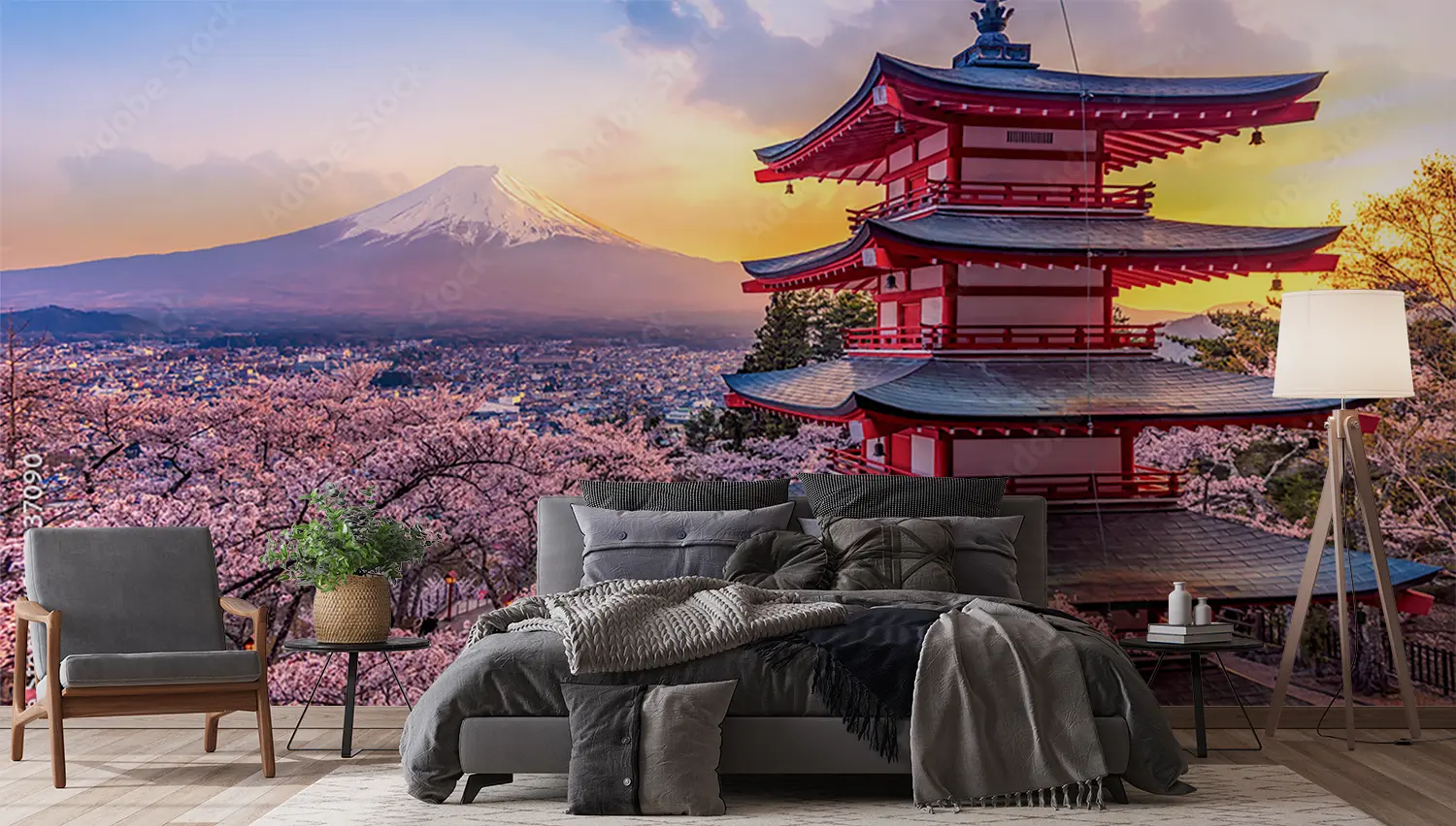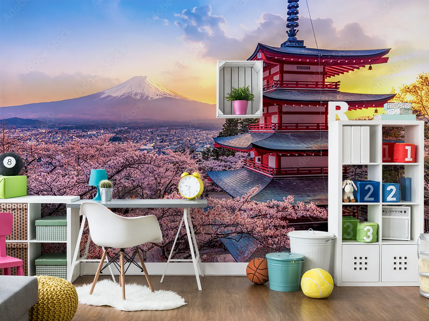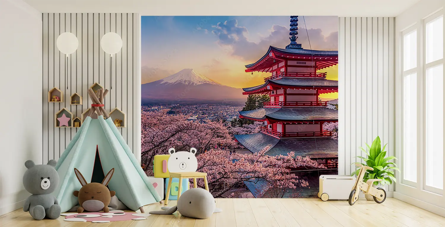 Transform your space with the tranquil beauty of a pagoda against a majestic mountain backdrop. This captivating wall art effortlessly enhances any room with its calming charm and cultural allure. Complementary colors to consider include soft blues, deep reds, and warm neutrals to create a harmonious and inviting atmosphere in your home.