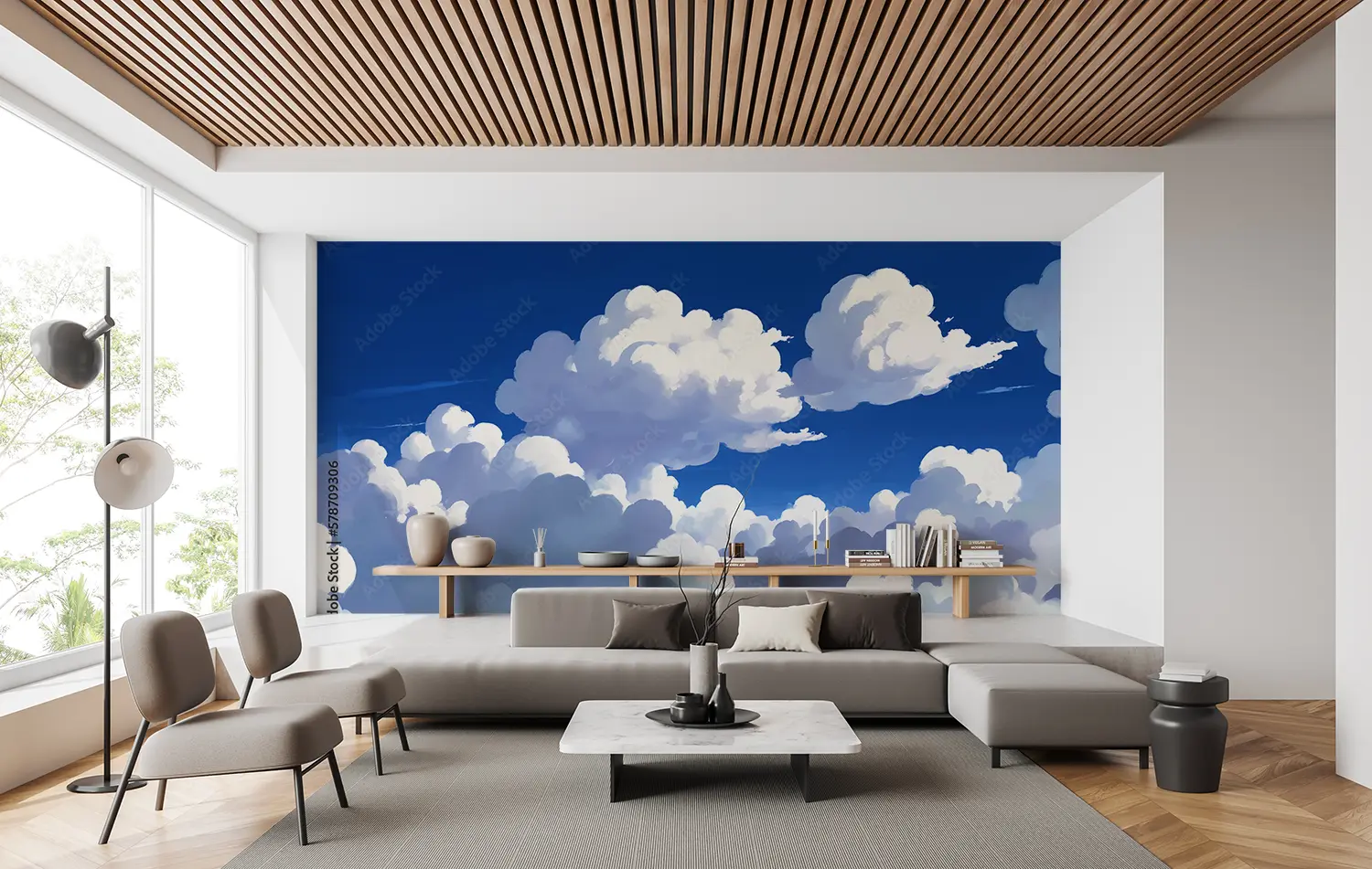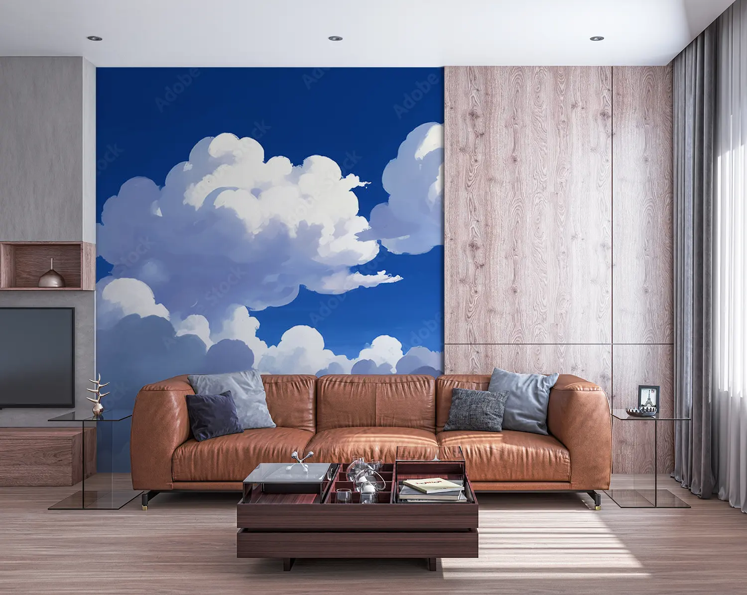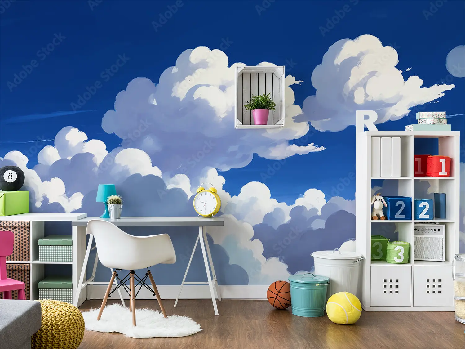 Transform your space with a captivating painting of a serene sky adorned with fluffy clouds and a distant plane. This art piece brings a sense of tranquility and adventure to any room, perfect for those who appreciate the beauty of nature. Complementary colors include shades of blue, white, and subtle hints of grey for a harmonious decor scheme.