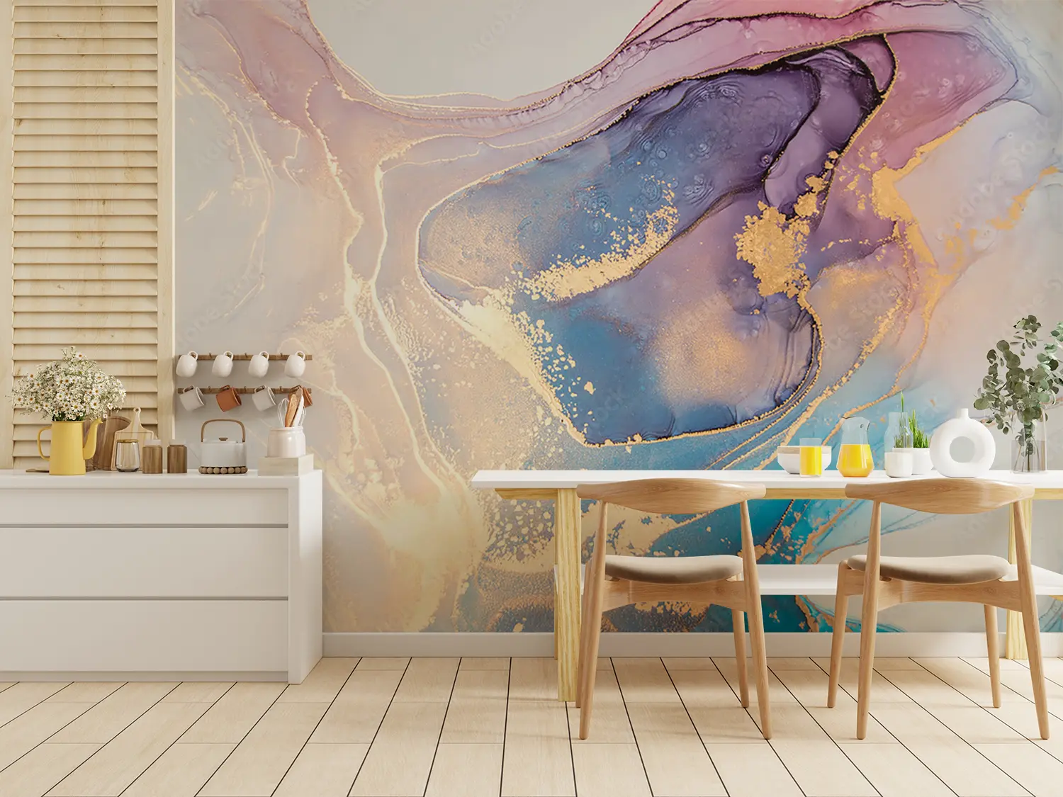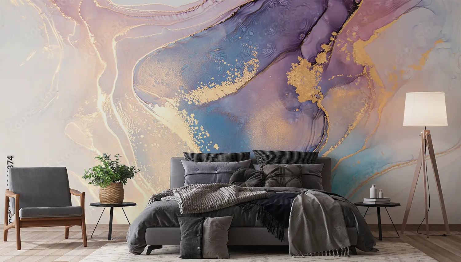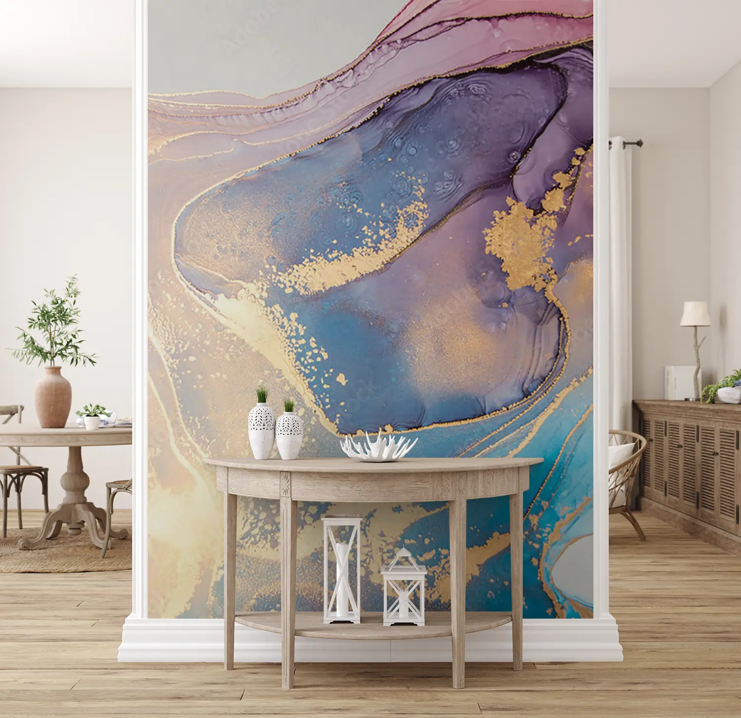 Elevate your home decor with this captivating wall art featuring a blend of blue and purple colors, creating a calming and aesthetic appeal. This stunning piece will add a touch of elegance to any room. Complementary colors to consider incorporating are white, grey, and soft pink for a harmonious and stylish look.