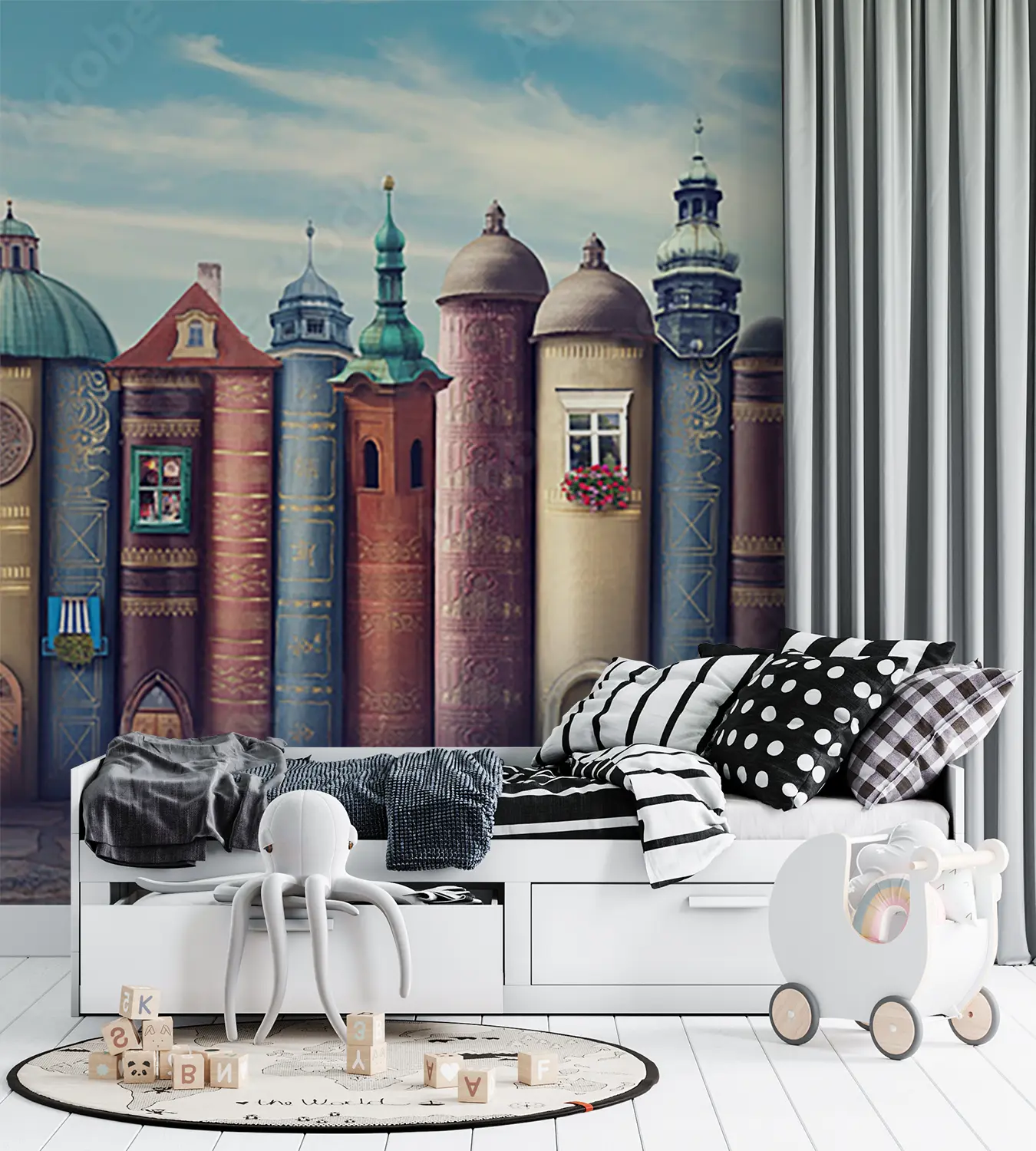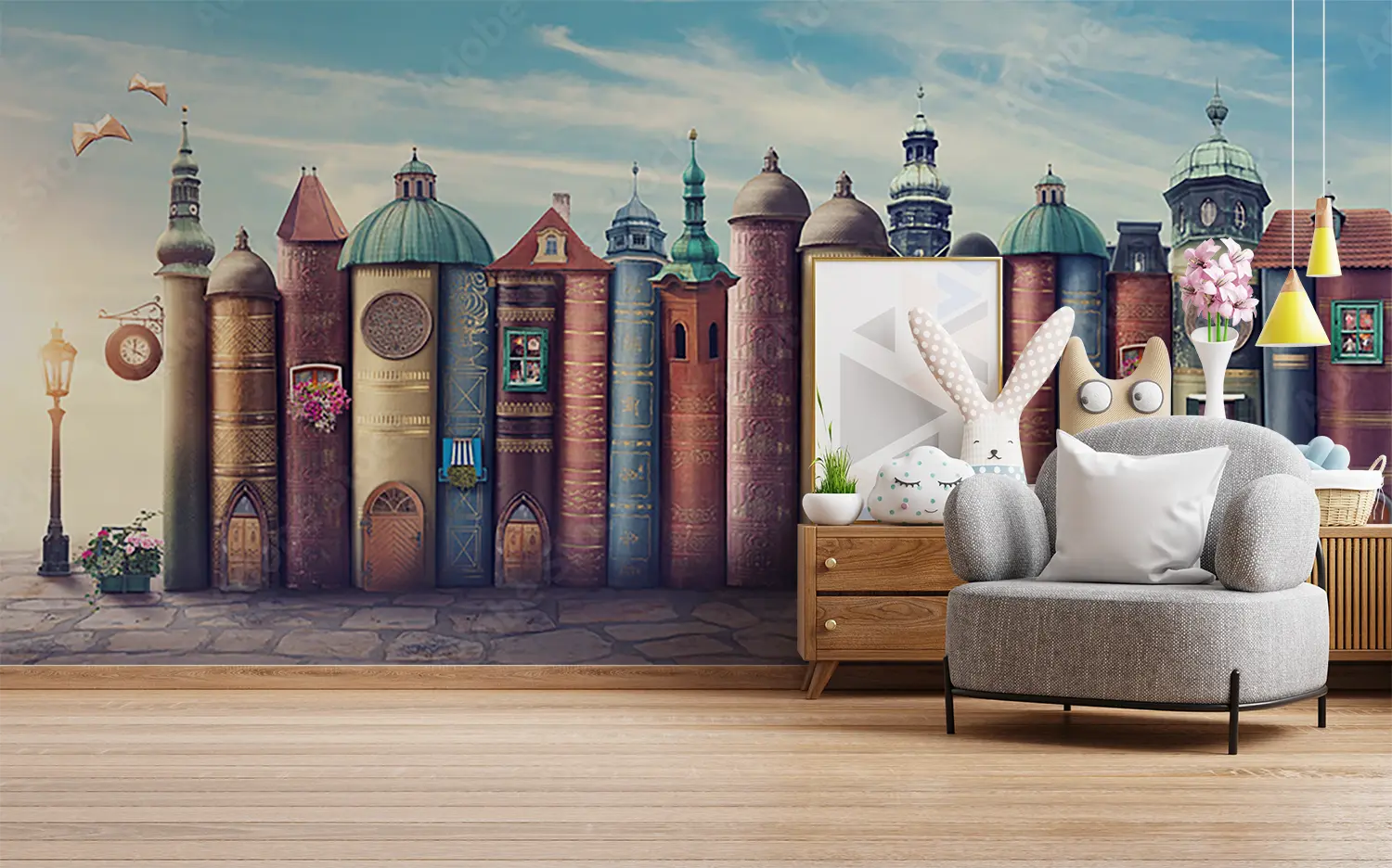 Transform your space with this captivating image of stacked books, creating a cozy and intellectual atmosphere. The mix of earthy greens, soft blues, and warm browns adds a touch of sophistication to any room. Elevate your home decor with this aesthetically pleasing wall art that speaks volumes about your love for literature and style.
