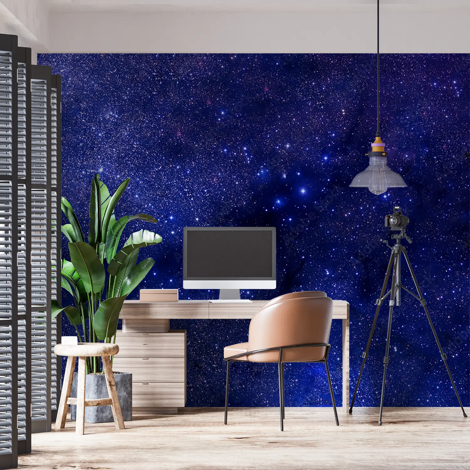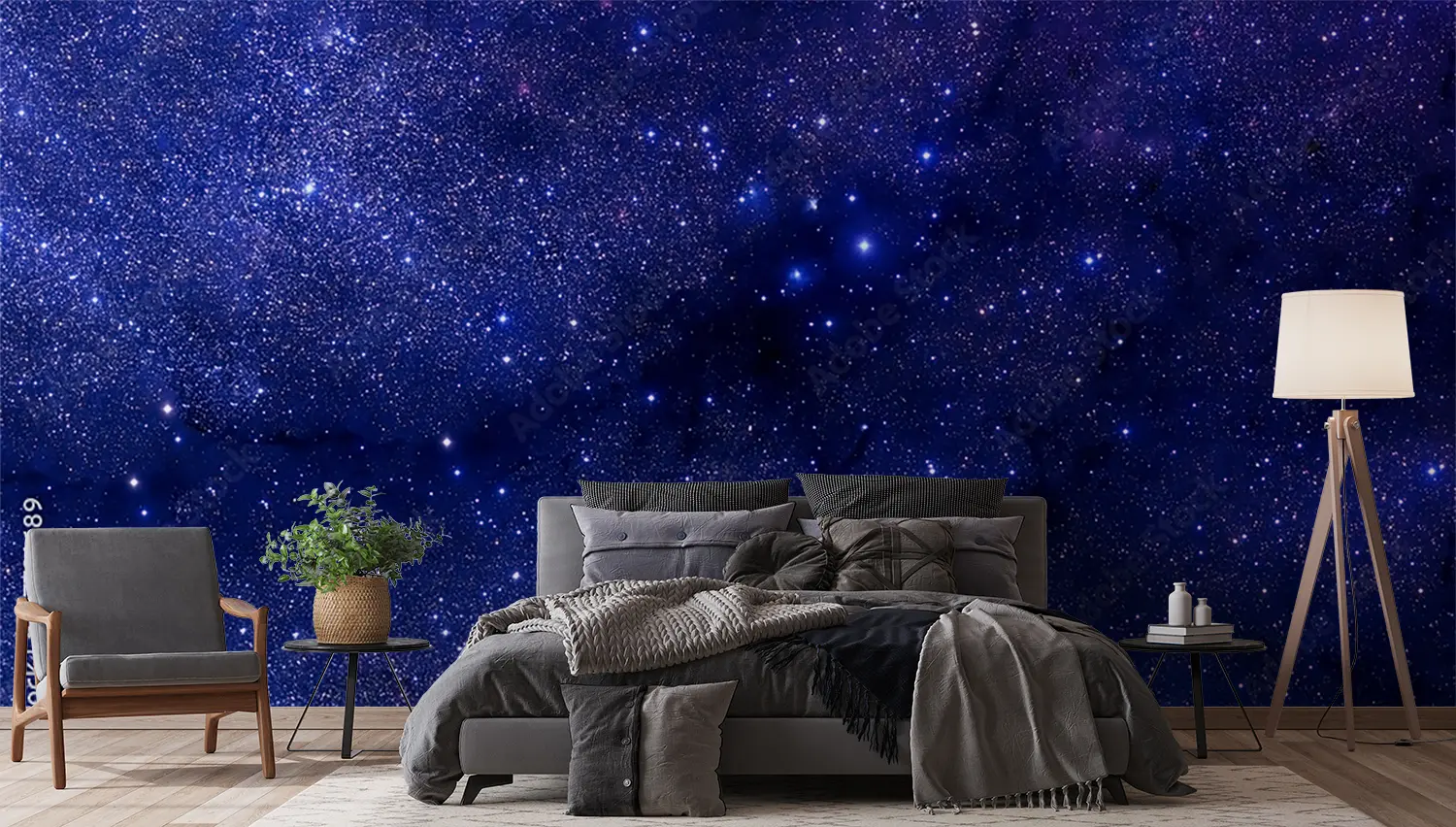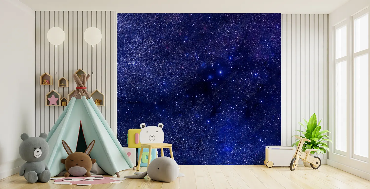 Transform your space with a captivating wall image of a blue and purple sky adorned with twinkling stars. This stunning mural will add a touch of celestial beauty to any room, creating a serene and dreamy atmosphere. Complementary colors to enhance this piece include deep blues, rich purples, and shimmering silver accents. Elevate your home decor with this enchanting artwork.