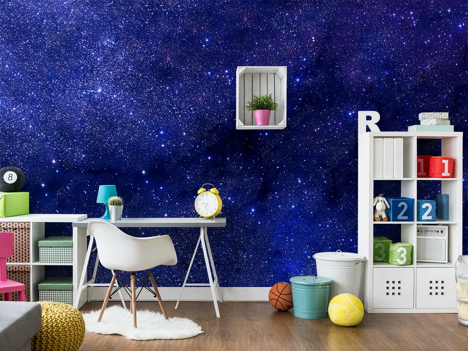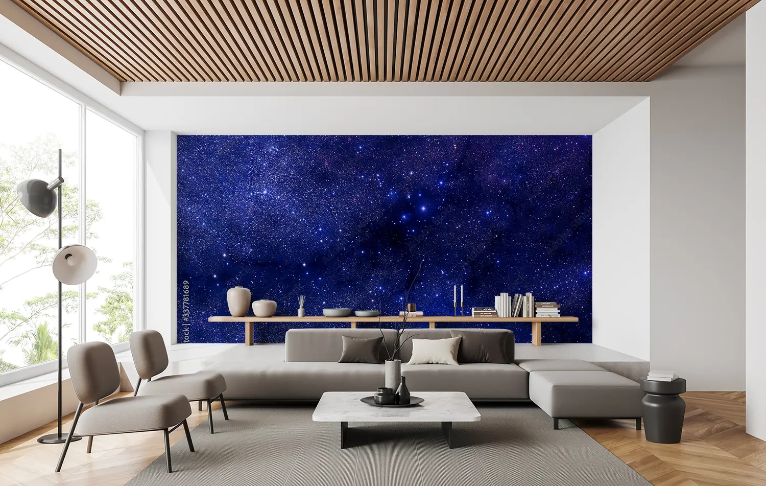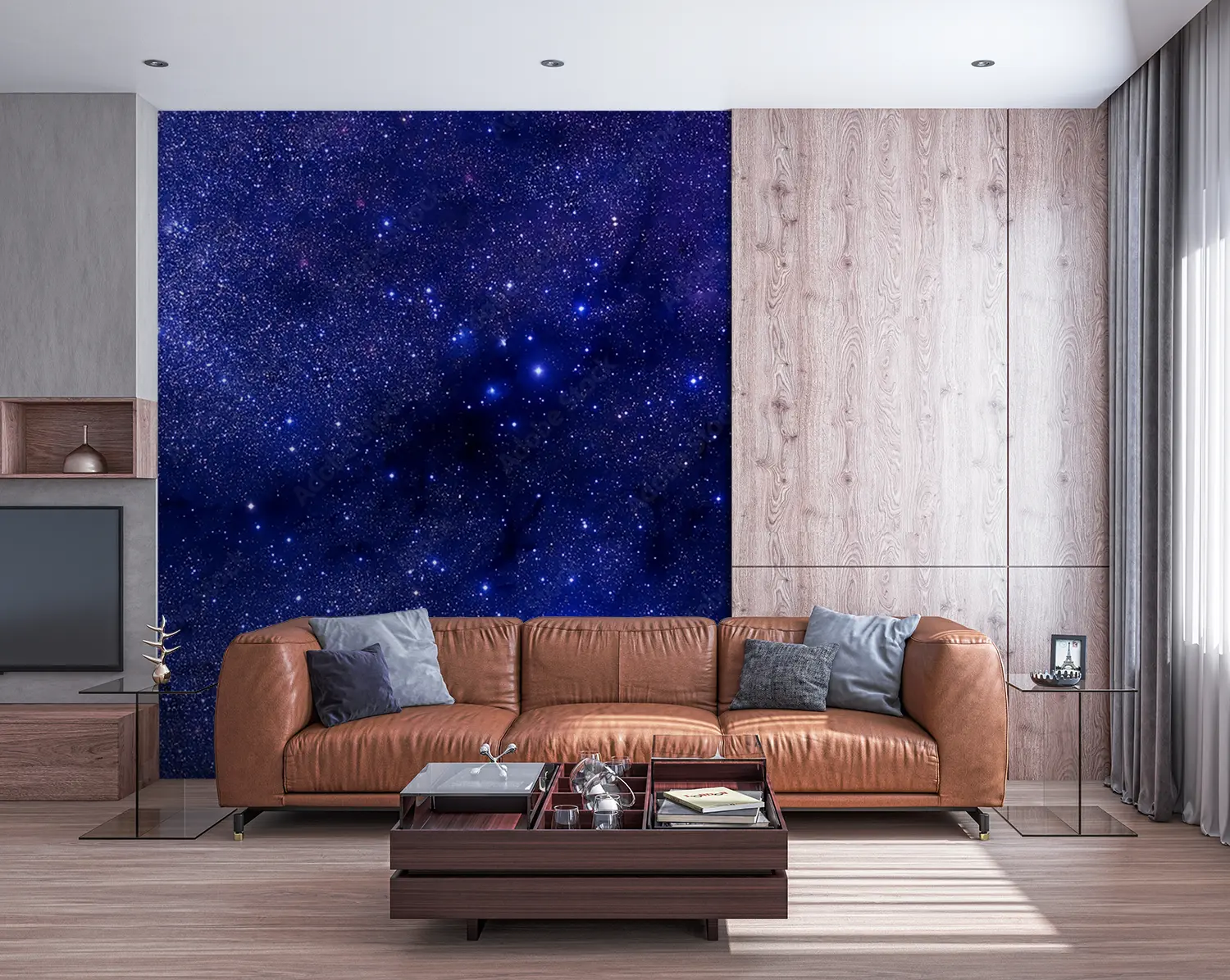 Transform your space with a captivating wall image of a blue and purple sky adorned with twinkling stars. This stunning mural will add a touch of celestial beauty to any room, creating a serene and dreamy atmosphere. Complementary colors to enhance this piece include deep blues, rich purples, and shimmering silver accents. Elevate your home decor with this enchanting artwork.