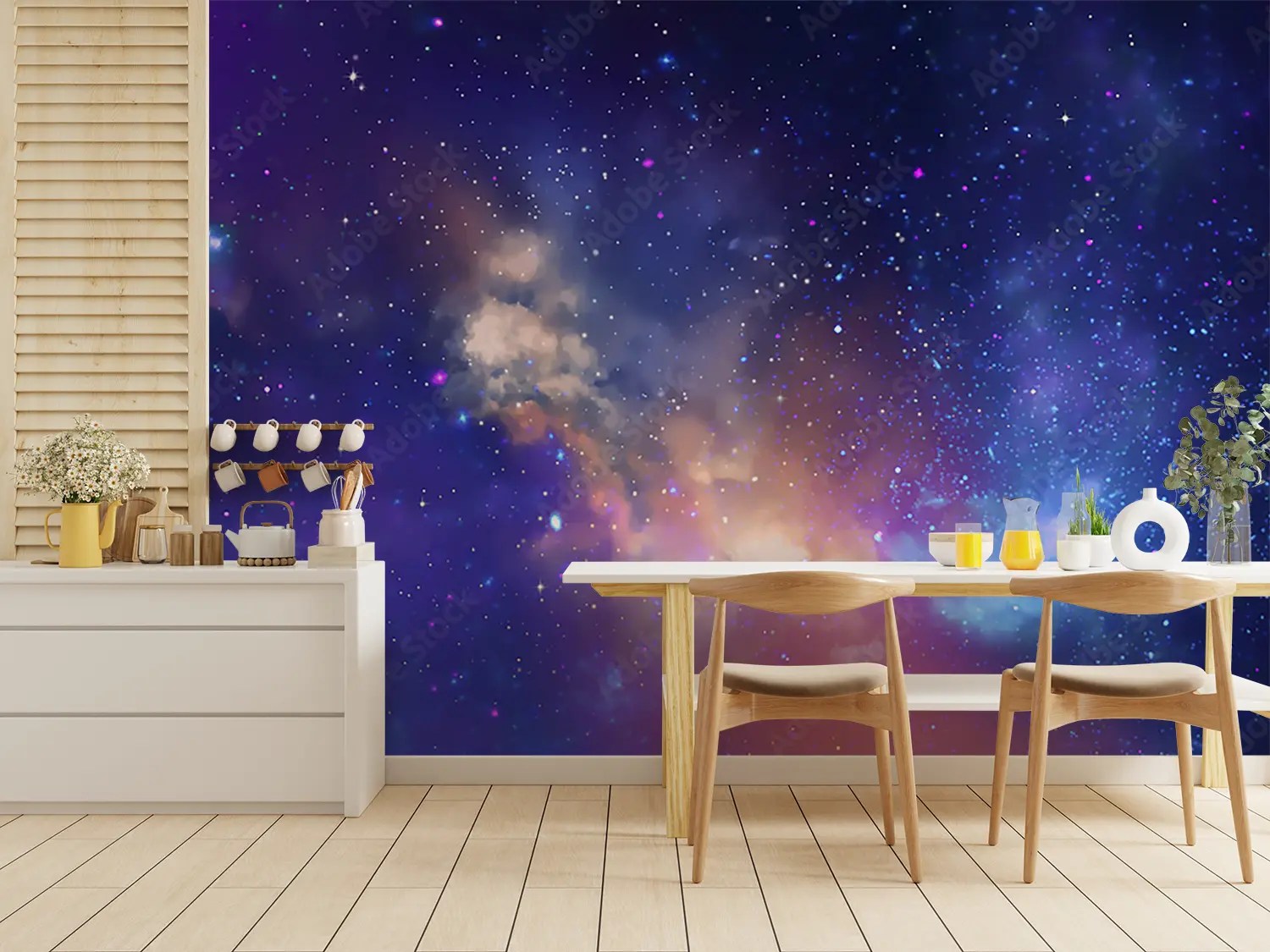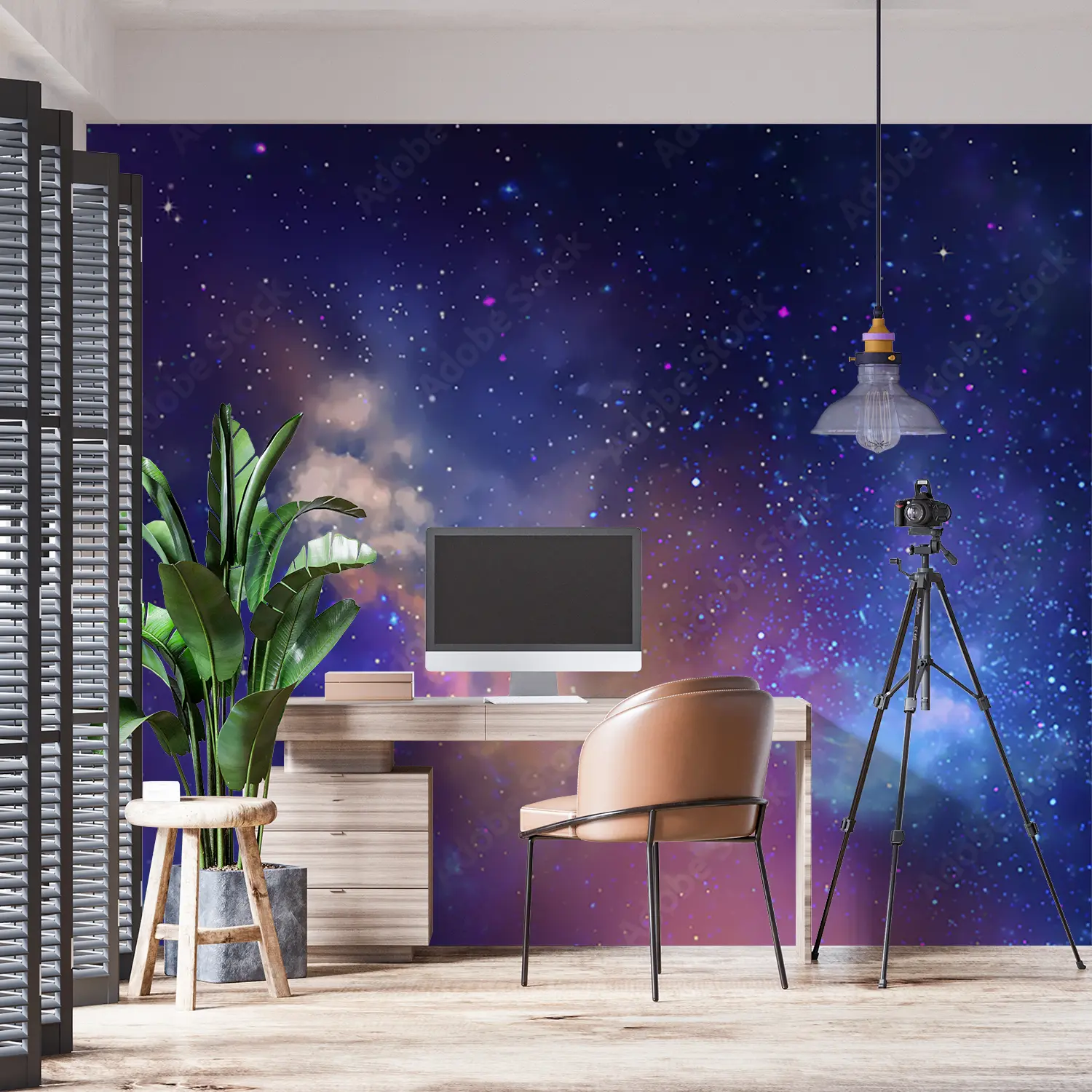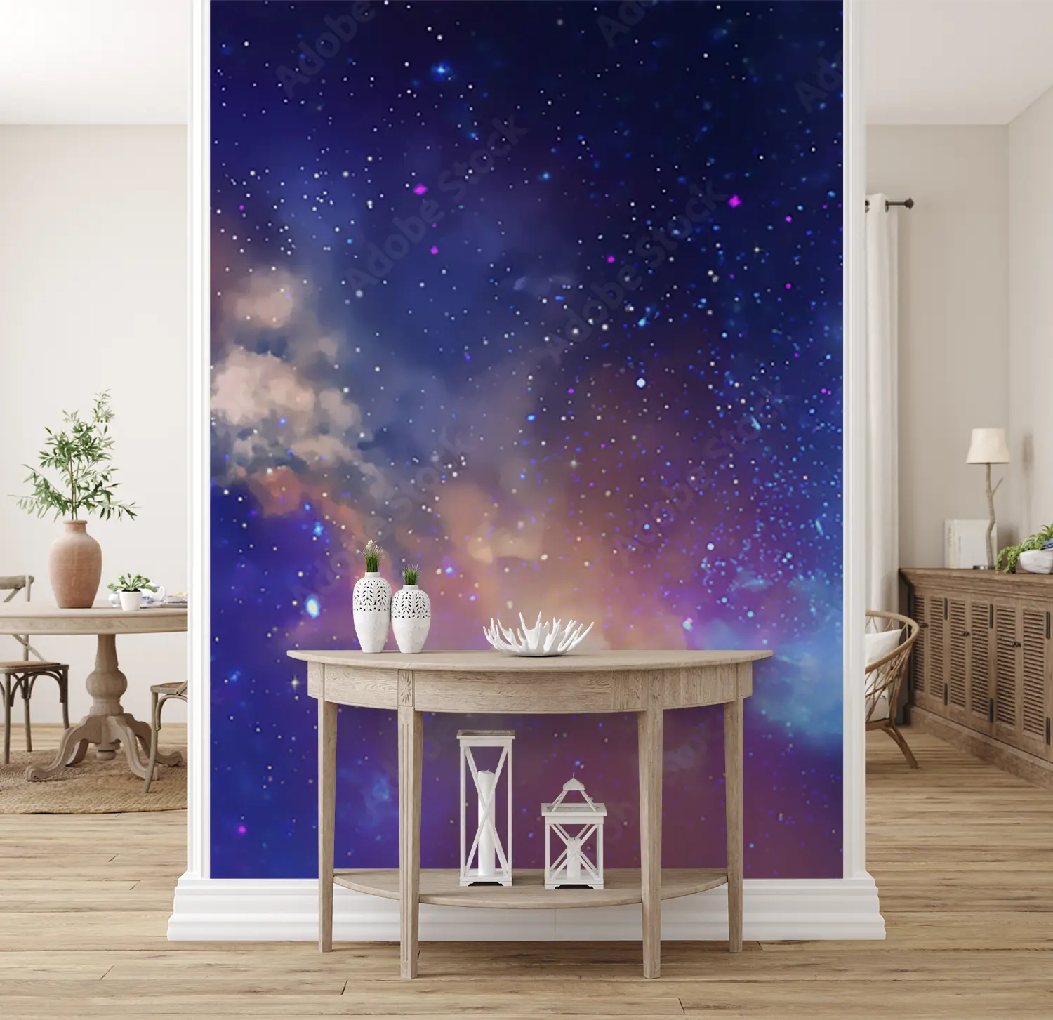 Transform your space with a captivating wall art featuring a dreamy night sky filled with twinkling stars and cosmic beauty. This stunning piece adds a touch of magic and wonder to any room, enhancing your home decor with its celestial charm. Pair it with deep purples, blues, and hints of silver for a truly enchanting atmosphere.
