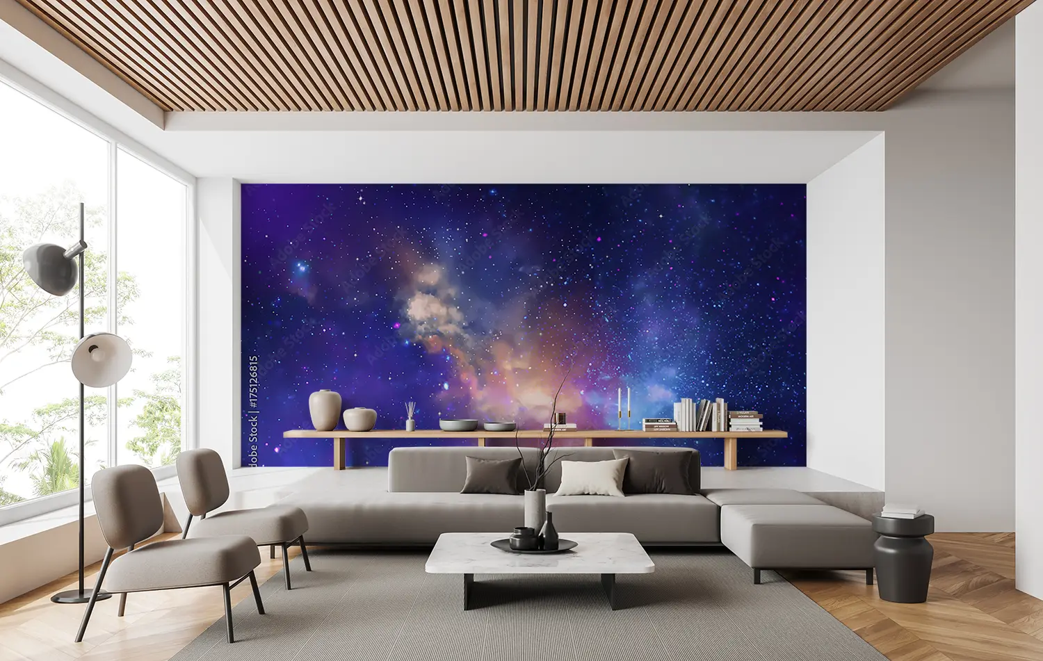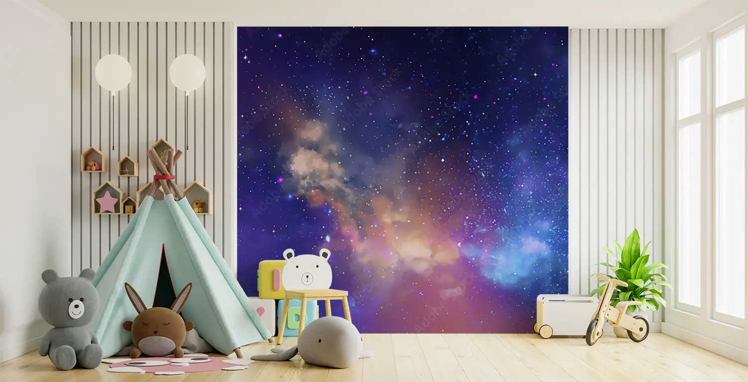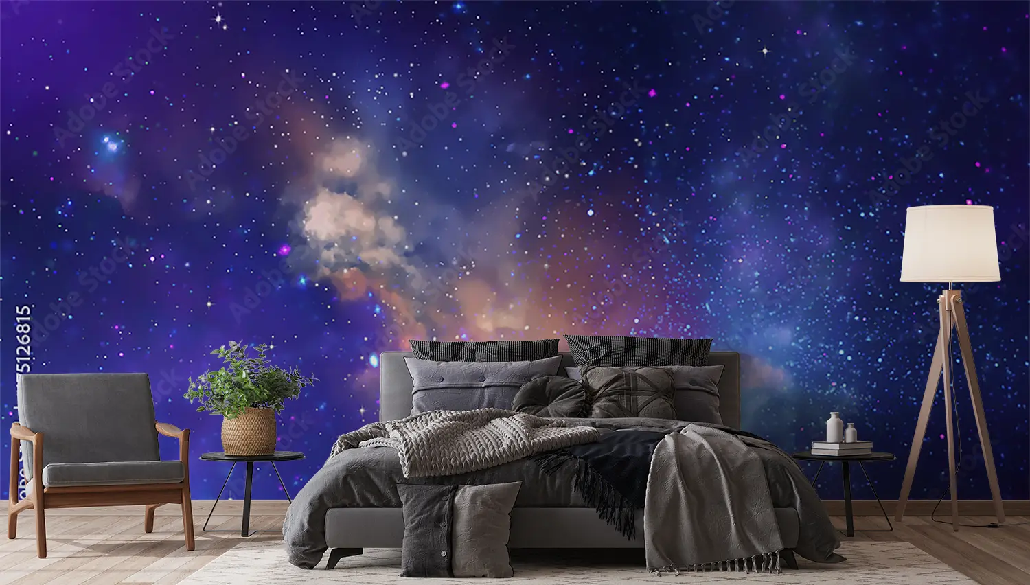 Transform your space with a captivating wall art featuring a dreamy night sky filled with twinkling stars and cosmic beauty. This stunning piece adds a touch of magic and wonder to any room, enhancing your home decor with its celestial charm. Pair it with deep purples, blues, and hints of silver for a truly enchanting atmosphere.